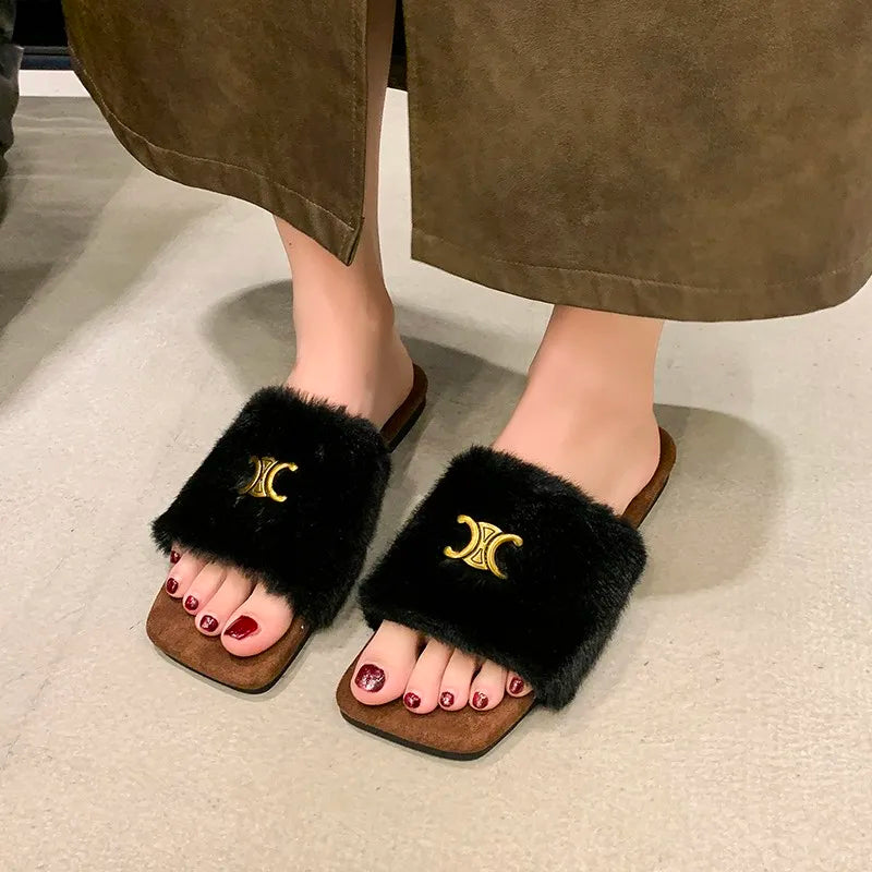 2024 Hot Sale Women's Shoes Open Toe Women's Slippers Warm Casual Slippers Women Square Toe Flat with Shoes for Women