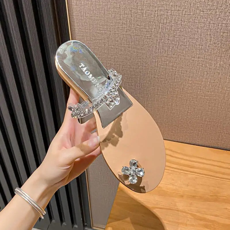2024 Summer Crystal Women Slippers Fashion Clip Toe Slides Shoes Elegant Outdoor Beach Wedges Heel Sandal Flip Flop 34-43