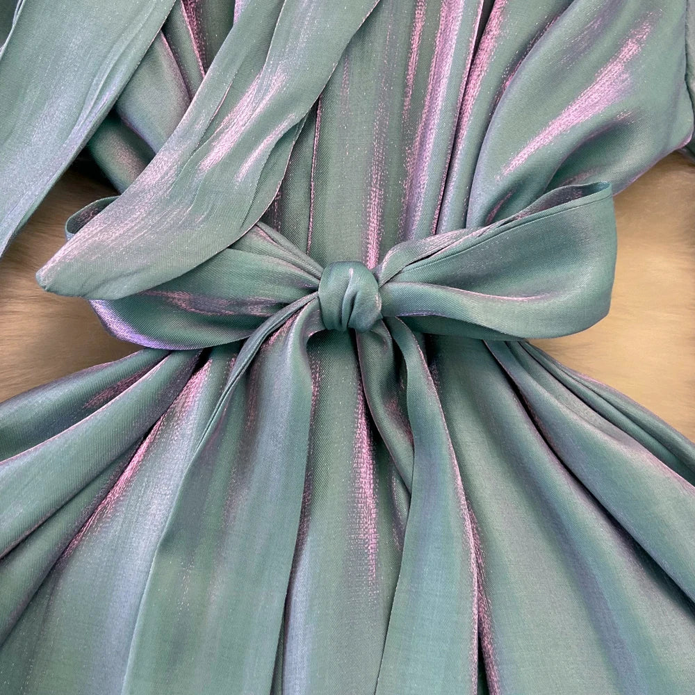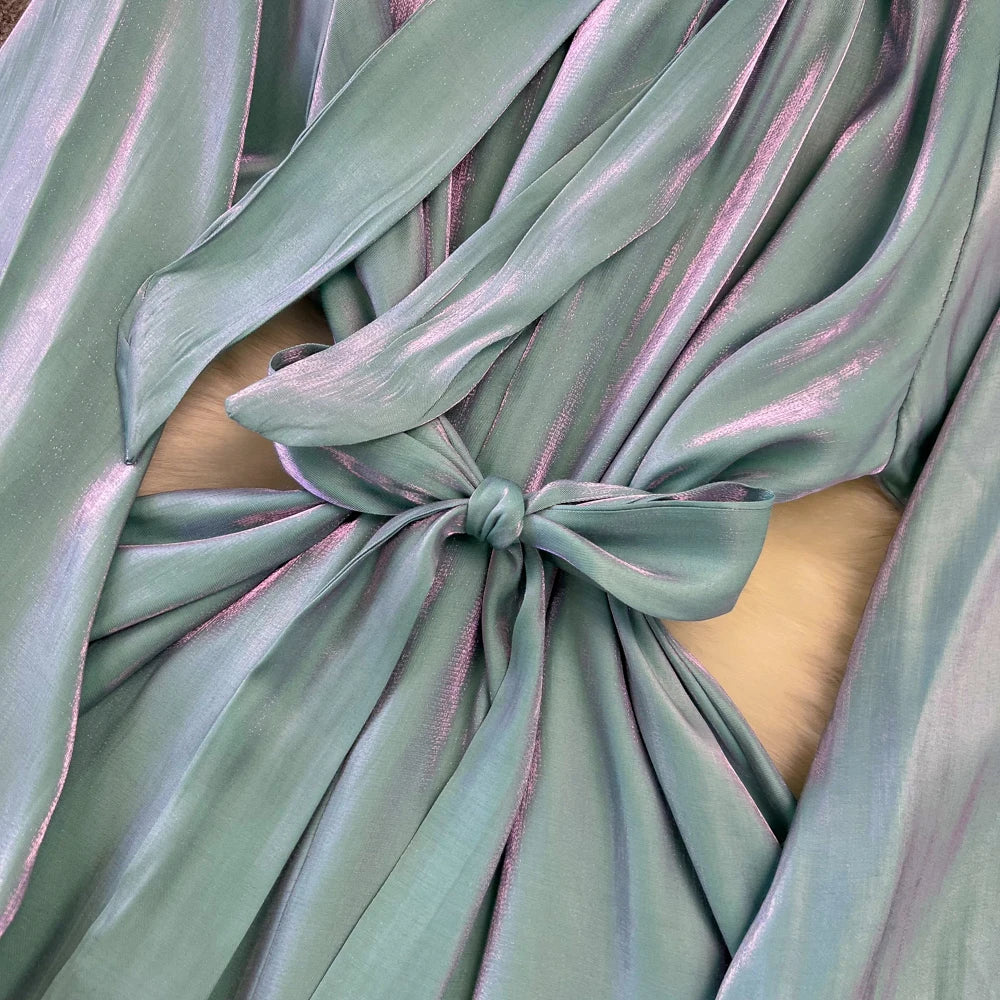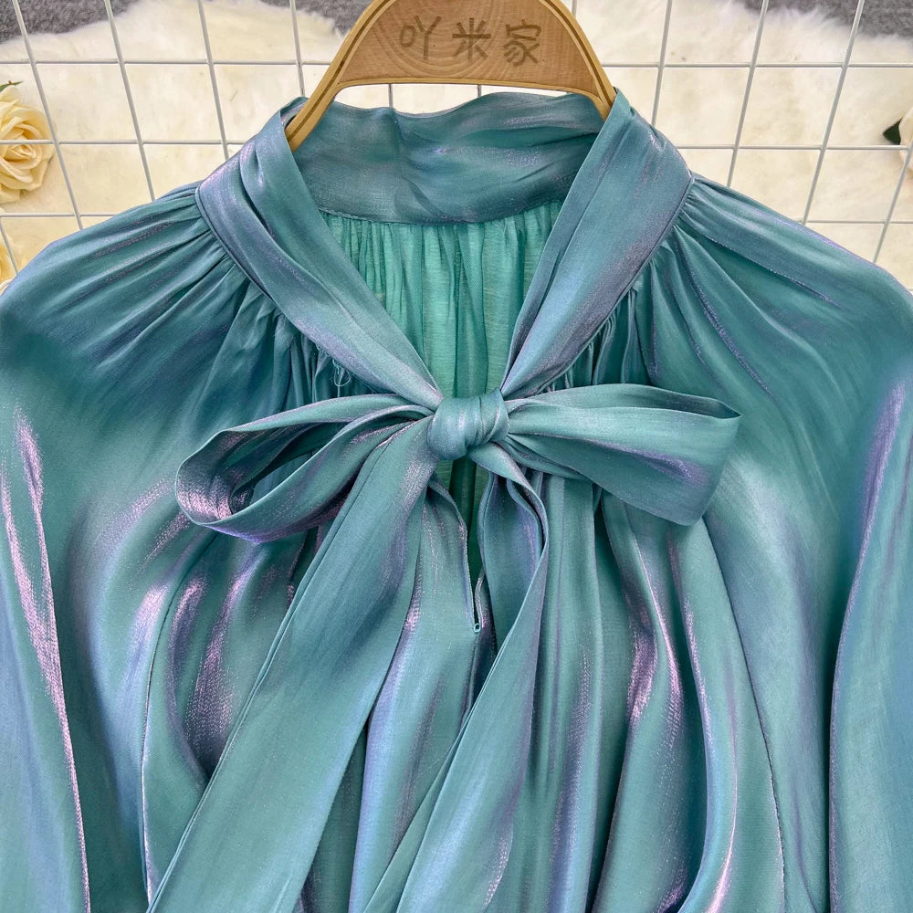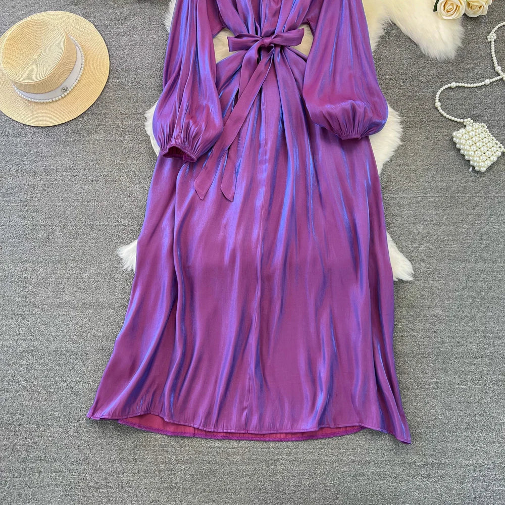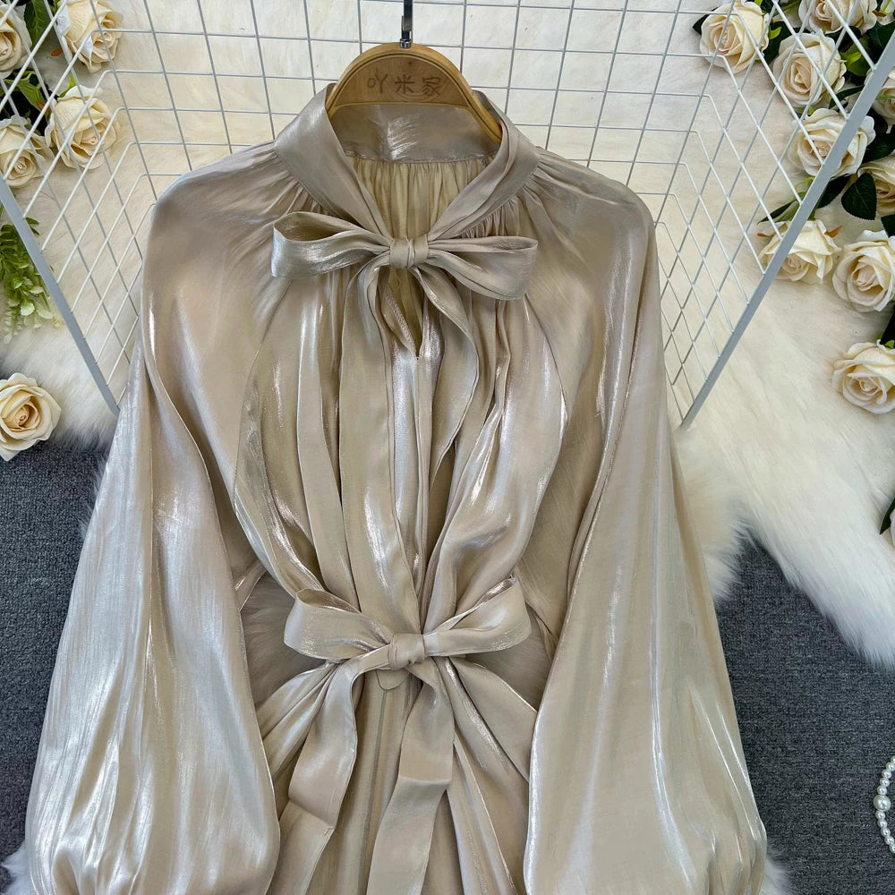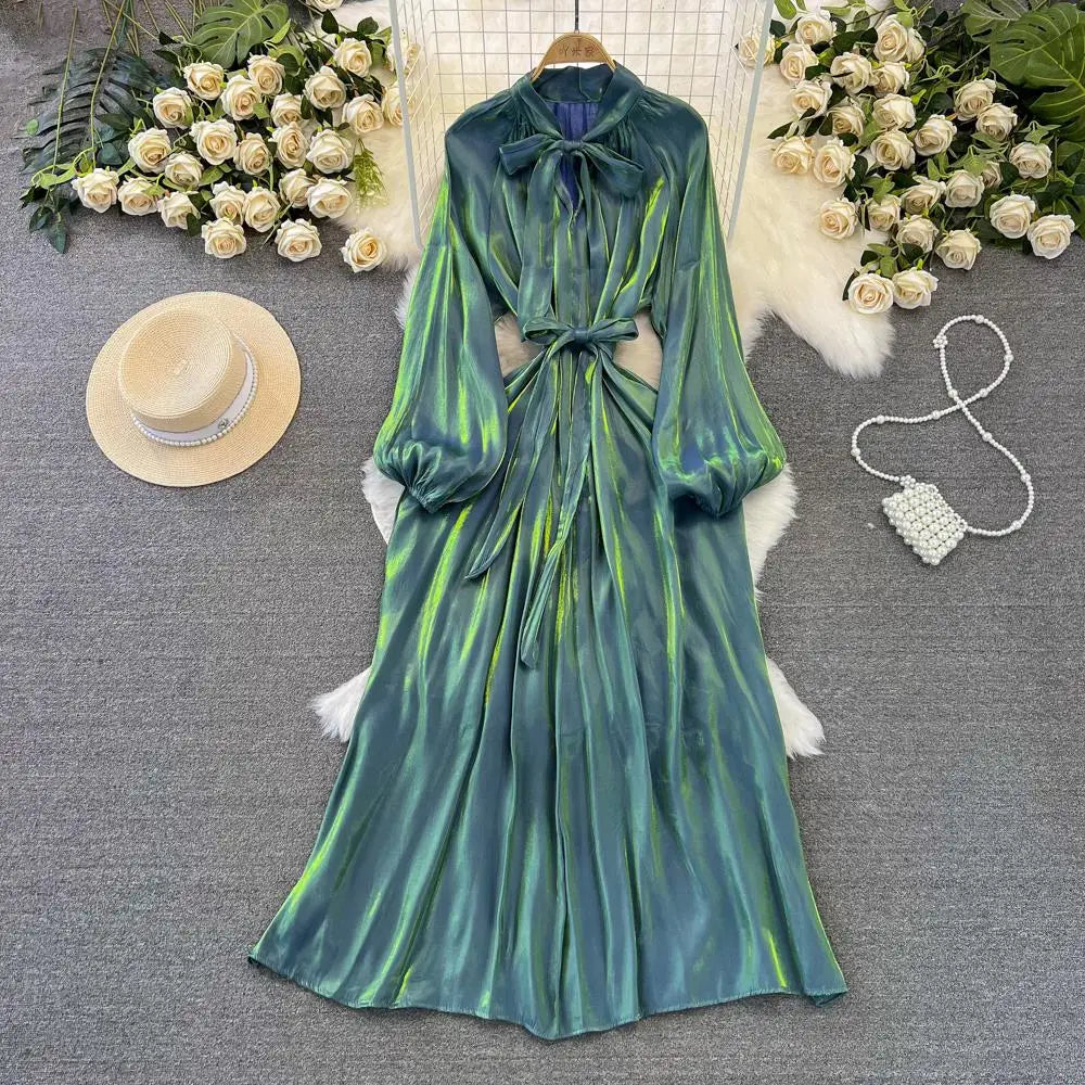 Autumn Elegant Women Fashion Party Long Dress Bow Lace Up Long Sleeve Evening Dresses A-Line Casual Vestidos One Piece Prom Robe