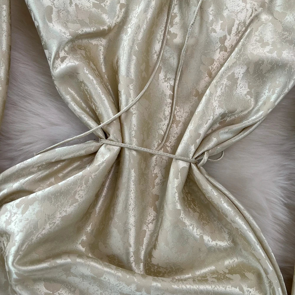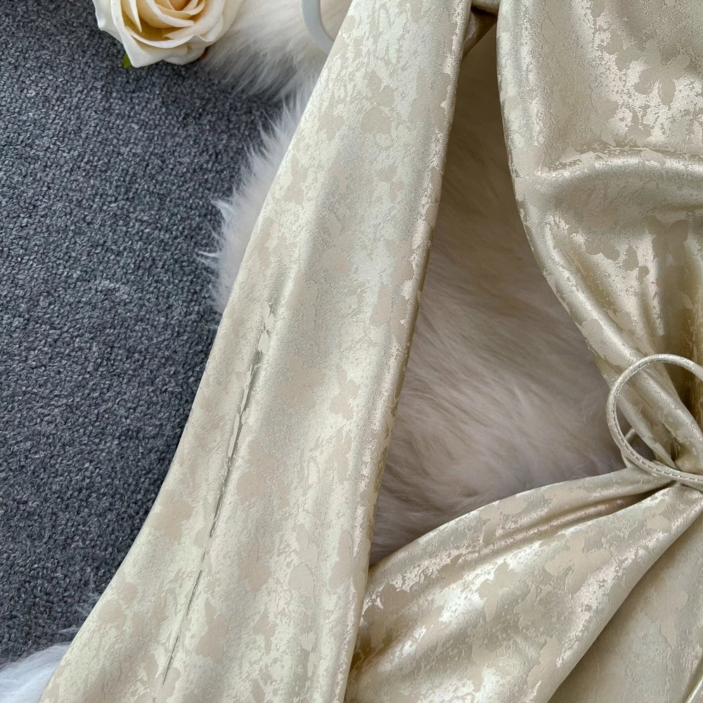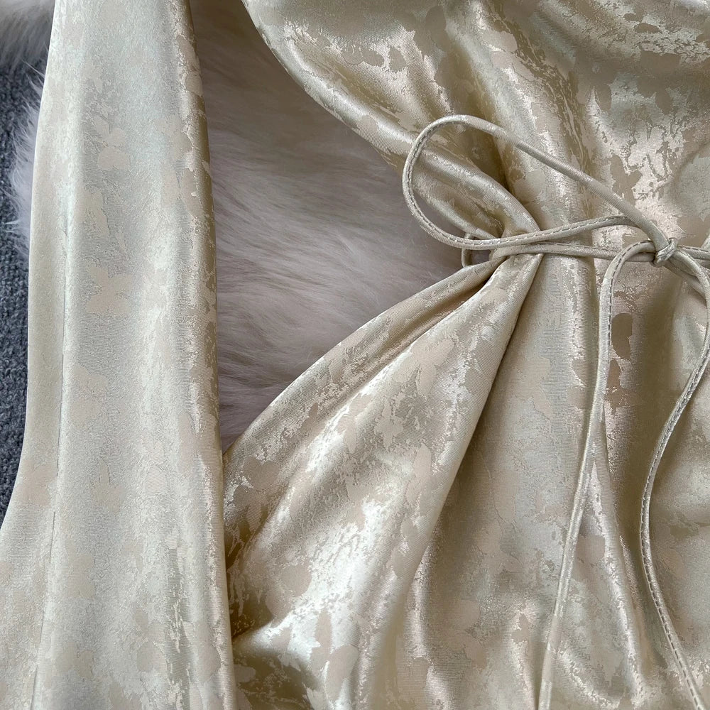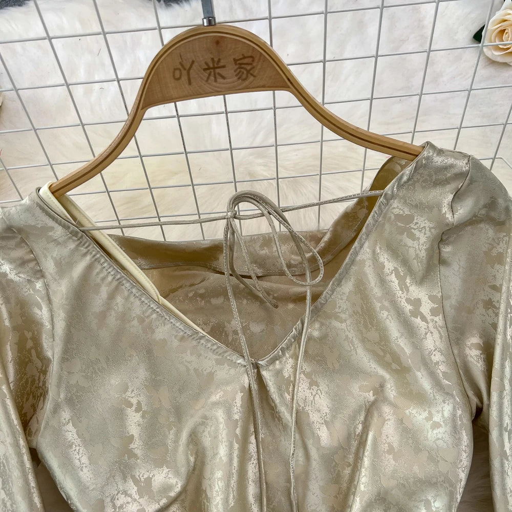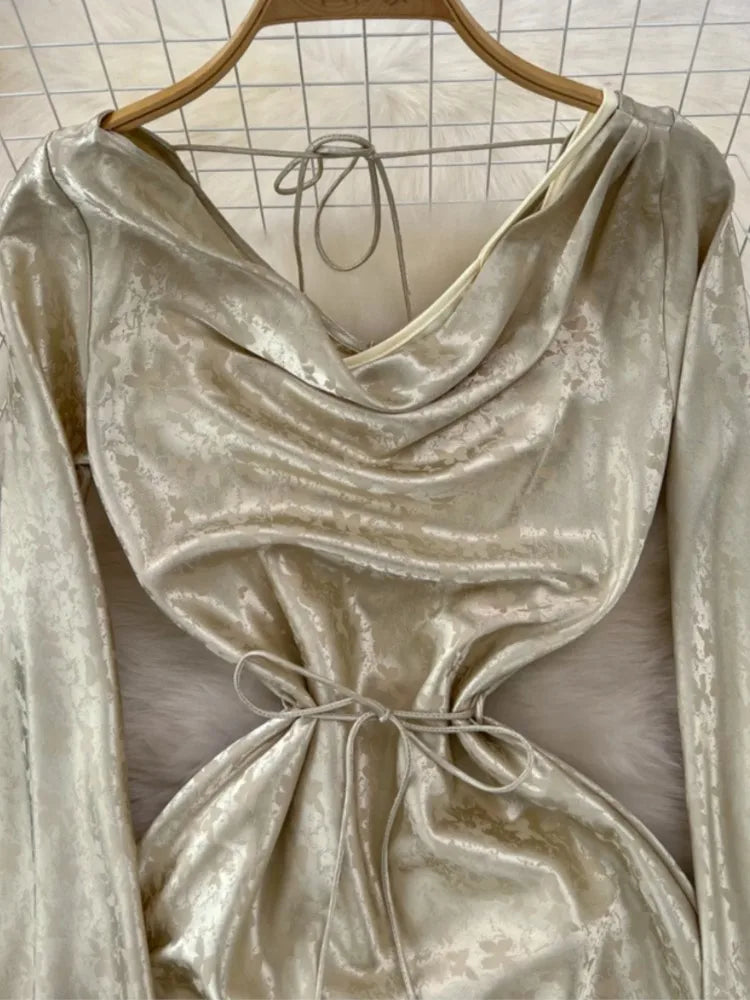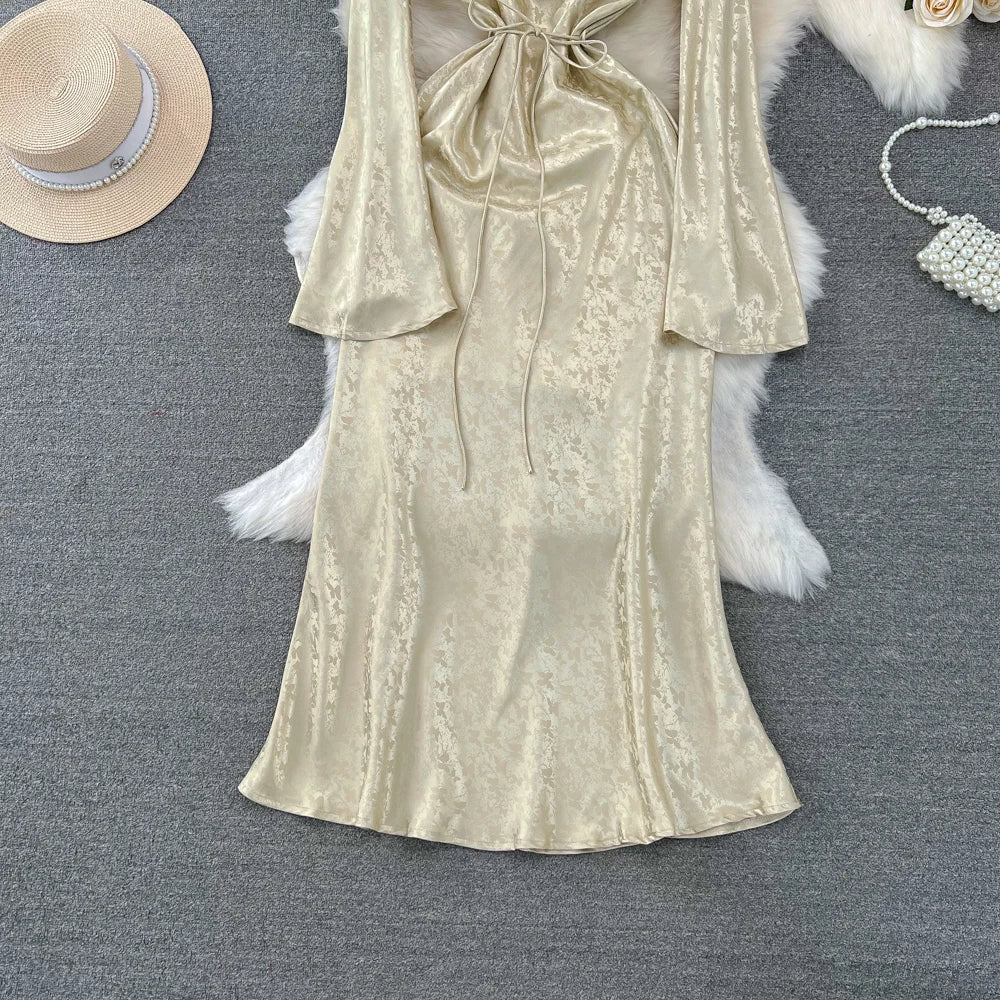 Autumn Evening Dresses for Women Elegant Bodycon Party Prom Robe Vintage Flare Sleeve Swinging Collar Midi Vestidos Mujer New