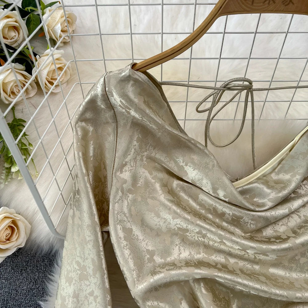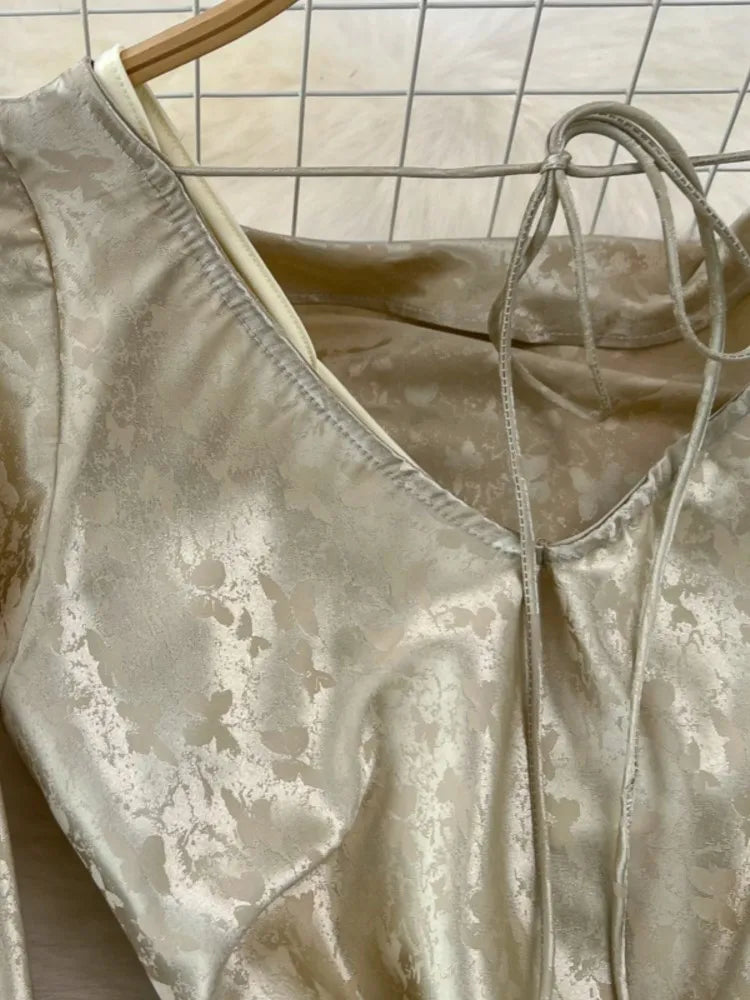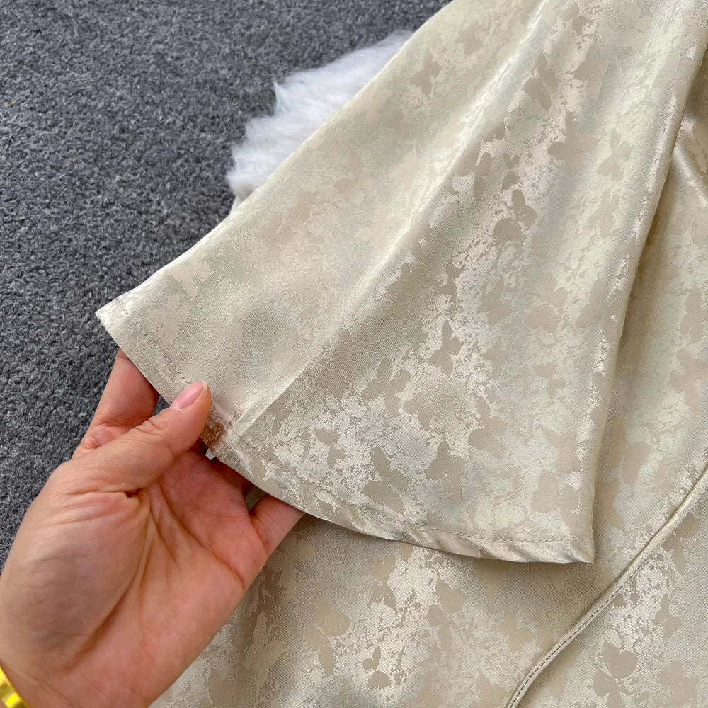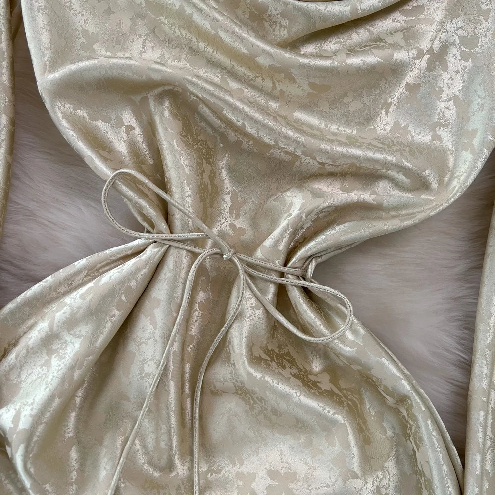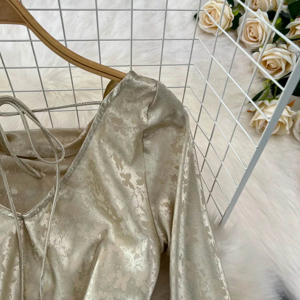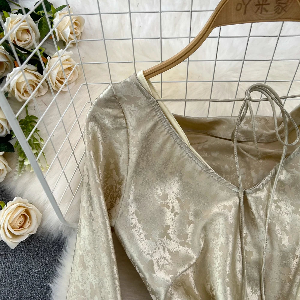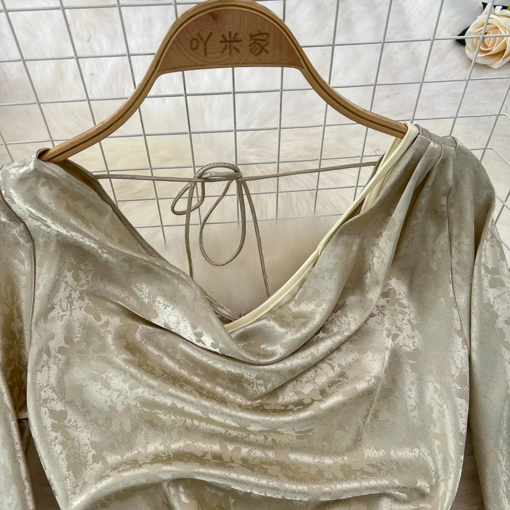 Autumn Evening Dresses for Women Elegant Bodycon Party Prom Robe Vintage Flare Sleeve Swinging Collar Midi Vestidos Mujer New