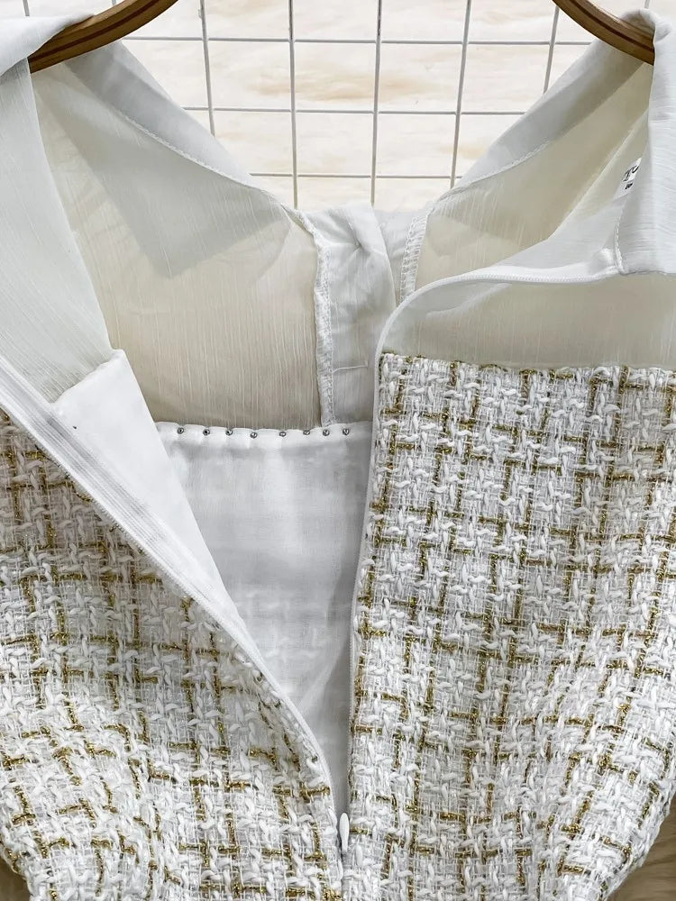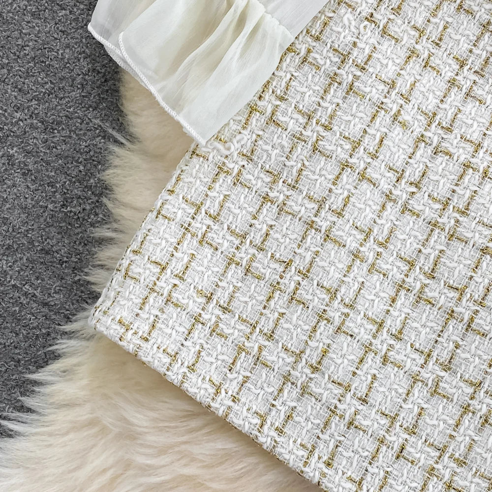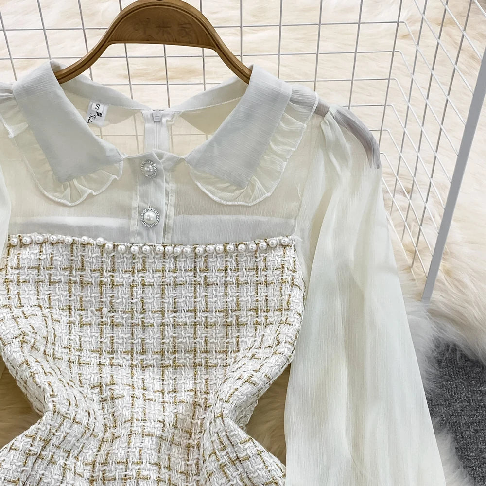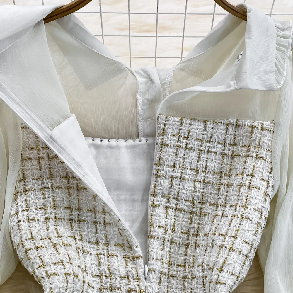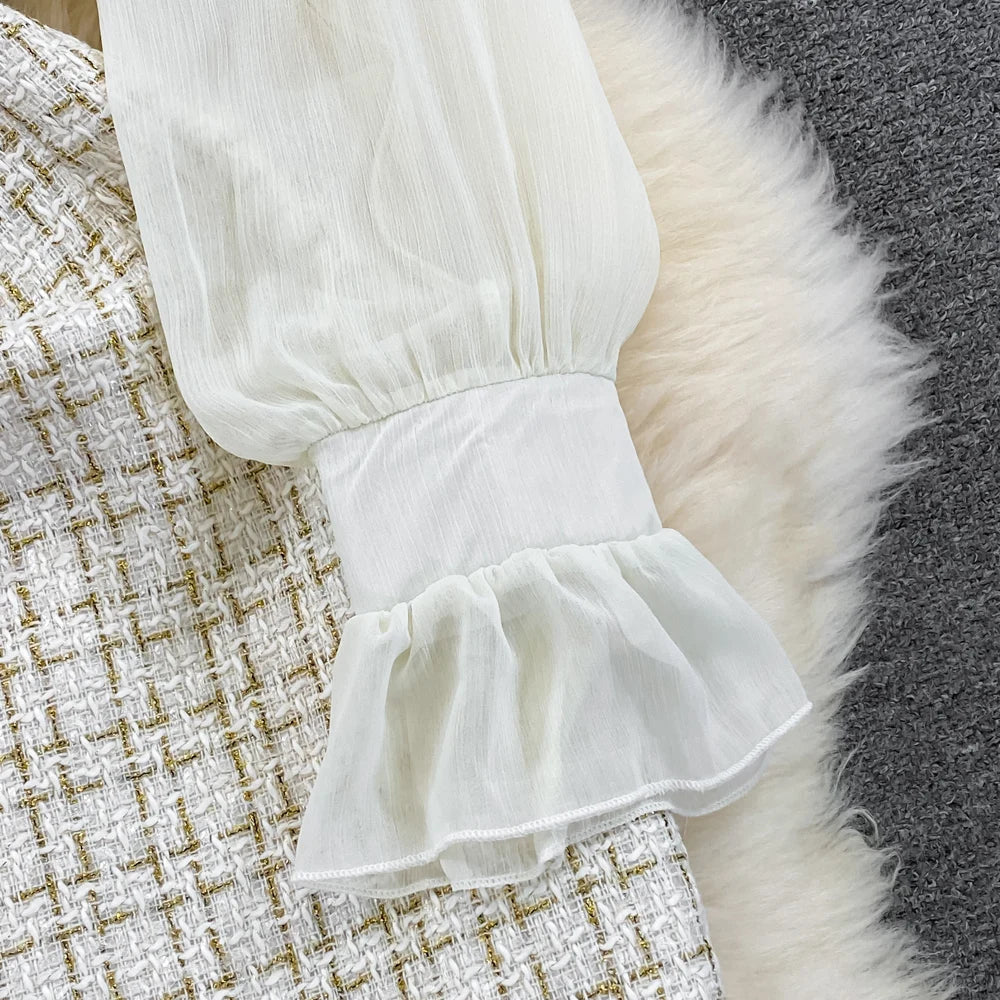 Autumn Fashion New Women Tweed Plaid Mini Dress Elegant Chiffon Patchwork Long Sleeve Dresses Female Casual One Piece Clothes