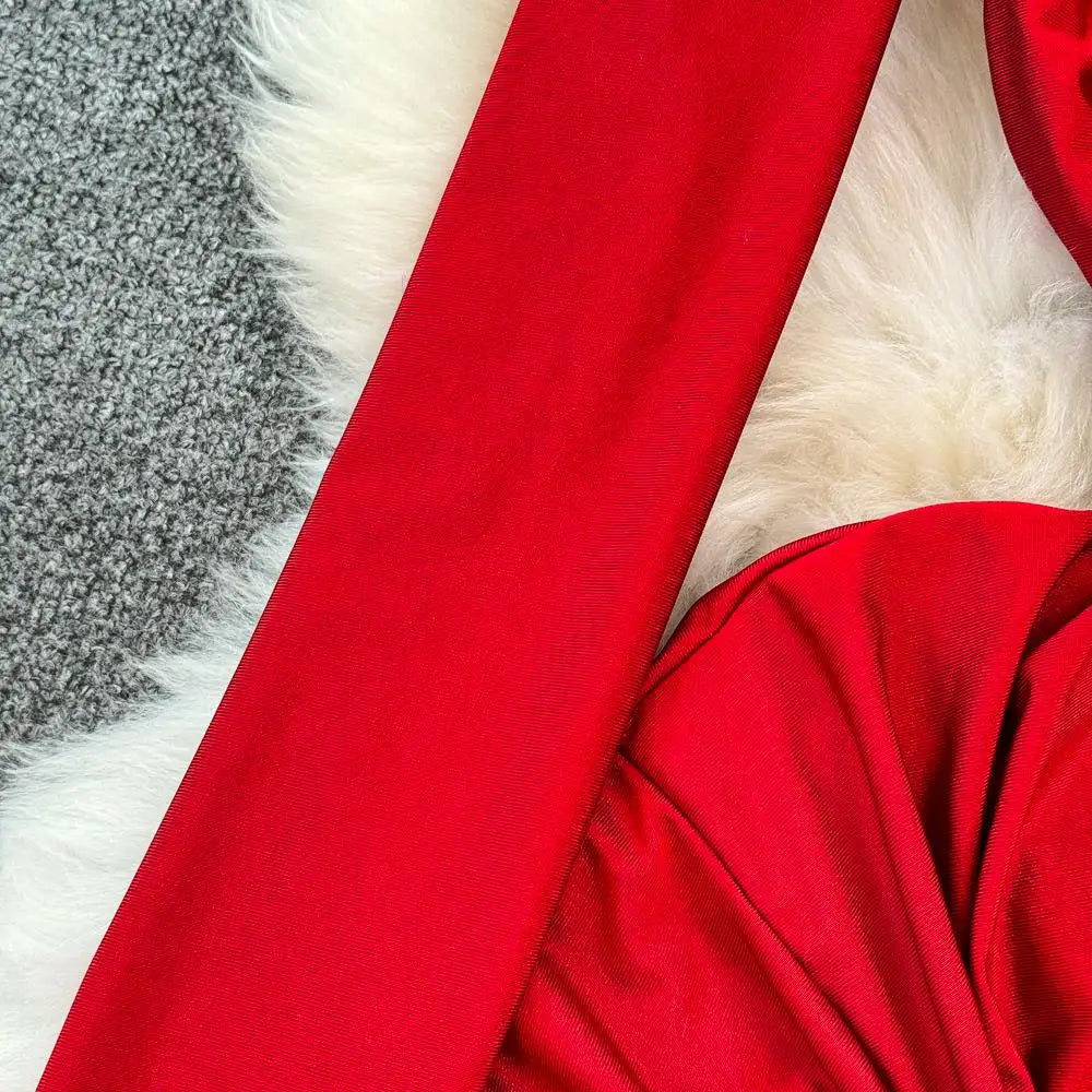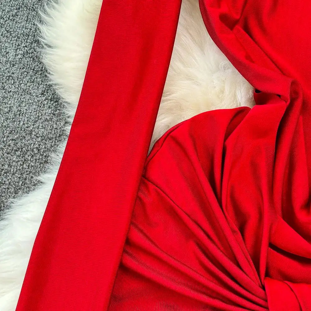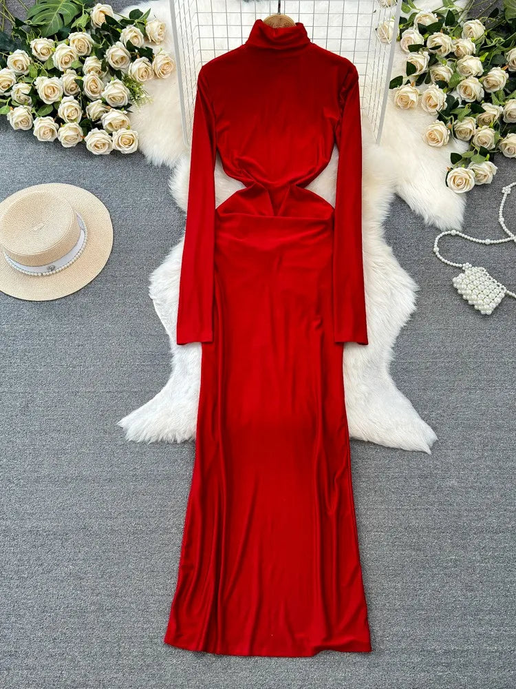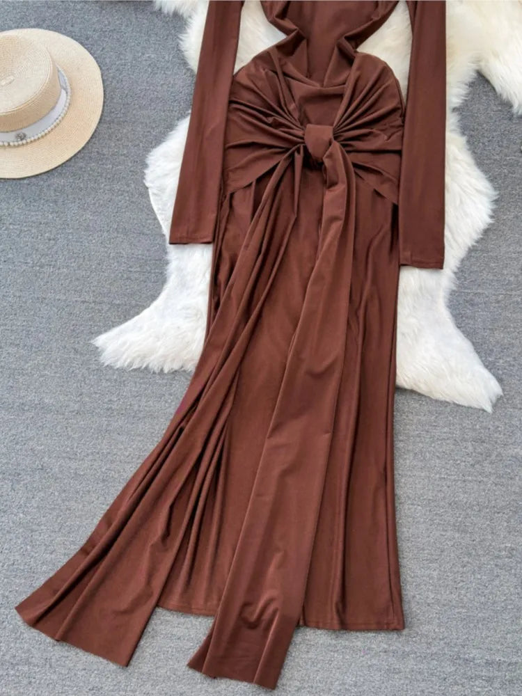Autumn Solid Long Sleeve Party Dress for Women Sexy Bodycon Stand Collar Evening Dresses Bow Bandage Pleated Slim Waist Vestidos