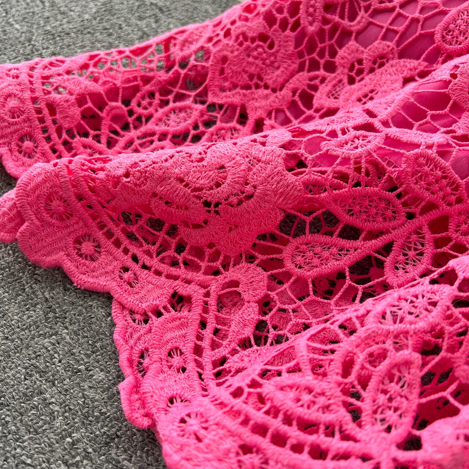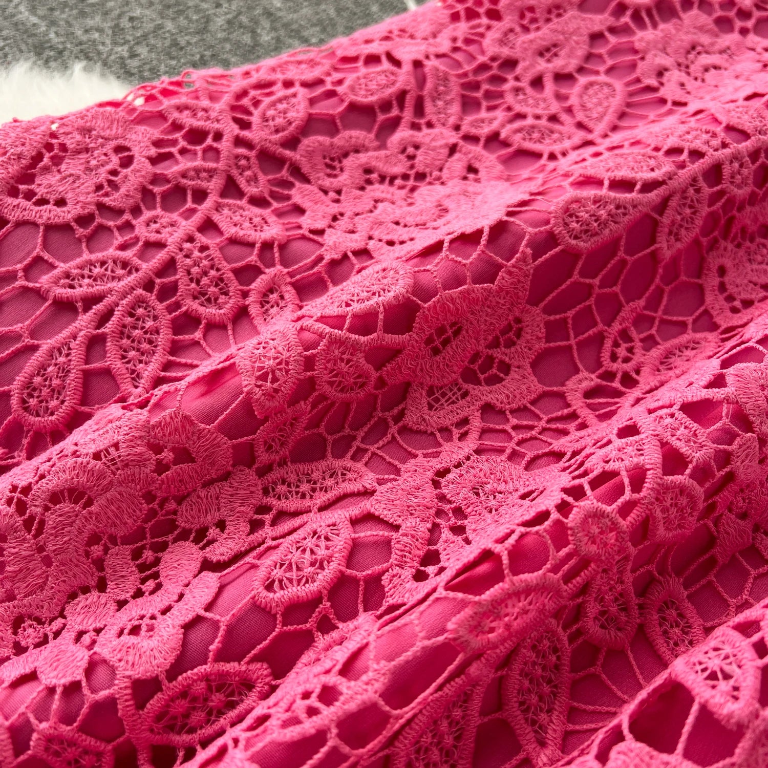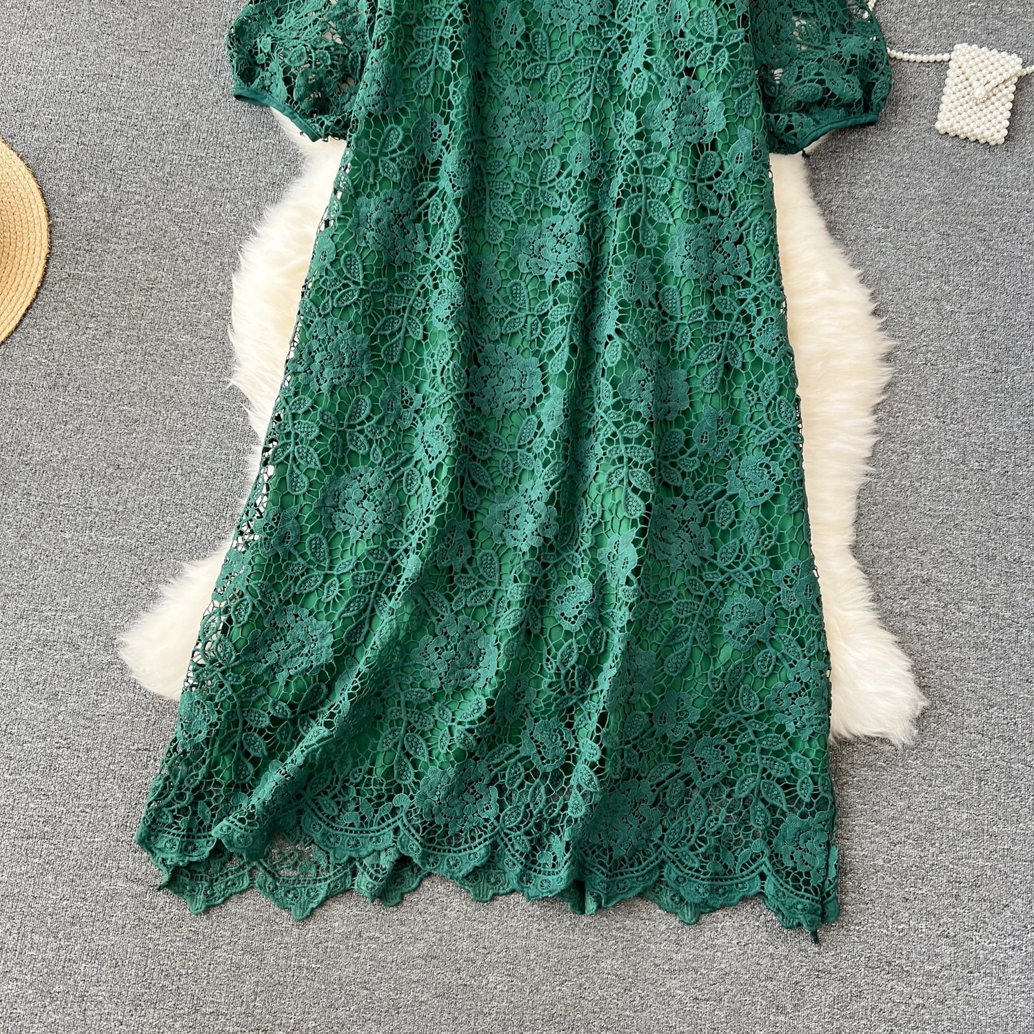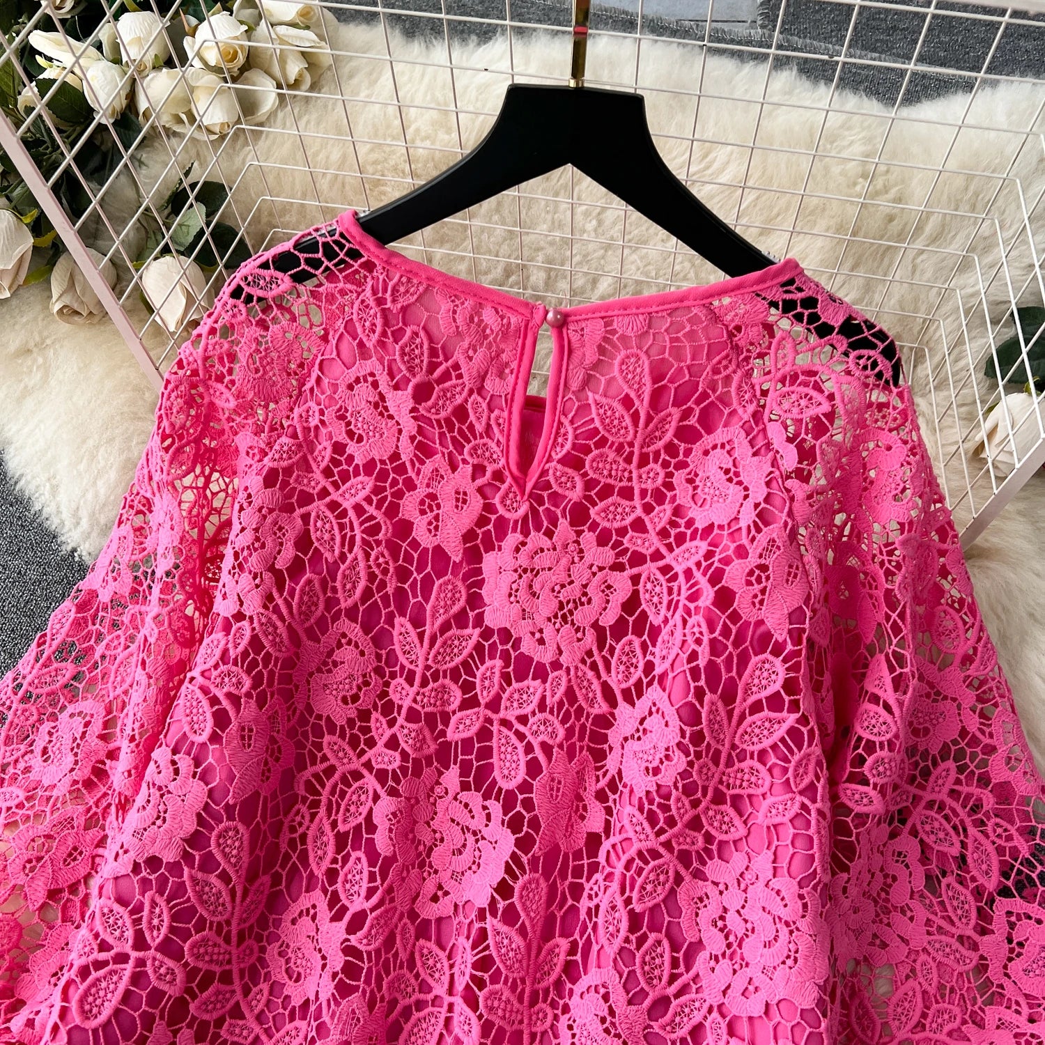 Chic Long Sleeve O Neck Lace Hook Flower Hollow Loose Dress Chiffon A-line Casual Dresses Fashion Women Elegant Vestidos