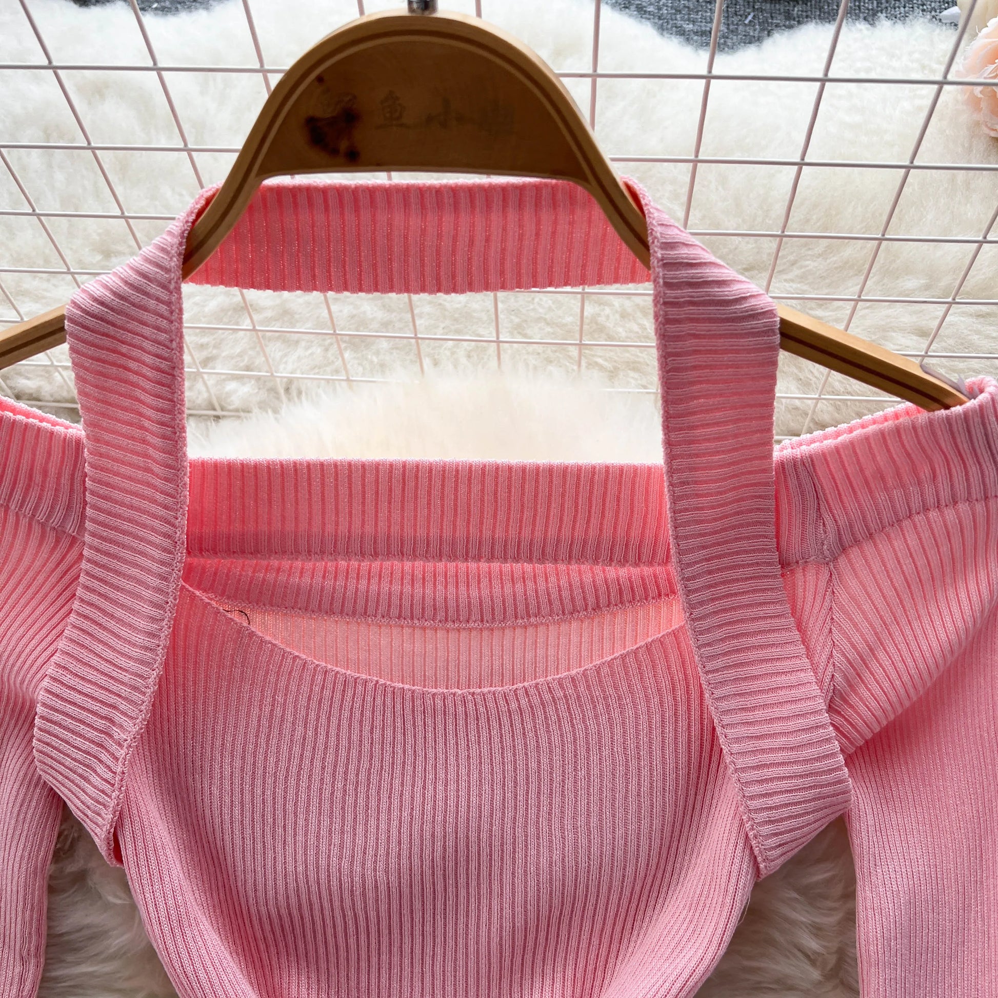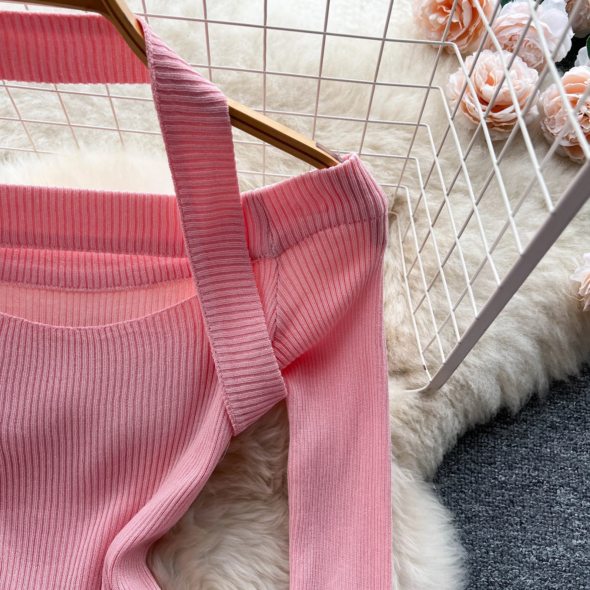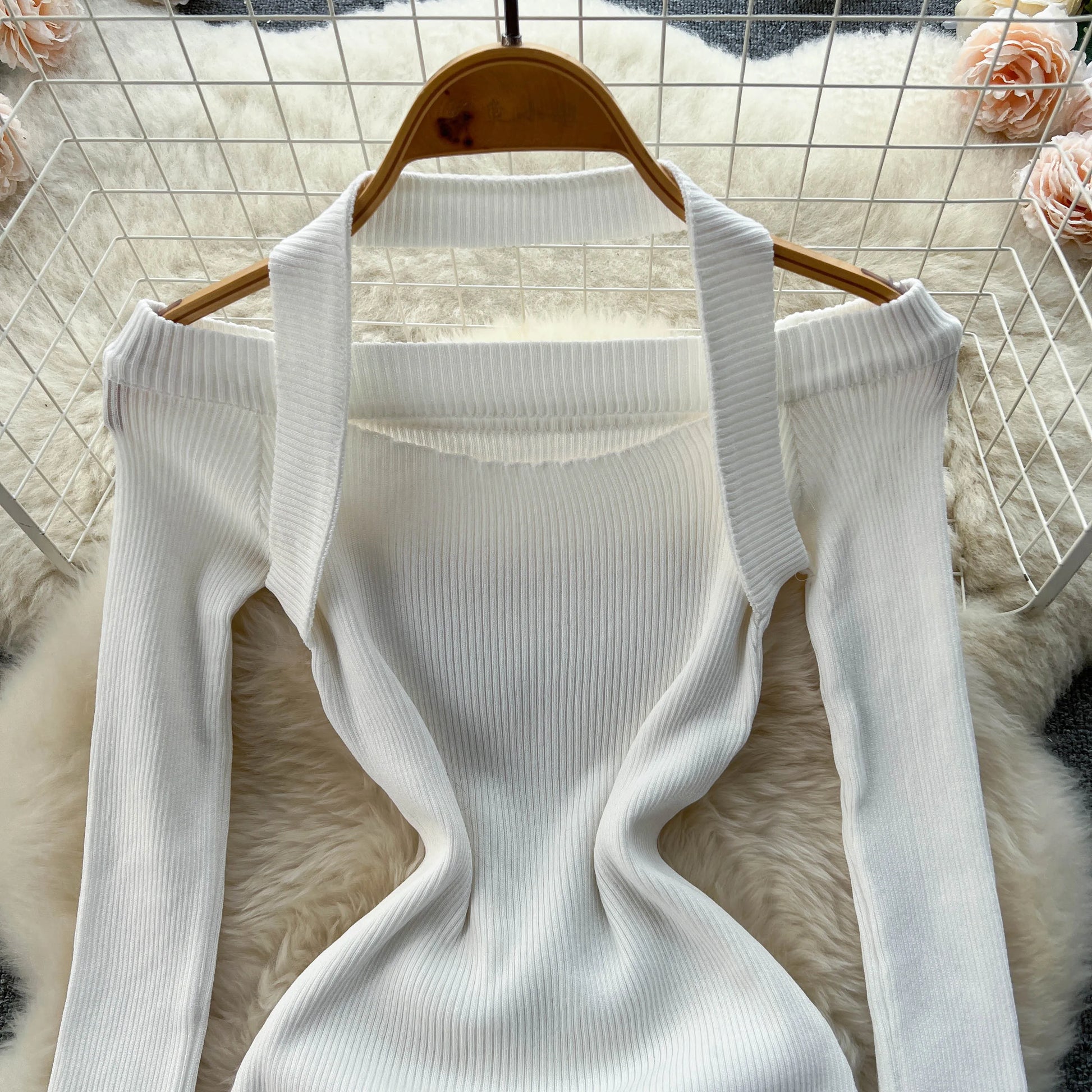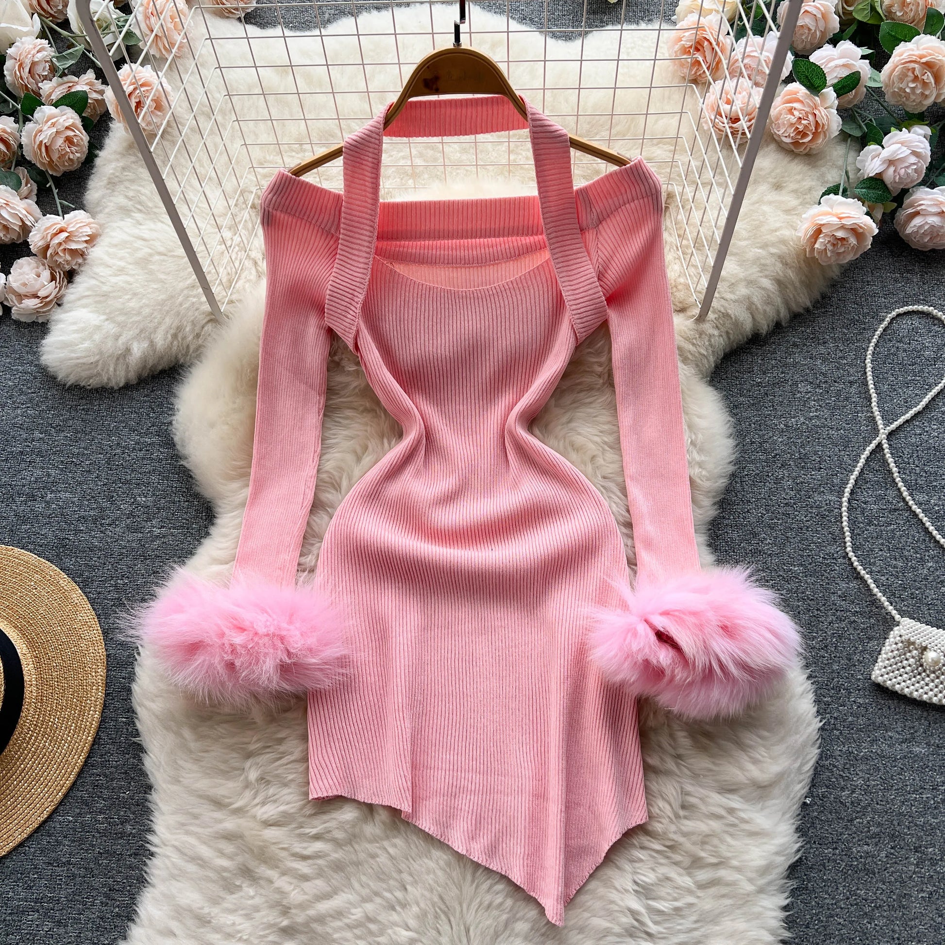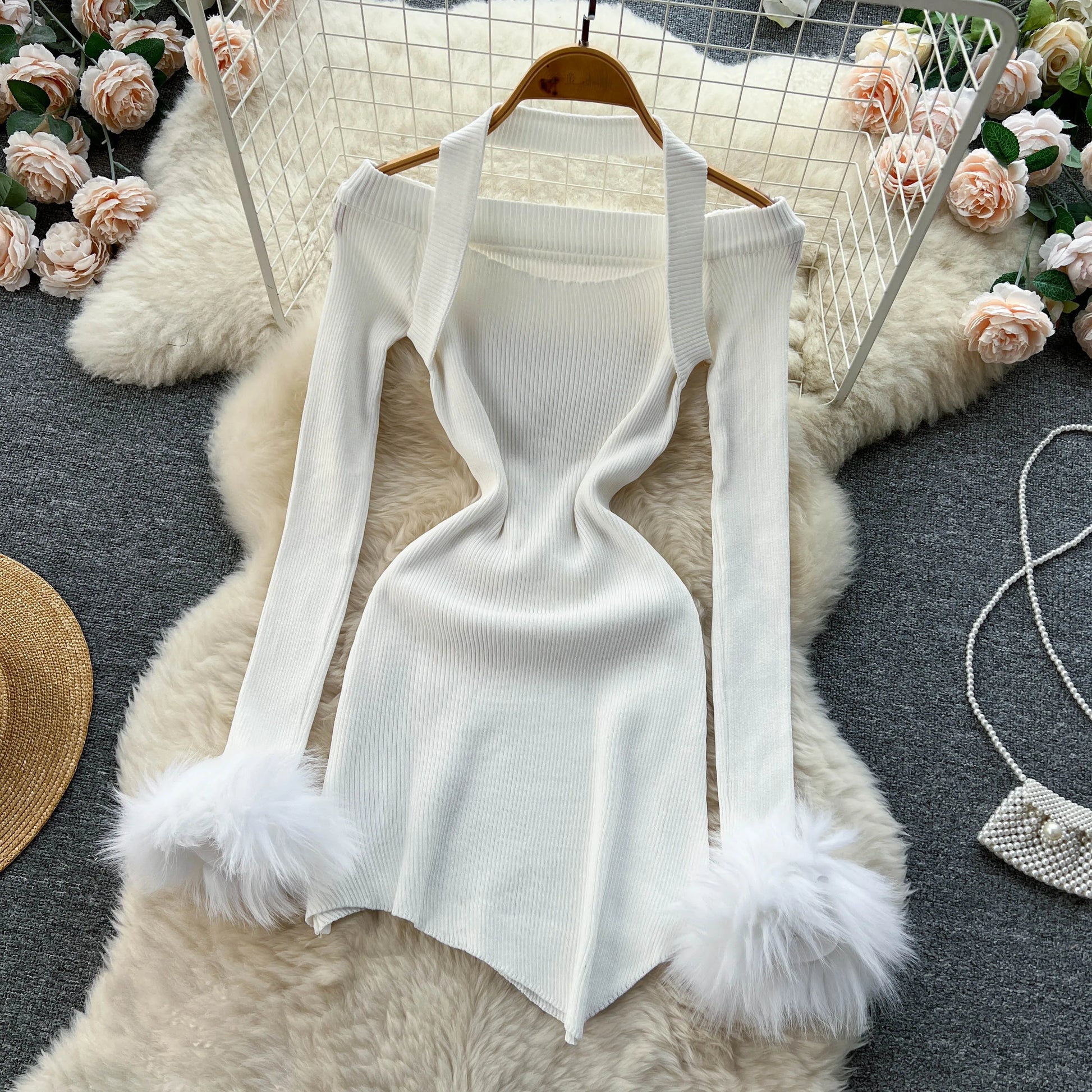 Chic Sexy Halter Bandage Irregular Bodycon Dress Fluffy Long Sleeve Knit Birthday Dress Autumn Winter Pencil Sweater Vestidos