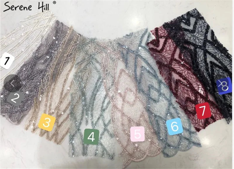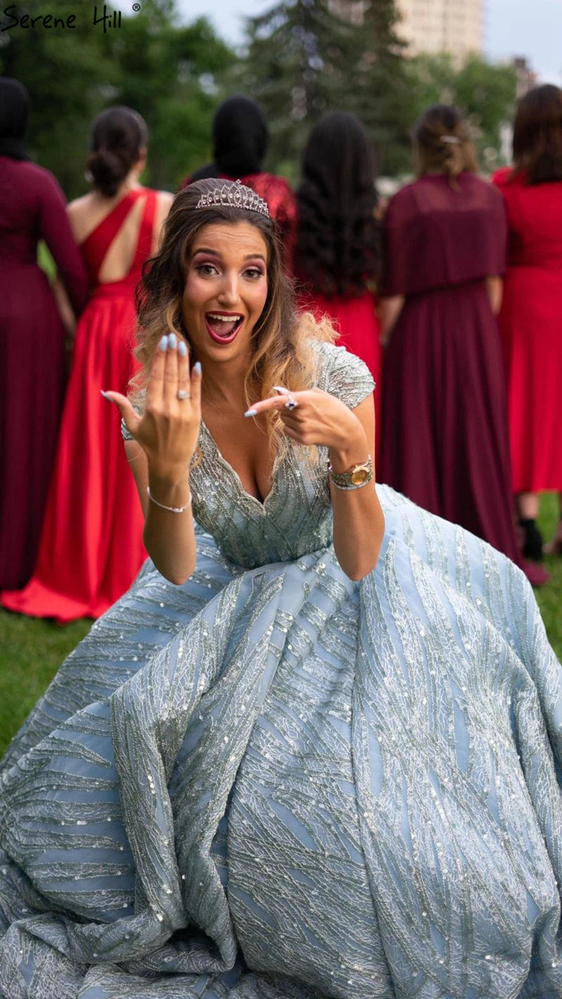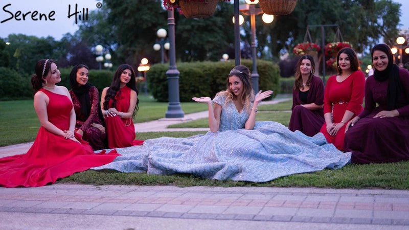 Clear Water Blue High Collar Evening Dresses 2024 Short Sleeve Lace Sequined Bridal Gowns Design Real Photo HM66981