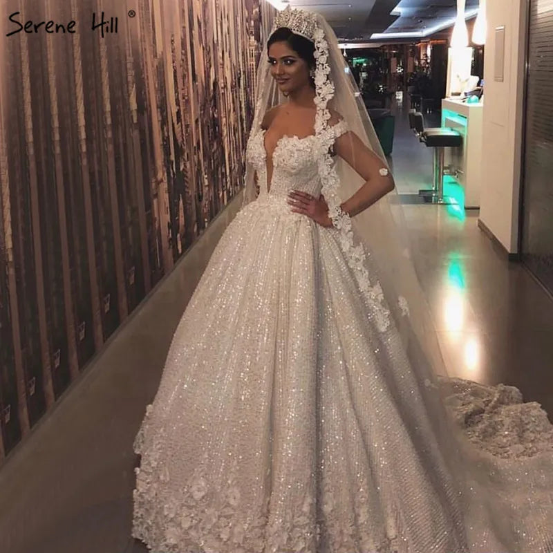 Dubai Design White Luxury Vintage Wedding Dresses 2024 Off Shoulder Handmade Flowers Bridal Gown Real Photo HA2195