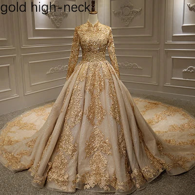 Dubai Extreme Luxury Long Sleeves Wedding Dresses 2024 Vintage Sequined Beading High-end Bridal Gown Real Photo HA2184