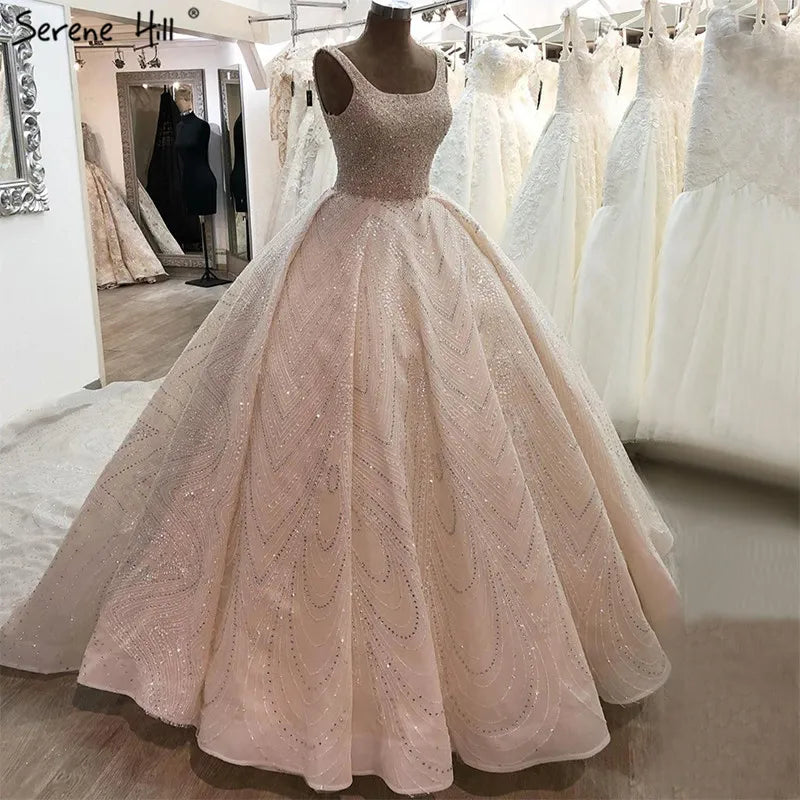 Dubai Ivory Luxury Sequined Sparkle Wedding Dresses 2024 Sexy Sleeveless Vintage Bridal Gowns HA2259 Custom Made