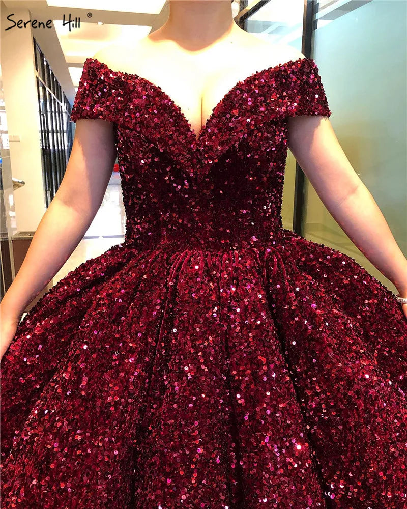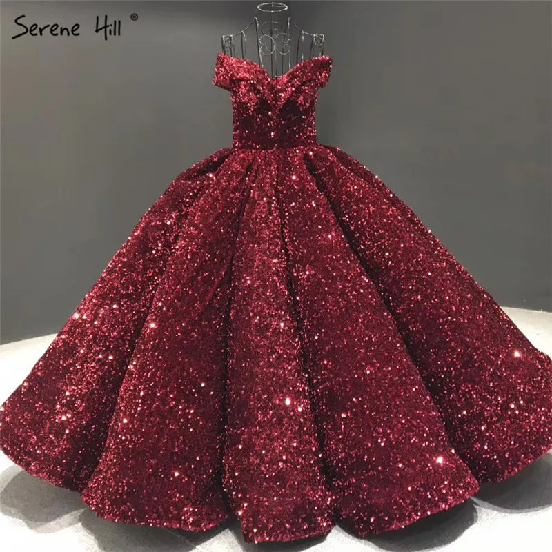 Dubai Sweetheart Sexy Green Luxury Wedding Dresses 2024 Sequined Off Shoulder Bridal Gowns Serene Hill HM66991 Custom Made
