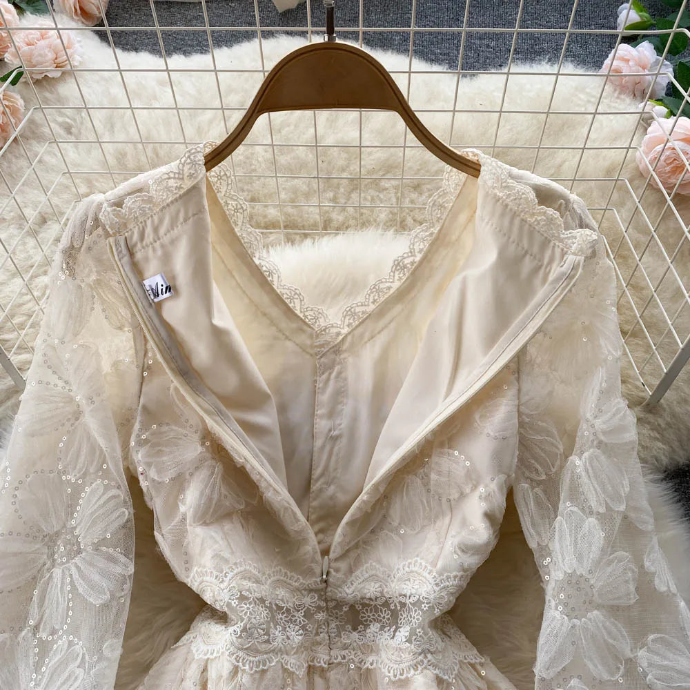 Elegant and Chic Women Fashion Lace Midi Party Dress Spring Vintage A-Line Solid Birthday Prom Vestidos Female Clothes Robe New