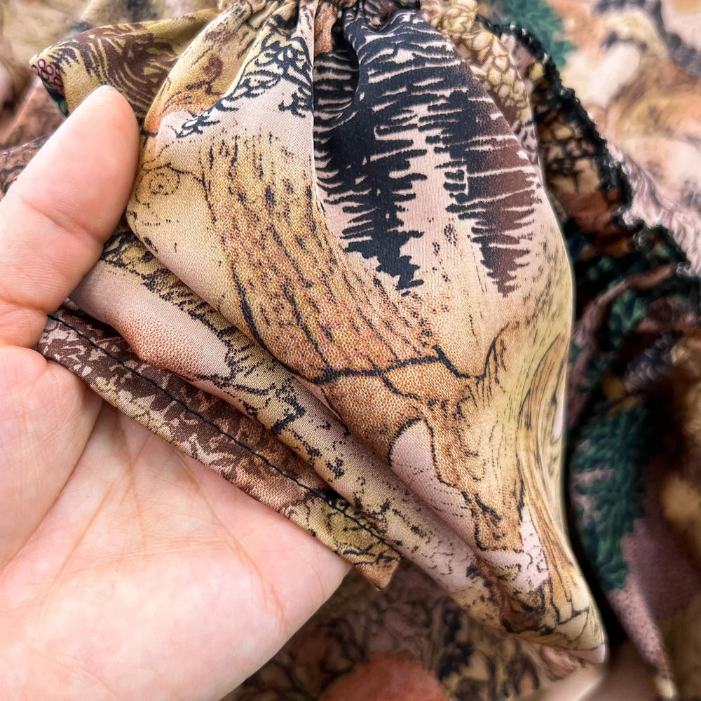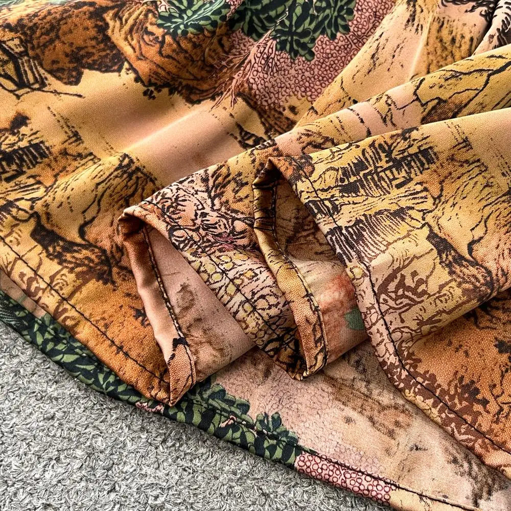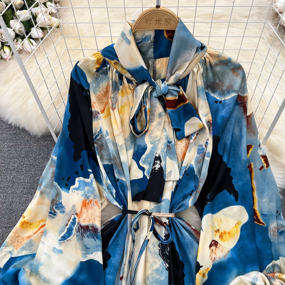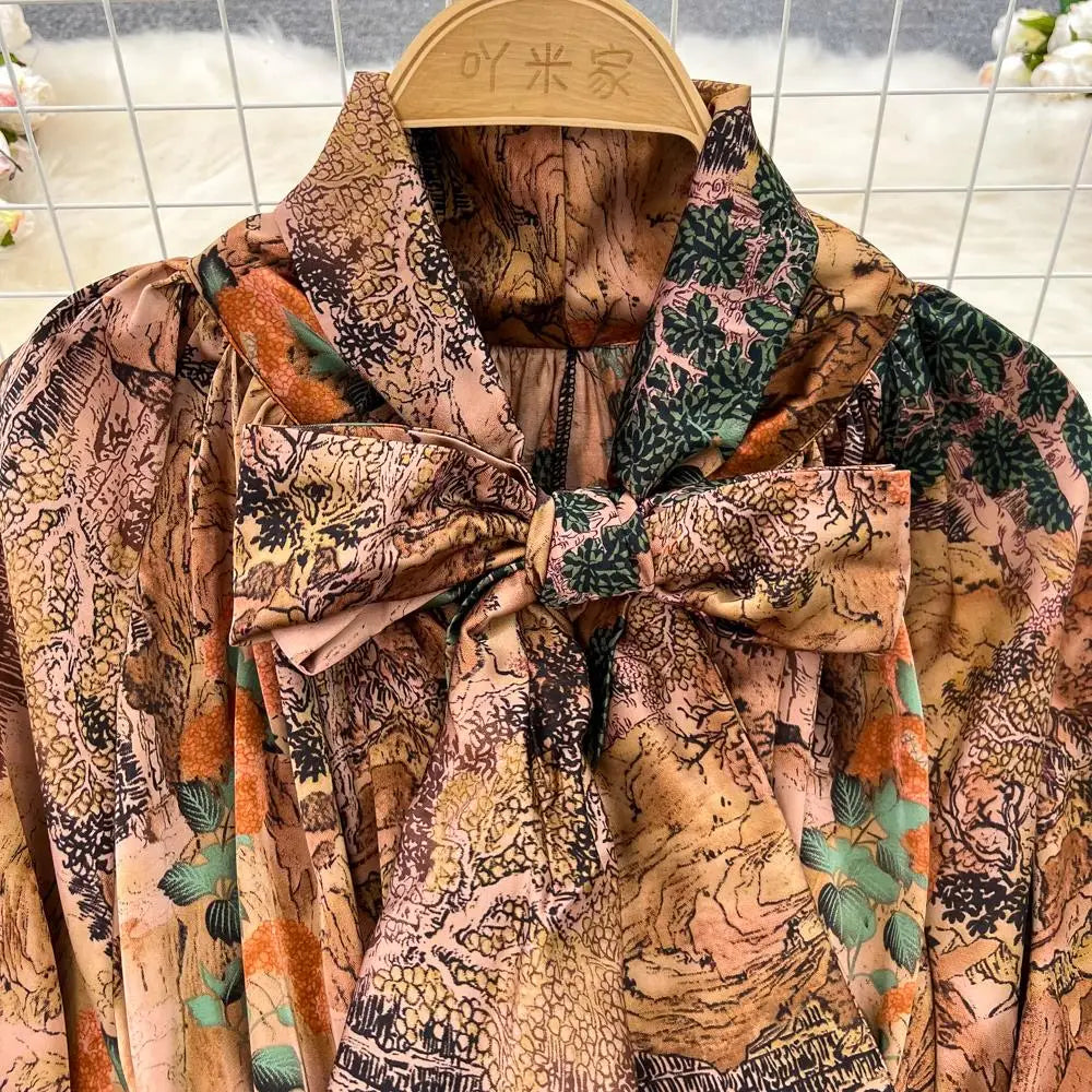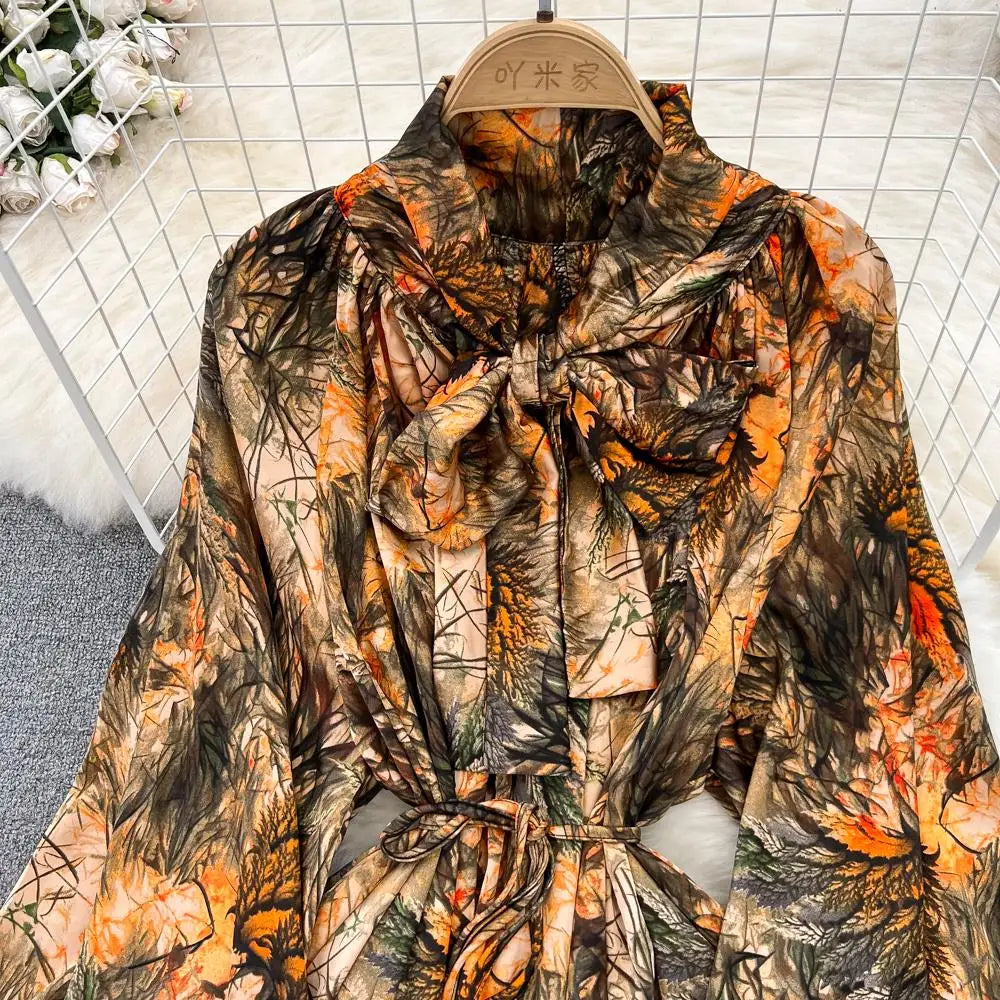 Elegant Casual A-Line Vintage Ruffle Print Long Dress Autumn Lantern Sleeve Party Boho Dresses Beach Holiday Female Vestidos
