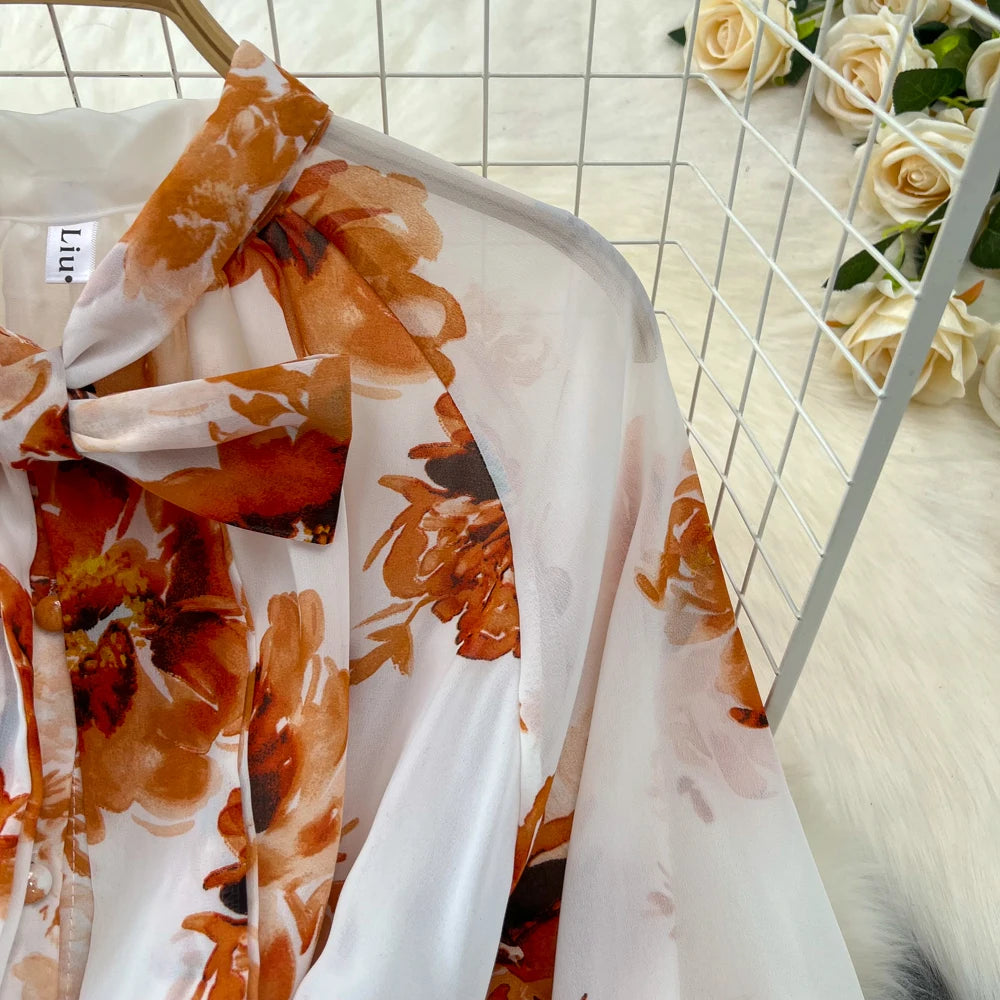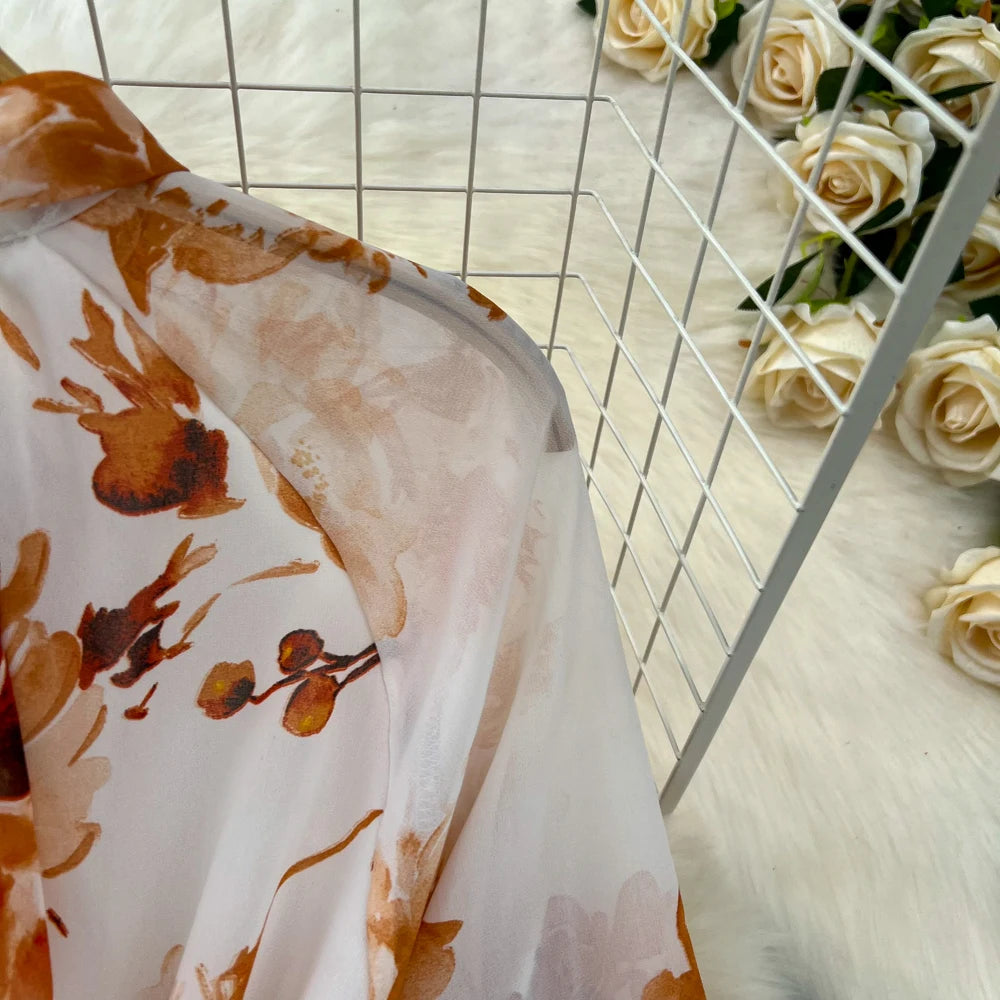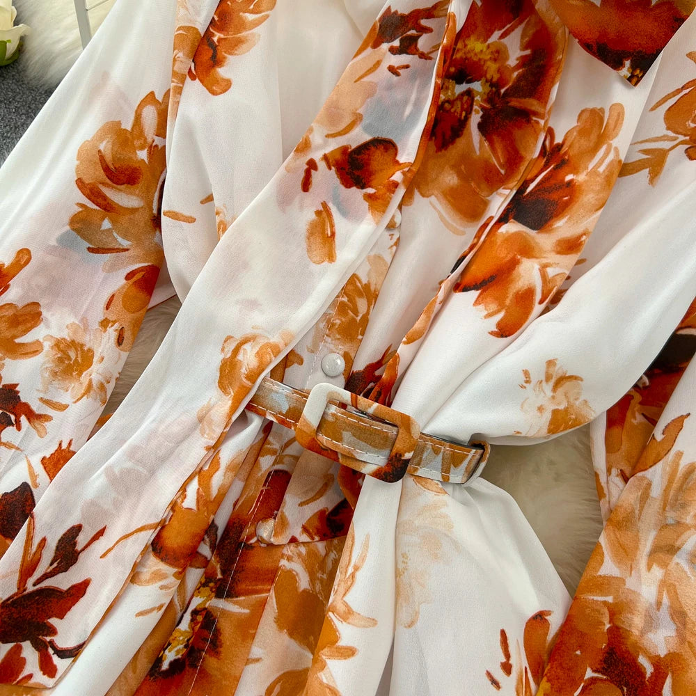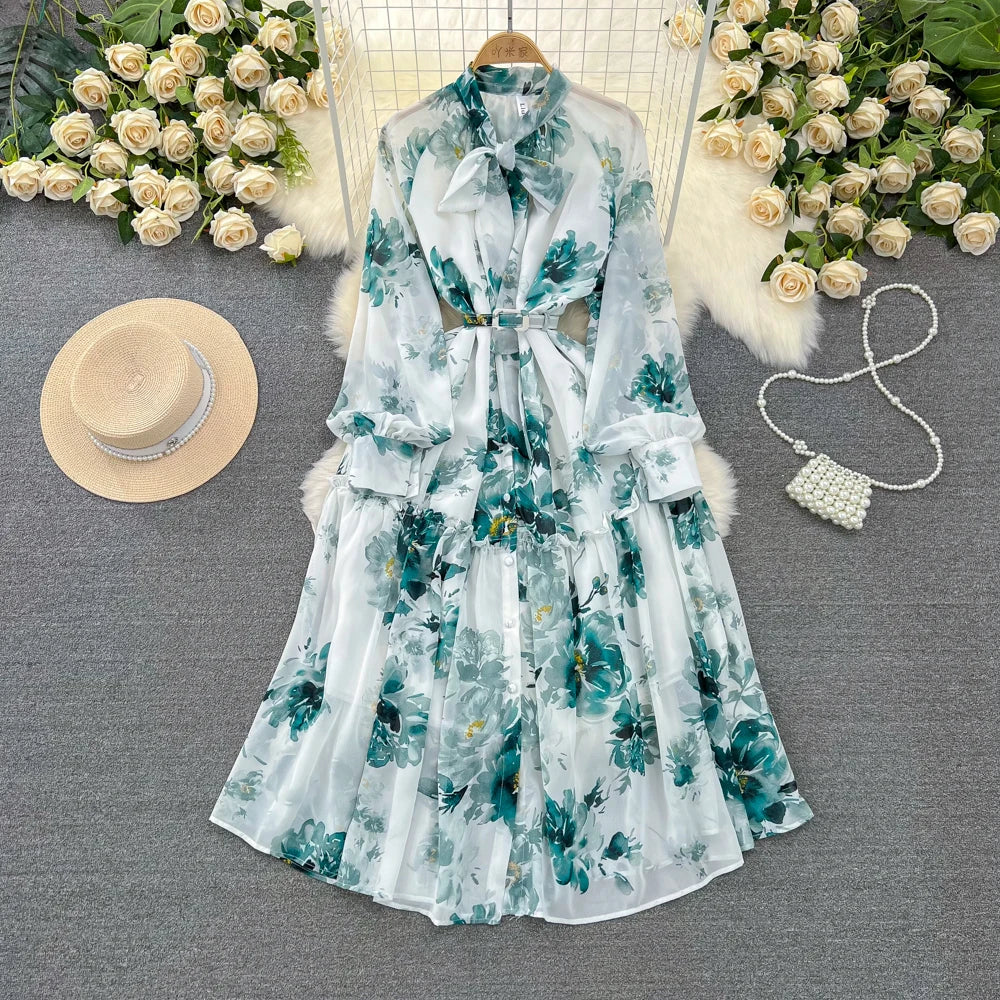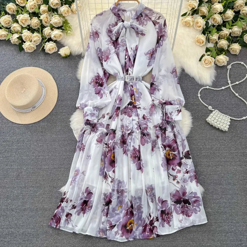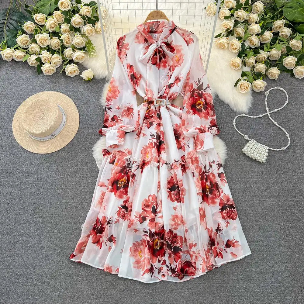 Elegant Casual Women Fashion Floral Print Long Dress Vintage Pleated A-Line Maxi Boho Beach Party Robe Female Clothes Mujers