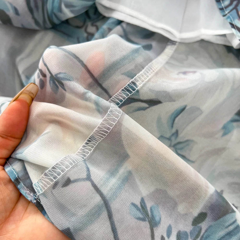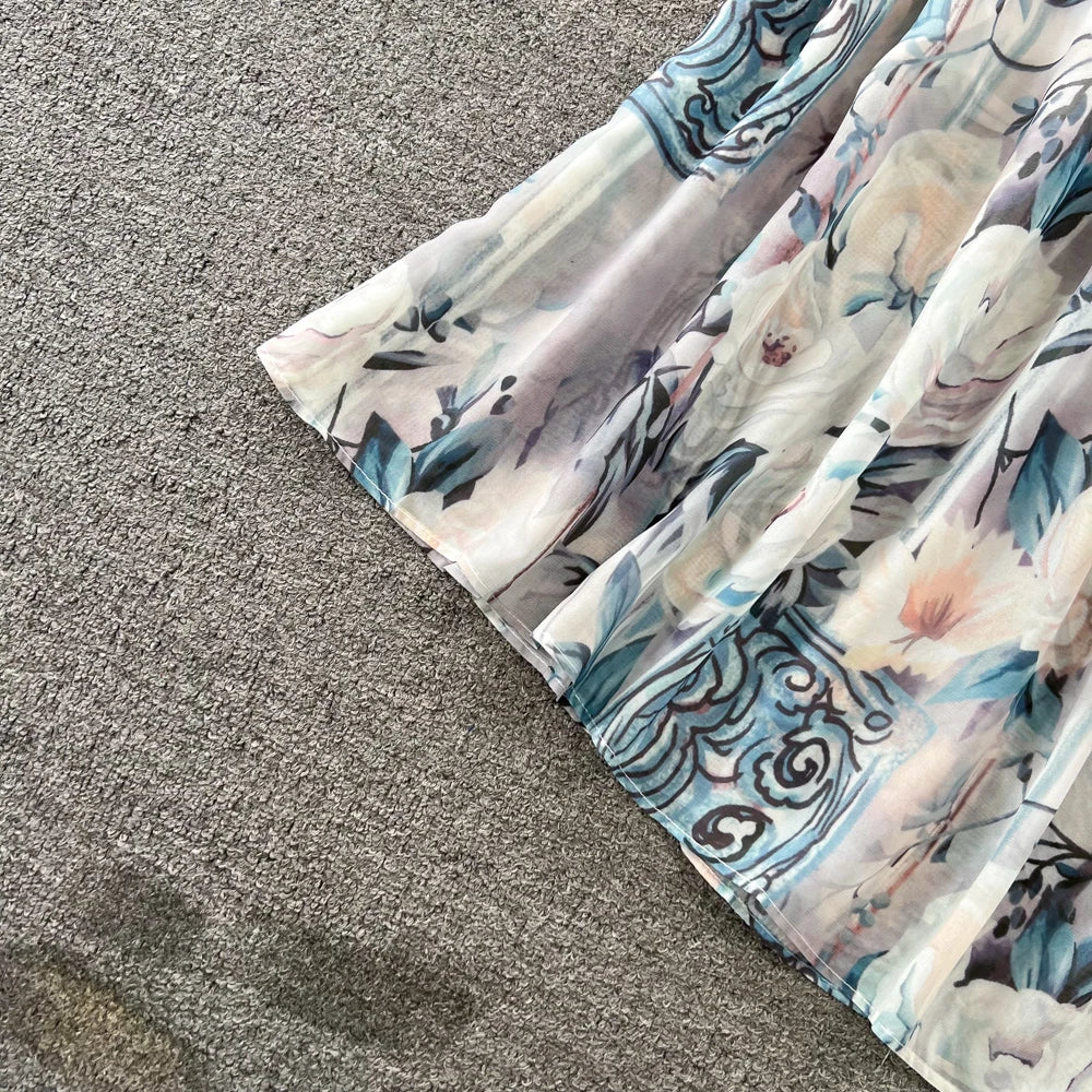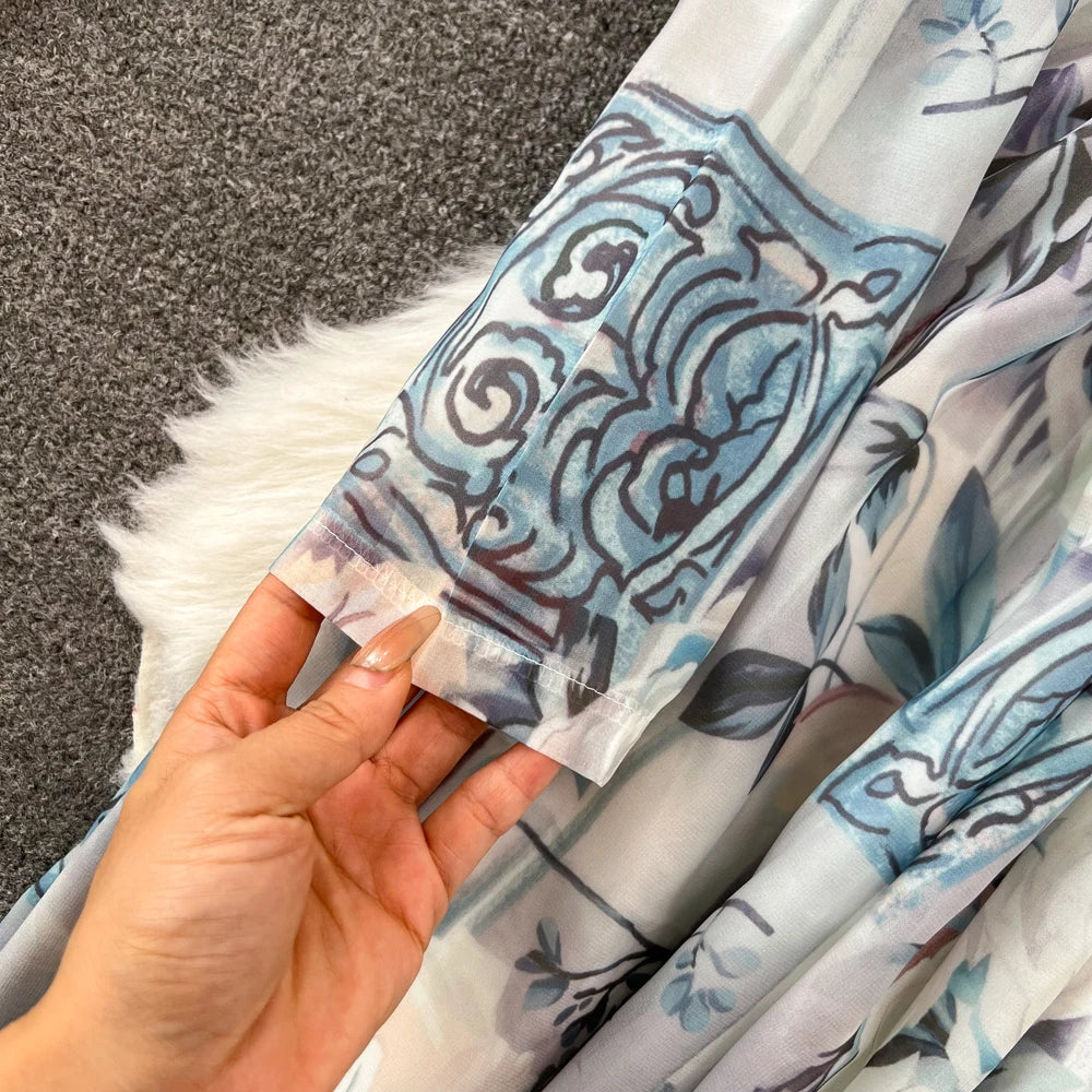 Elegant Chic A-Line Women Autumn Dress Long Sleeve Casual Floral Print Vintage Beach Holiday Vestidos Female Lace-up Robe Mujers