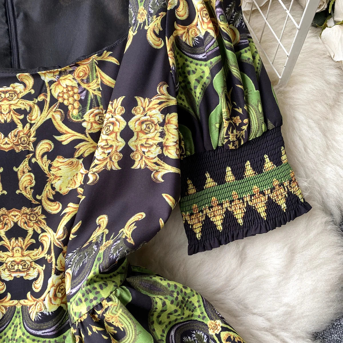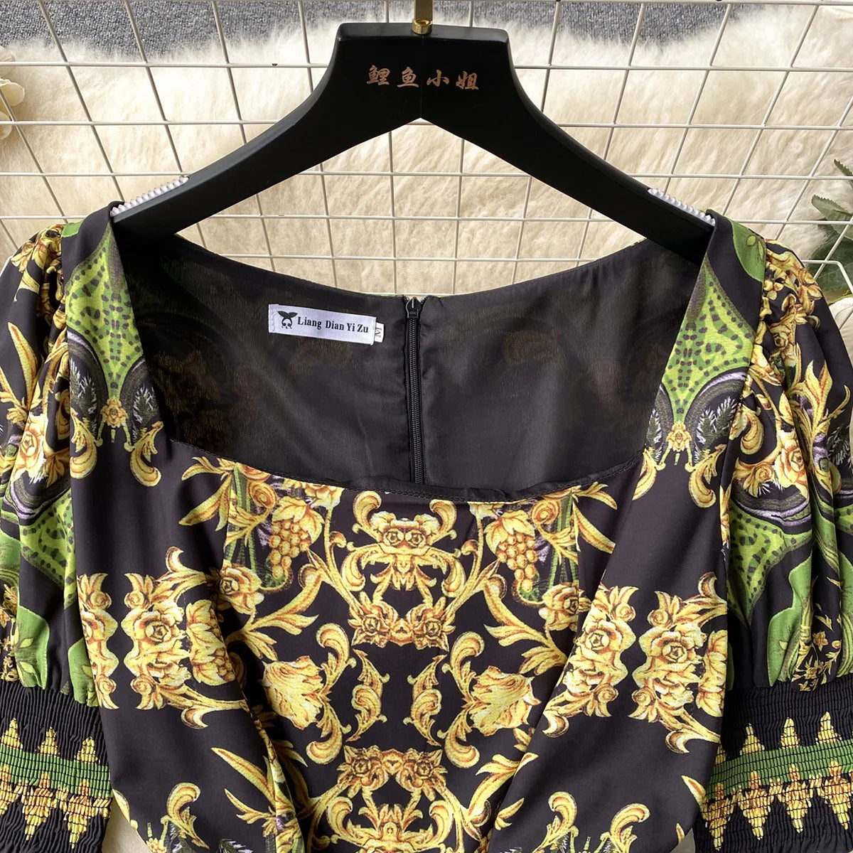 Elegant Party Dresses For Women 2023 Fashion Clothes Vintage Print Mini Dress Square Neck Short Sleeve Tiered Hem Summer Dress
