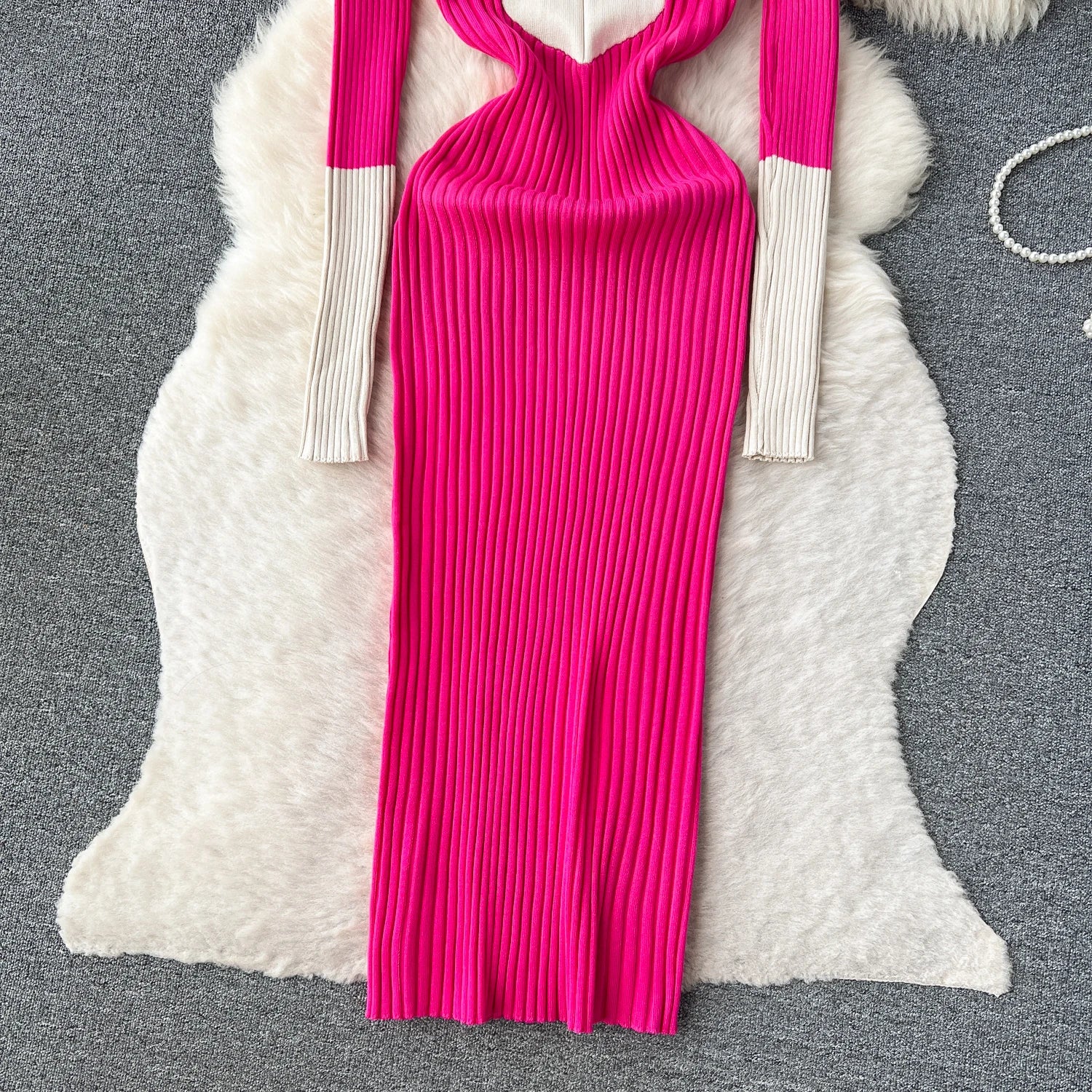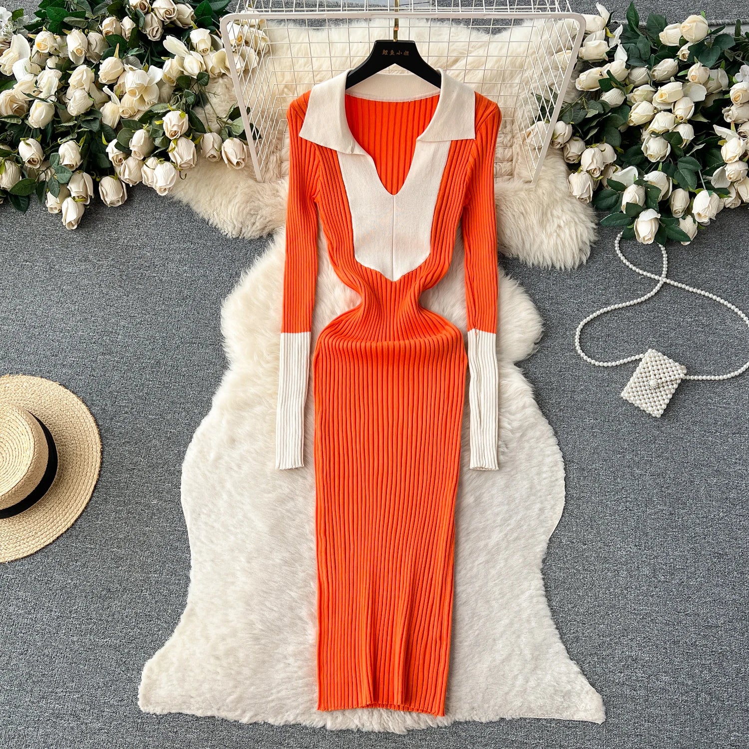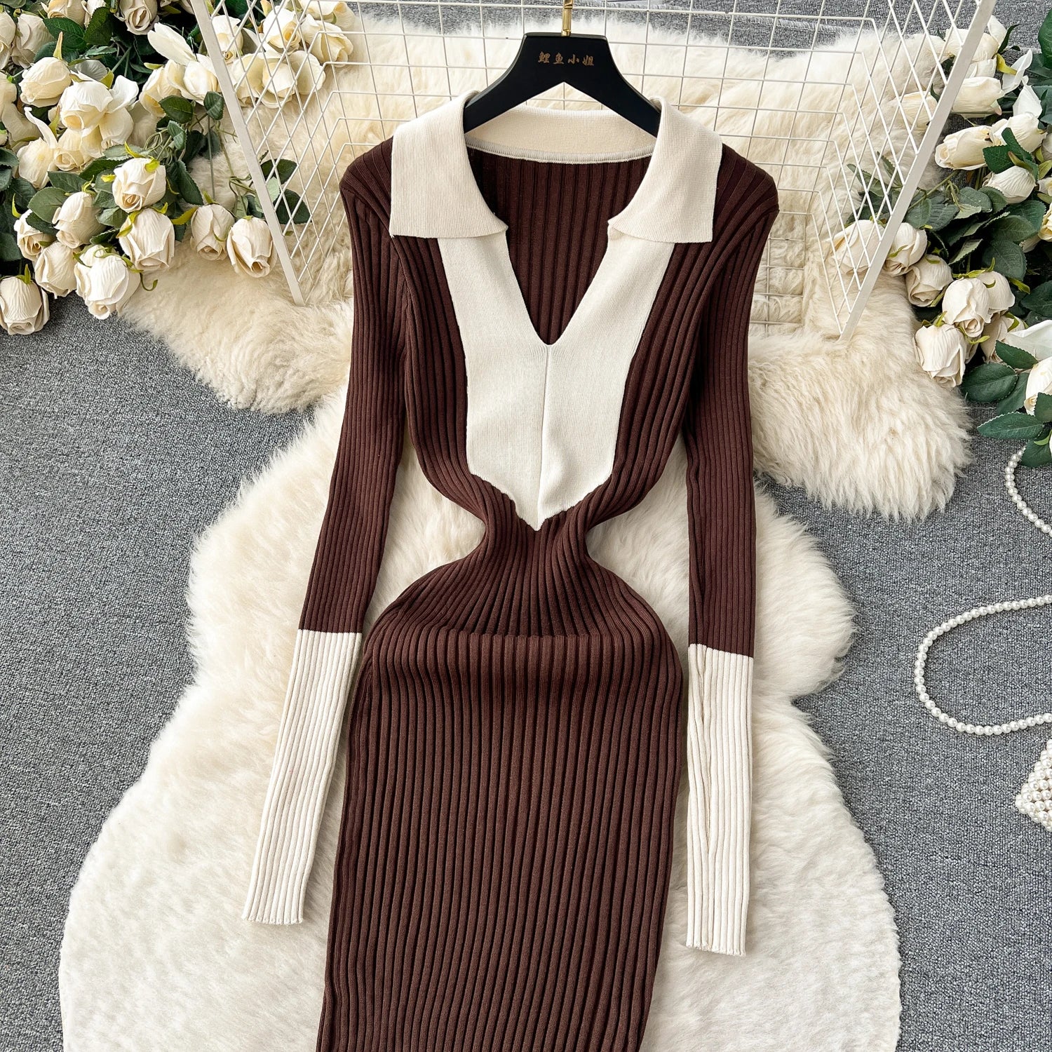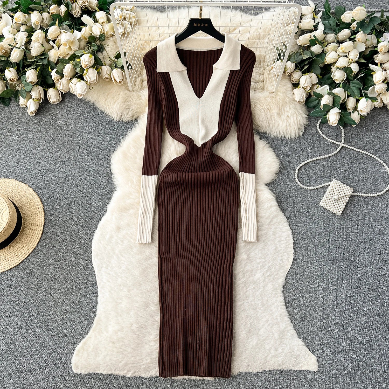 Elegant Polo-neck Long Sleeve Knit Bodycon Pencil Dress Slim Basic Fashion Sweater Vestido Sexy Women Autumn Winter Clothing