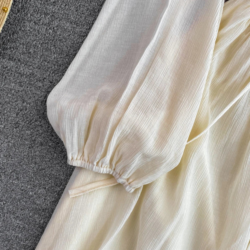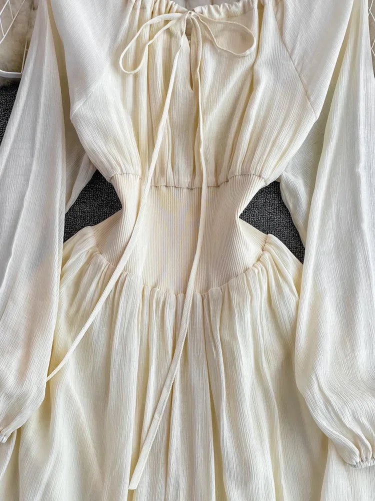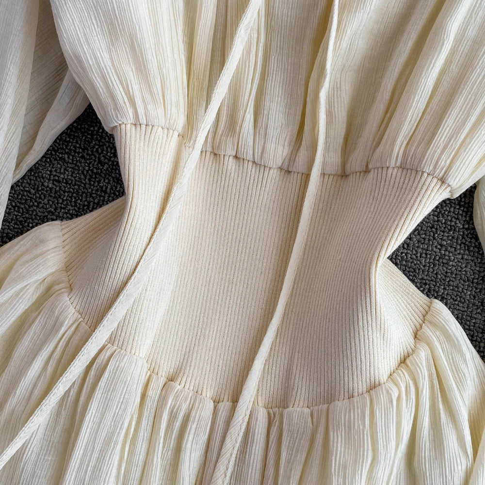 Elegant Sweet Princess Party Dress Women High Waist A-Line Lace Up Autumn French Vintage Prom Robe One Piece Vestidos Mujer New