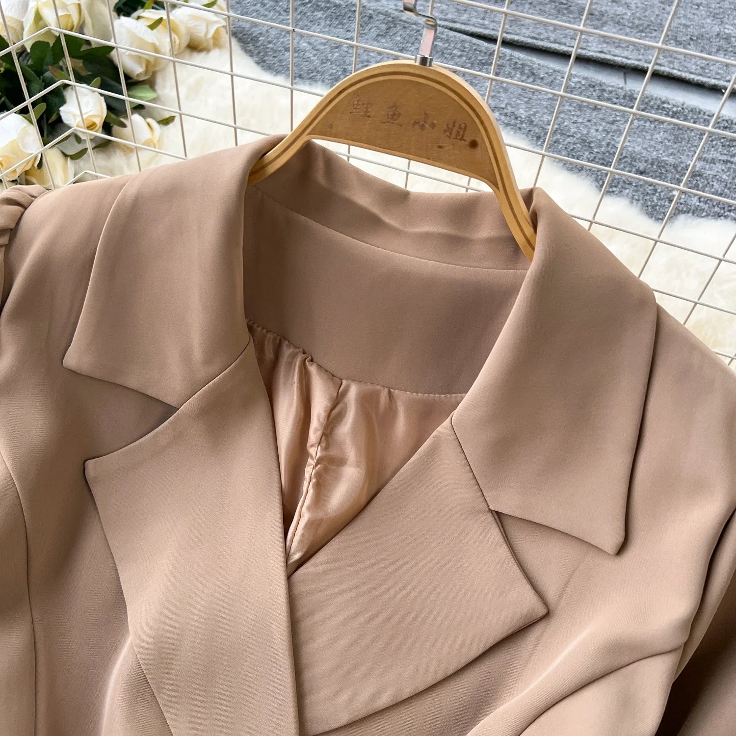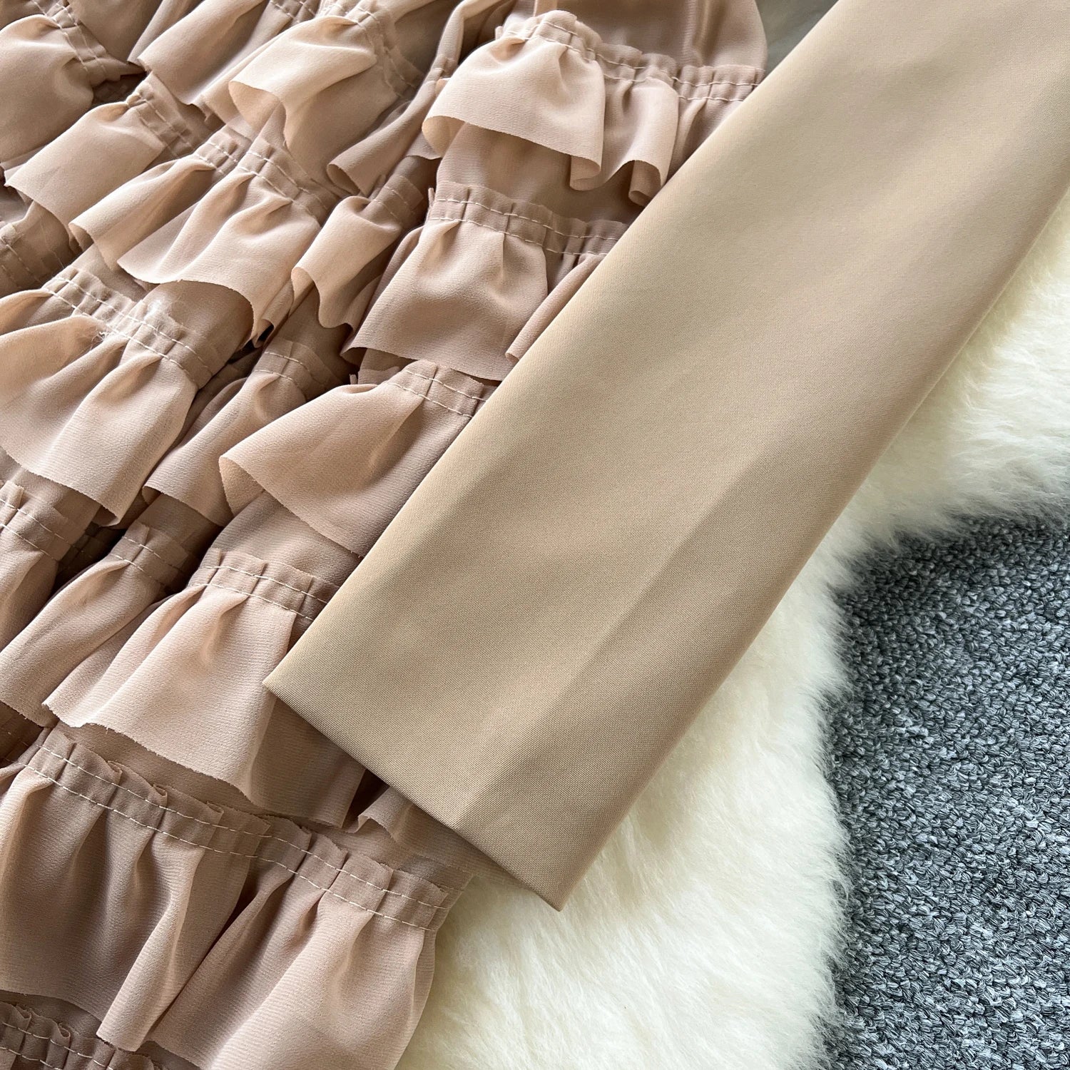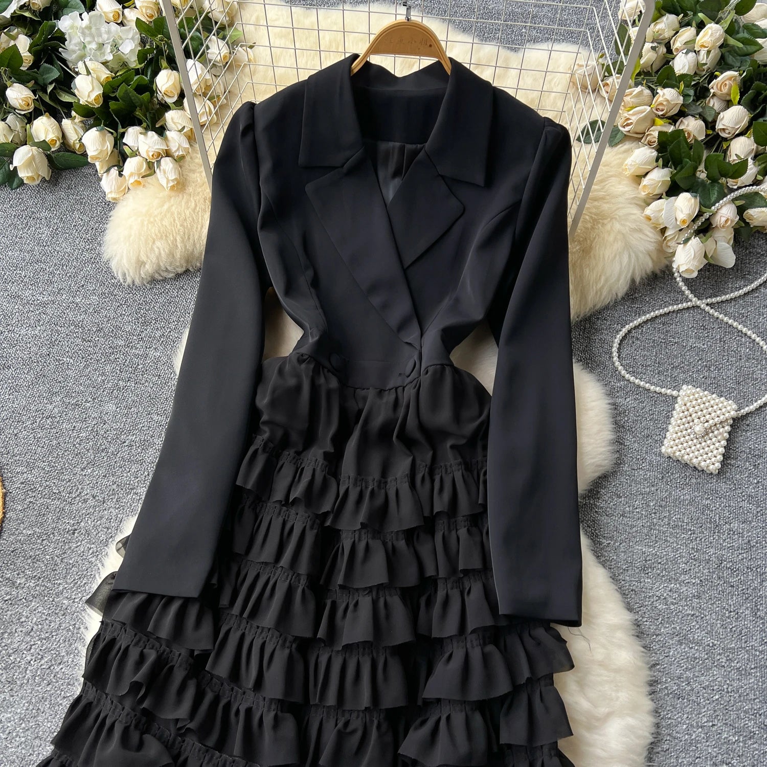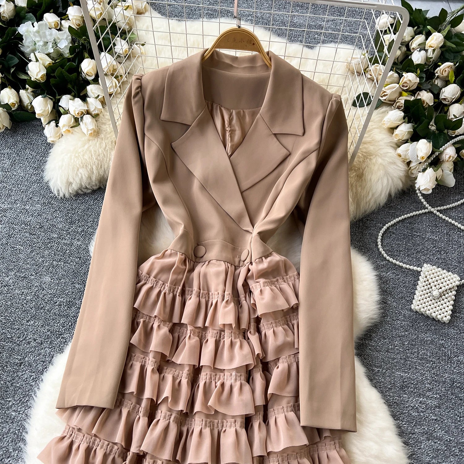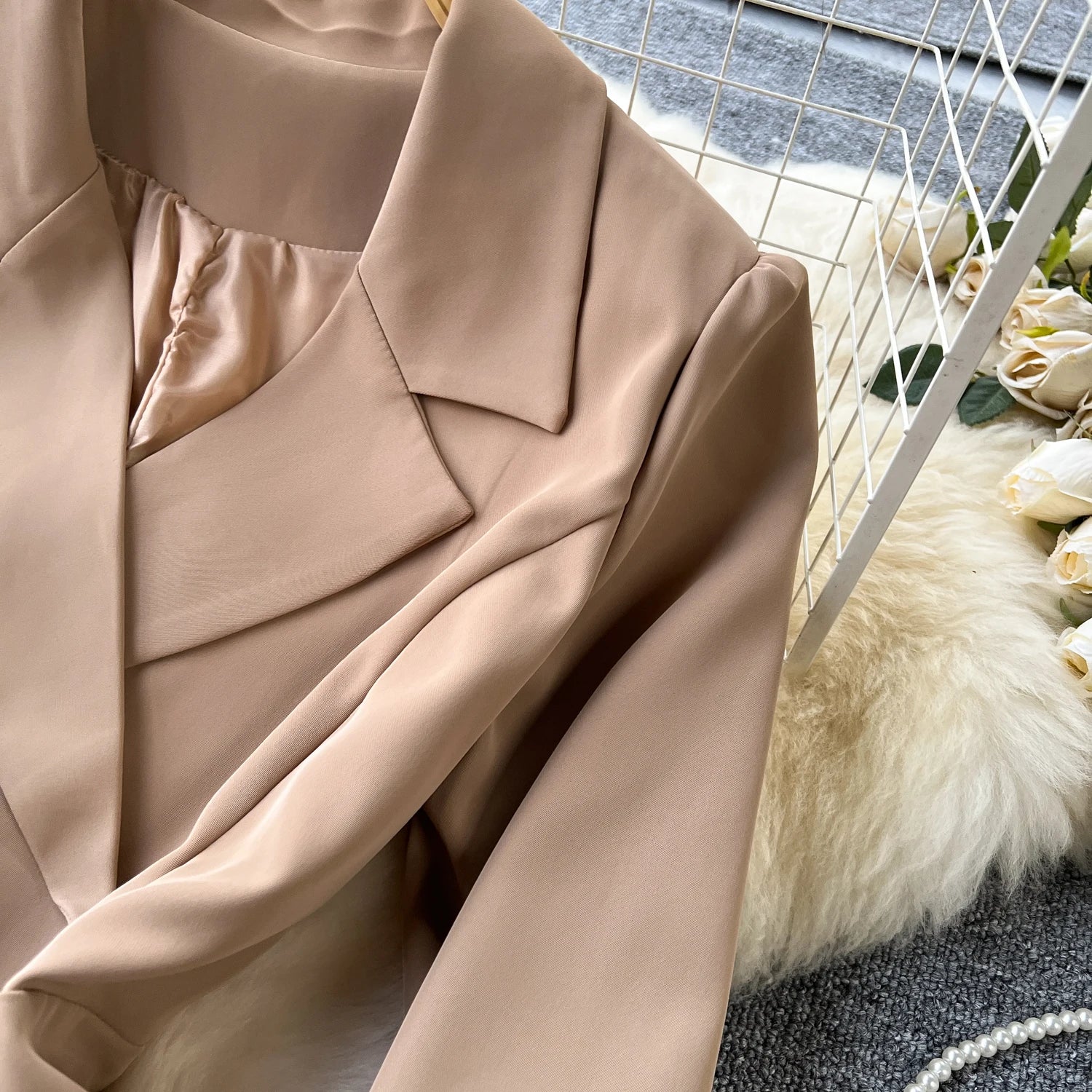 French Vintage Two Pieces Sets Notched lool sleeve mesh sweet A-line Chic PATCHWORK Women Summer dresses