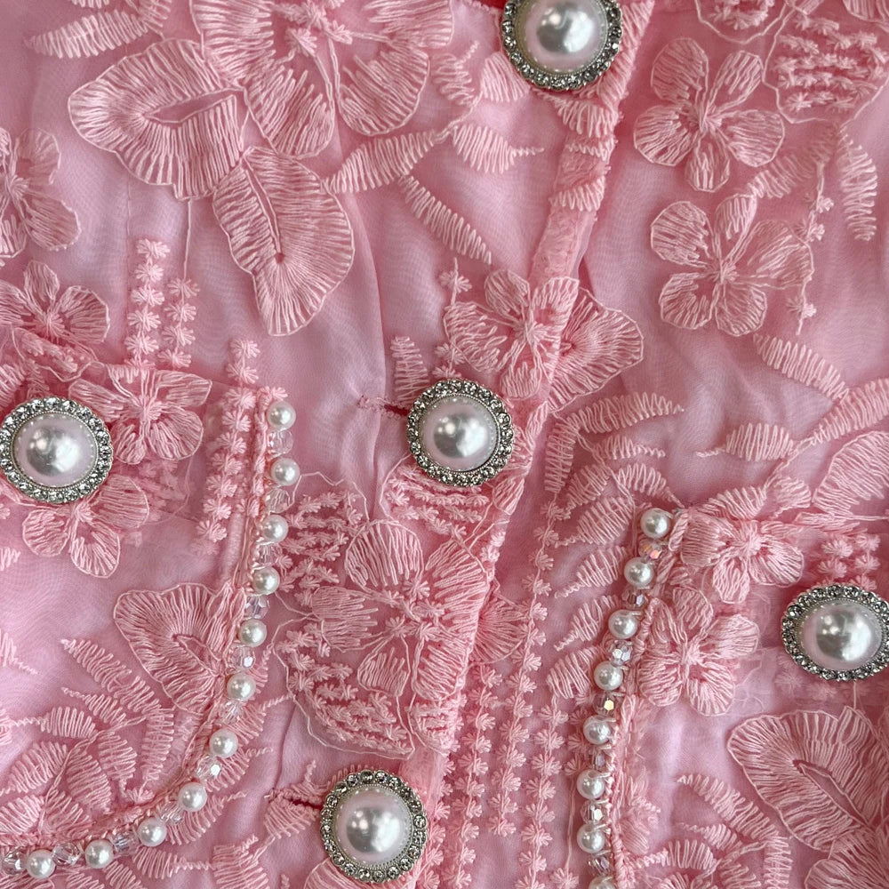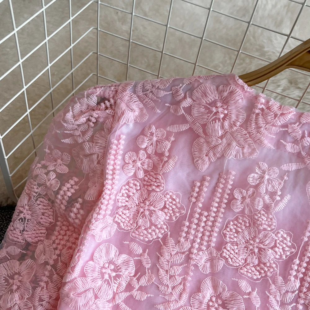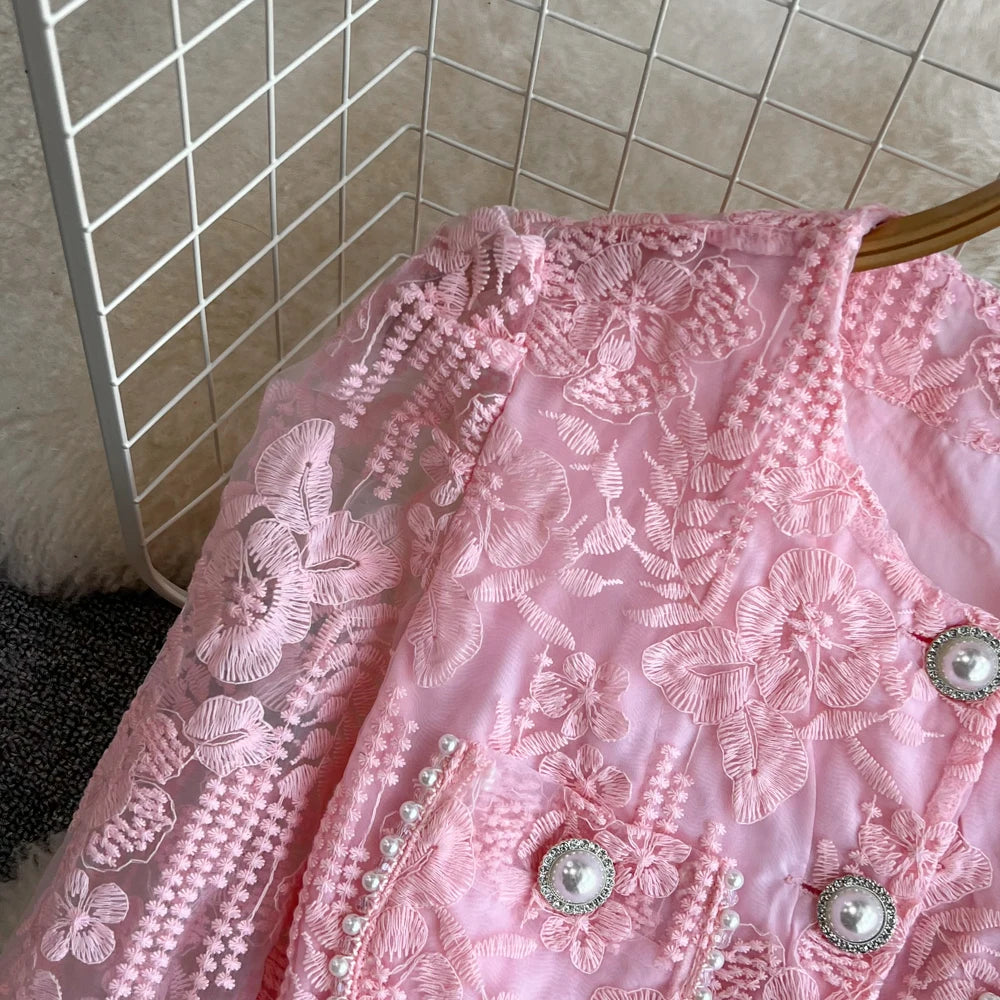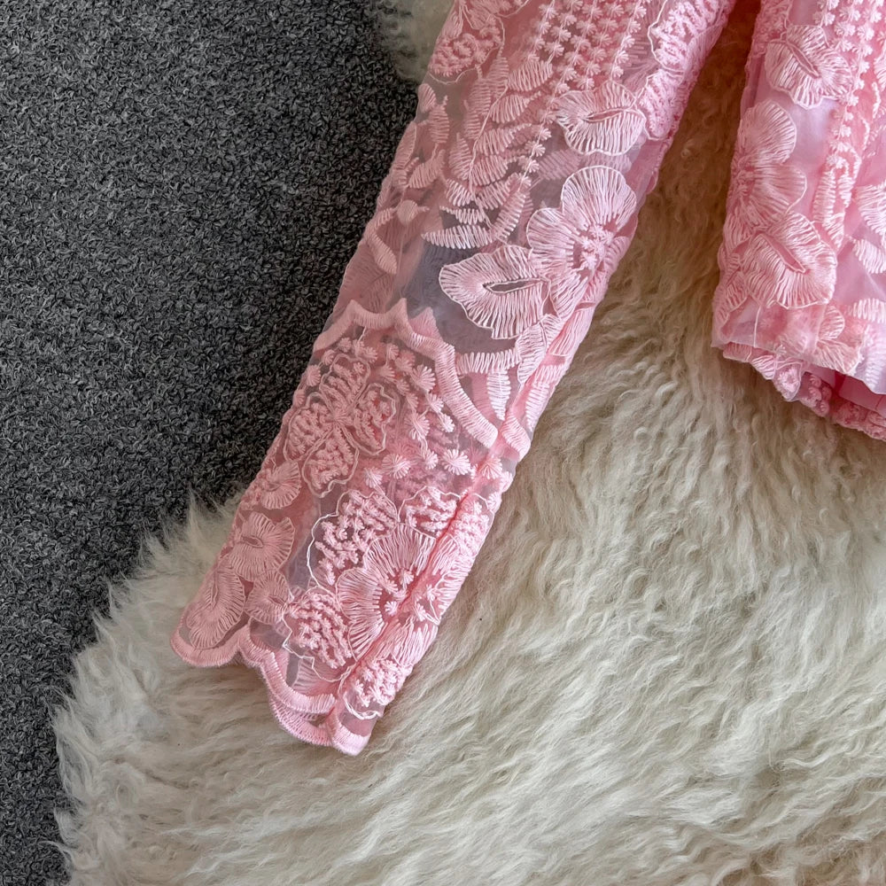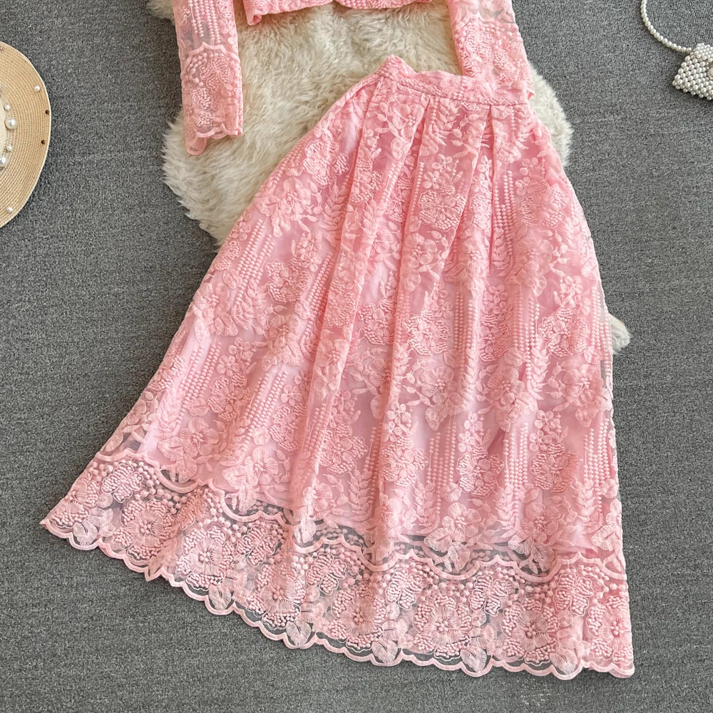 High Quality Floral Embroidery Two Piece Sets Women Suits Elegant OL Long Sleeve Shirt Mid Skirts 2 Piece Outfits Female