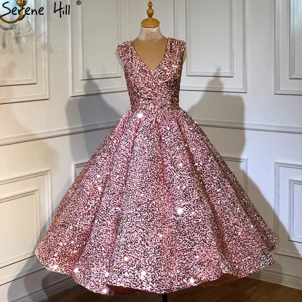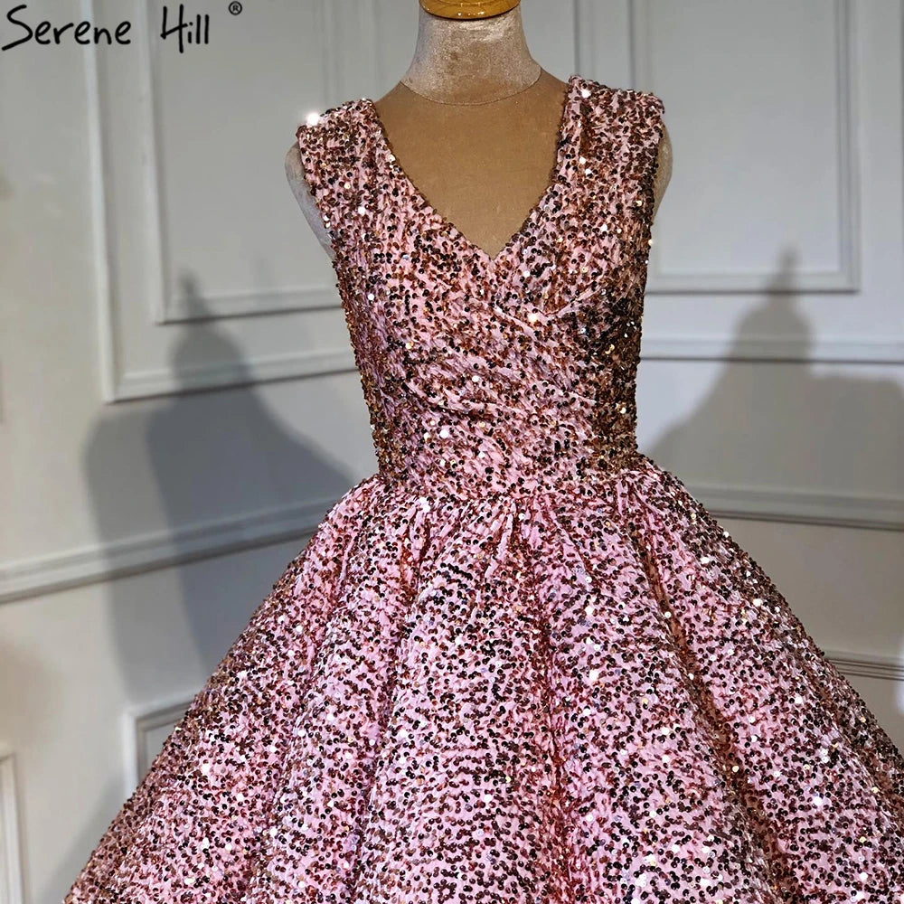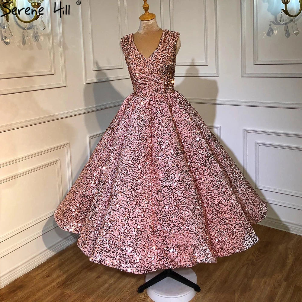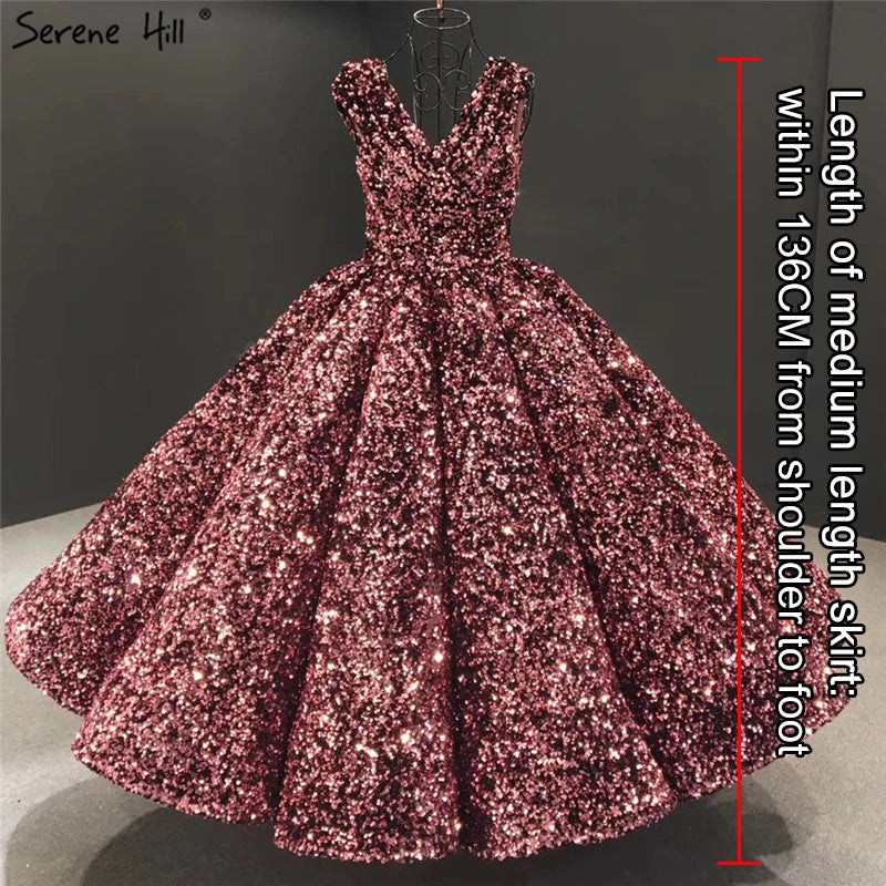 Indigo Blue Gold V-Neck Luxury Evening Dresses 2024 Sleeveless Sequined Sexy Ankle-Length Formal Gowns Serene Hill HA2154