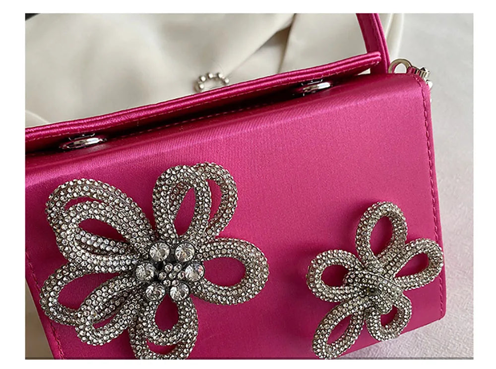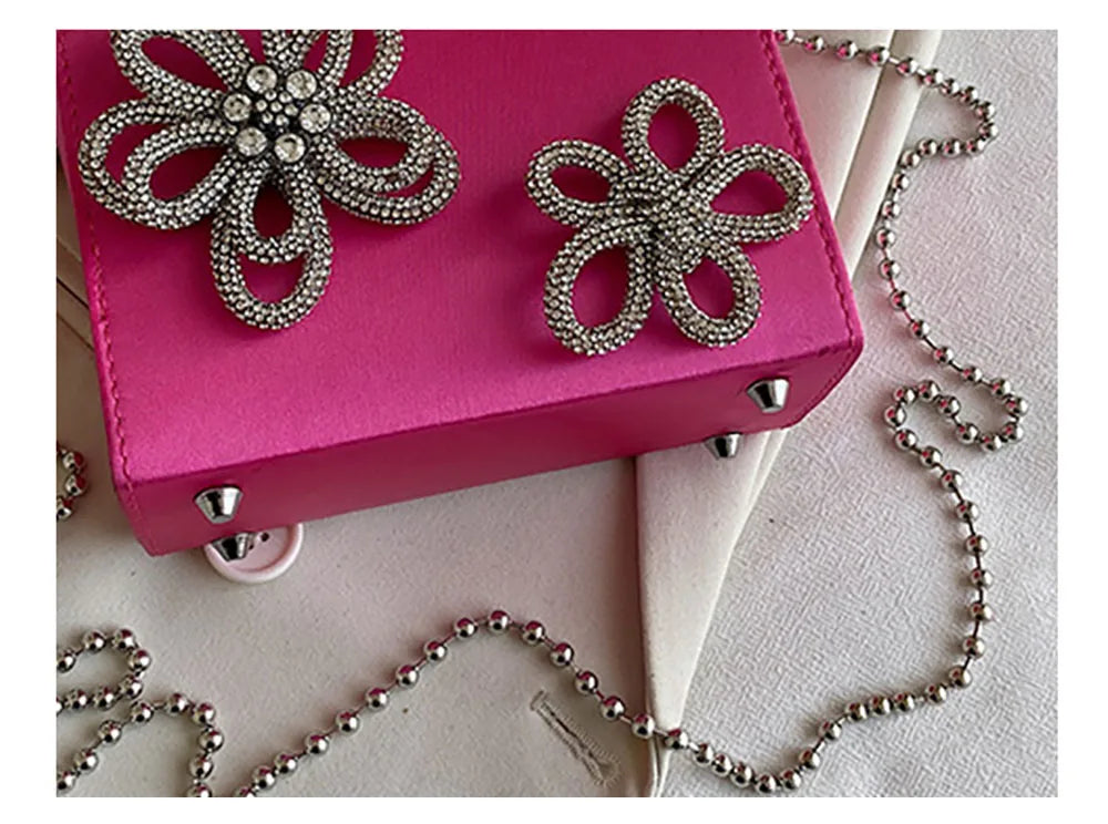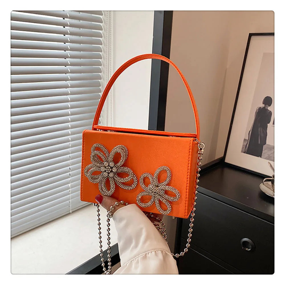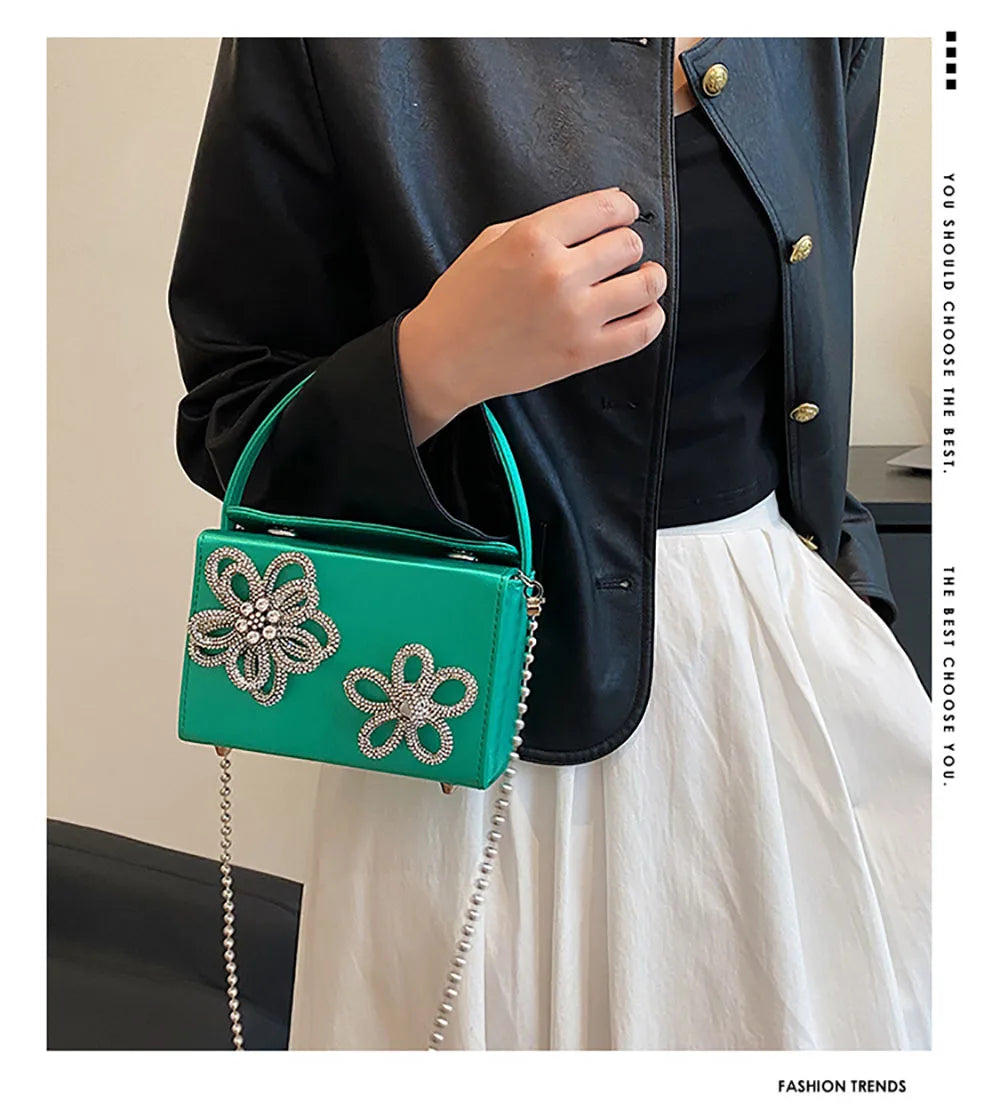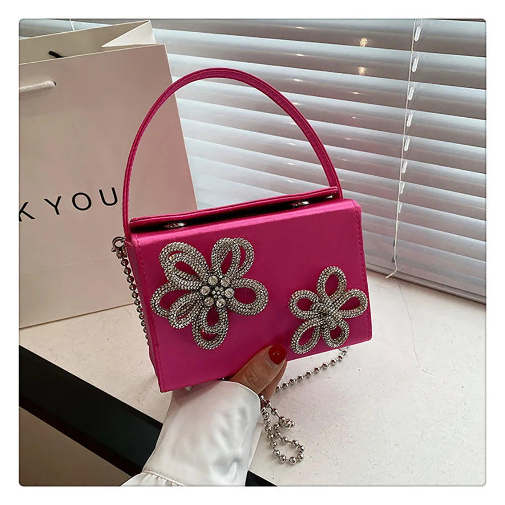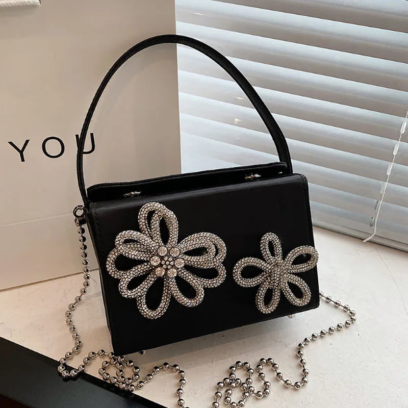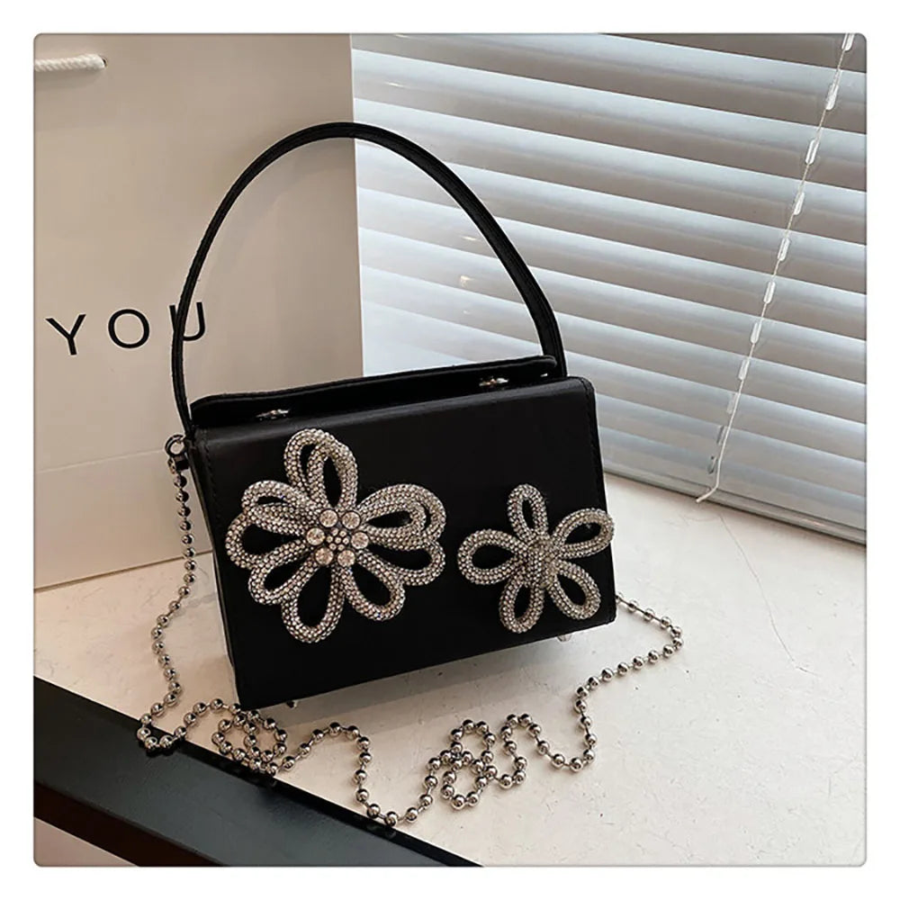 Light Luxury High-Grade Women Chain Crossbody Bag Korean Design Sense Diamond Flower New Pop Handbag Fashion Box Mini Square Bag