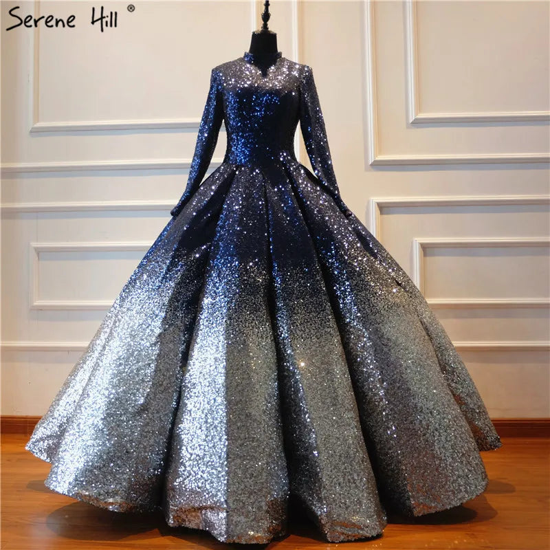 Luxury Full Sequined Sparkly High-end Wedding Dress 2024 New Long Sleeve Vintage Bridal Wedding Gown Real Photo