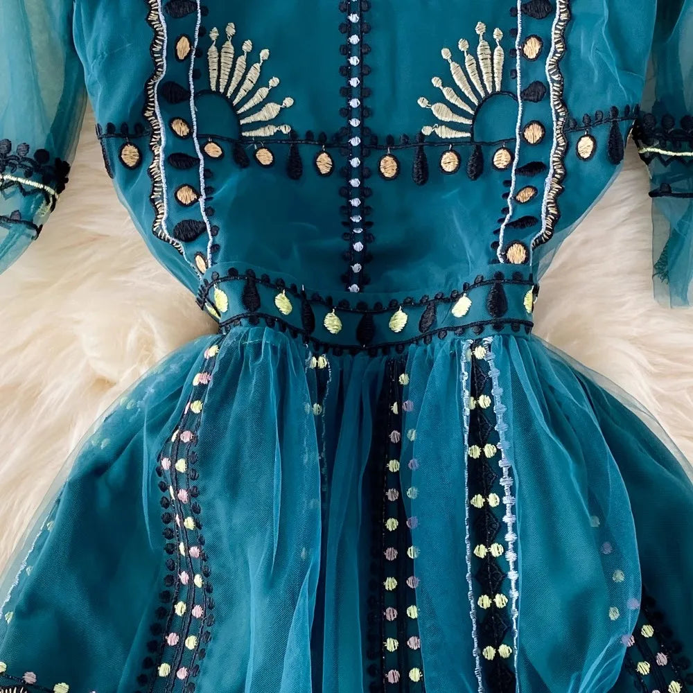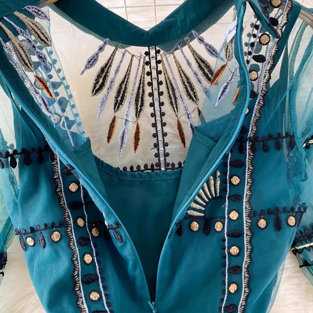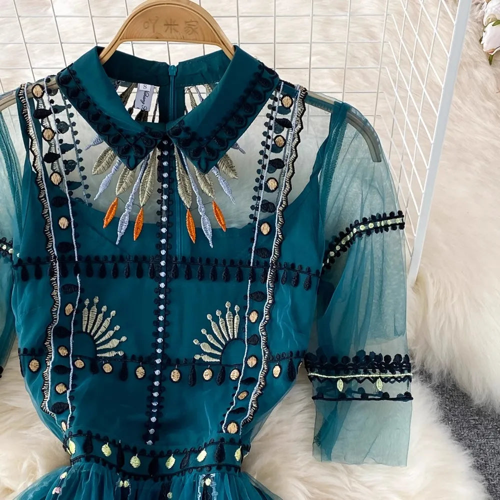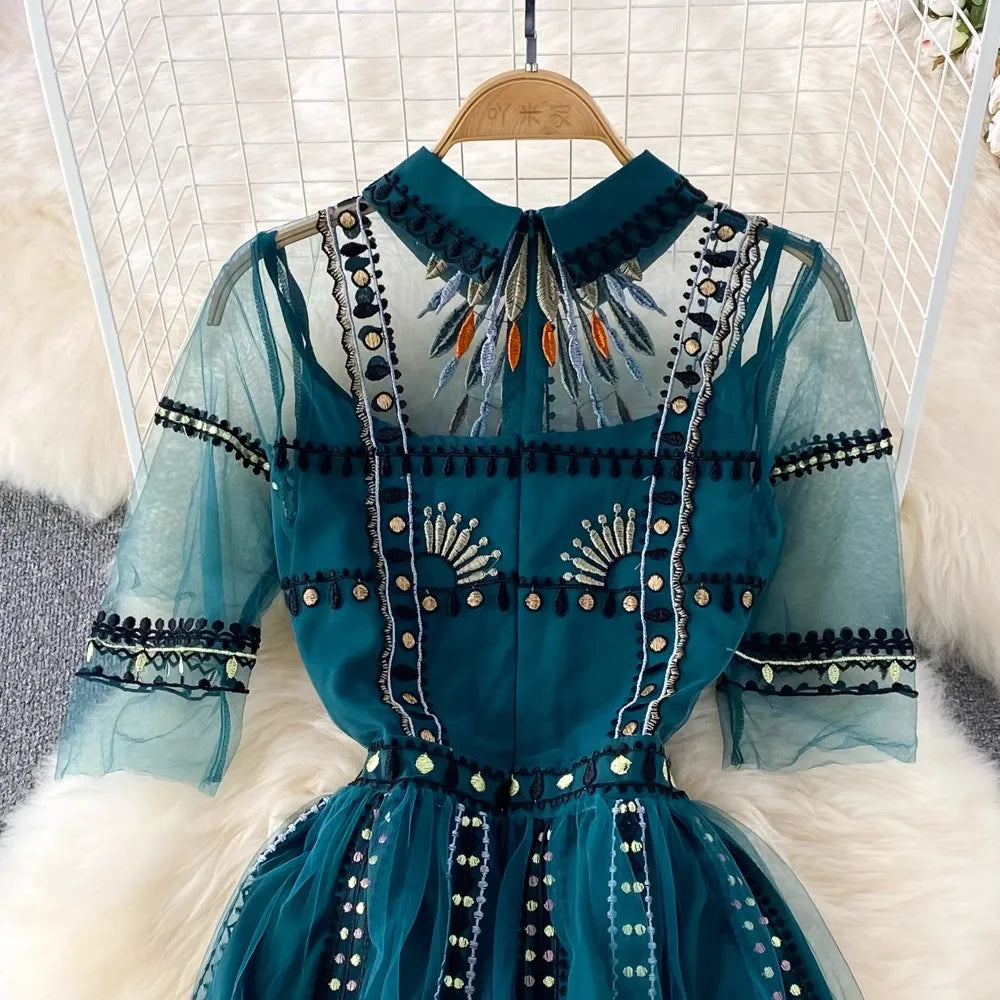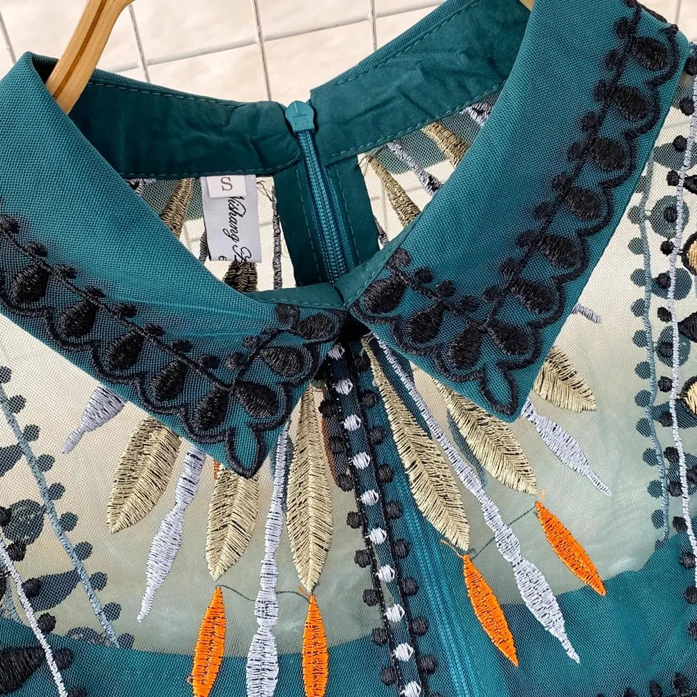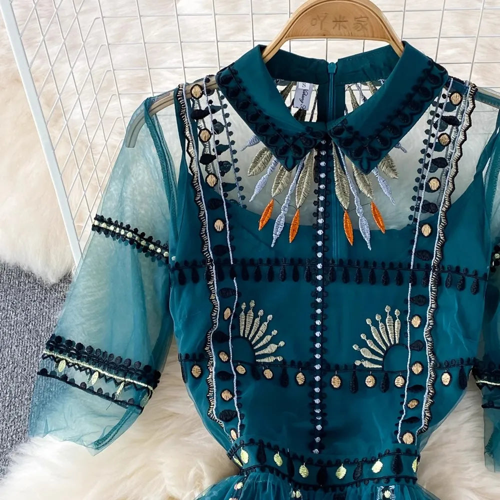 Luxury New Women Summer Embroidery Fashion Turn Down Collar Short Sleeve Party Casual Holiday Evening Runway Designer Dresses
