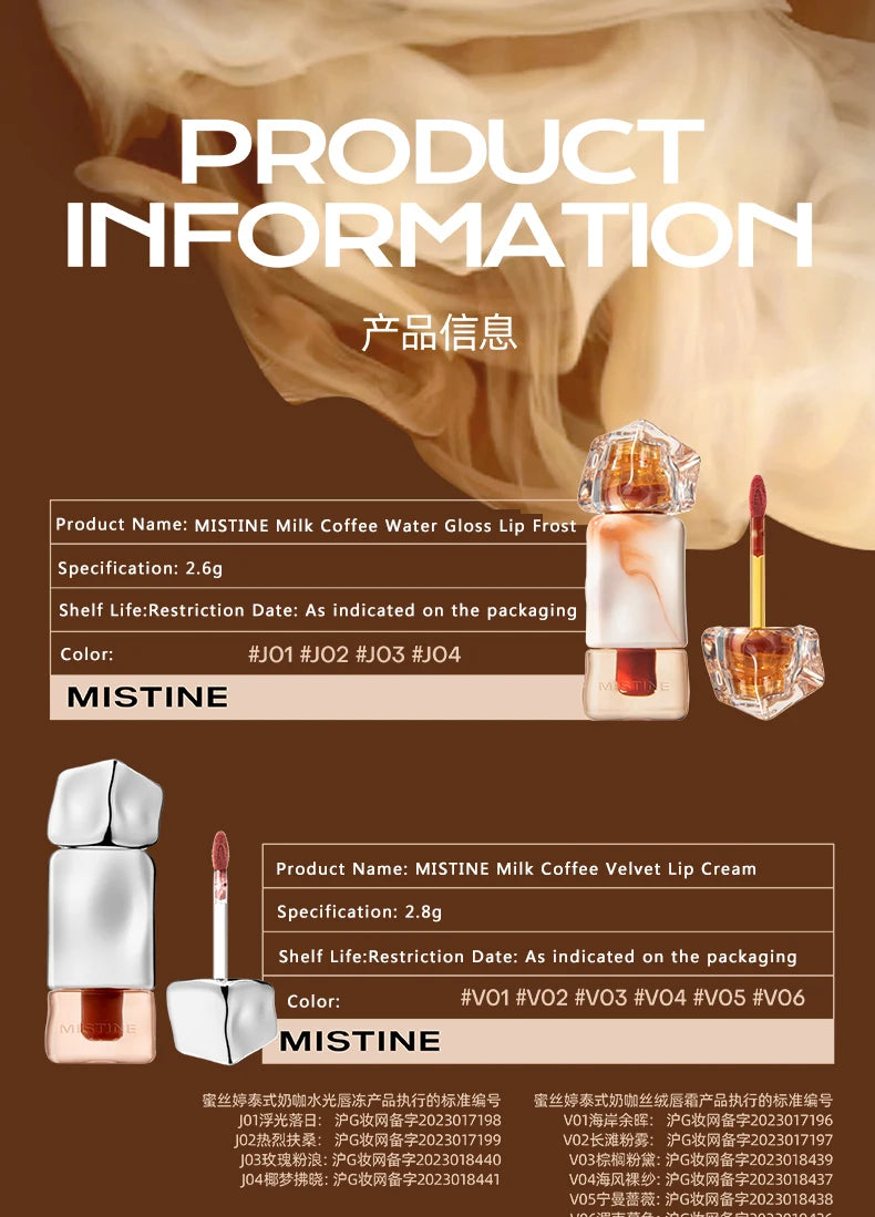 Mistine Lip Gloss Mirror-like Glossy Lip Tint Moisturizing Velvet Matte Long-lasting Liquid Lipstick