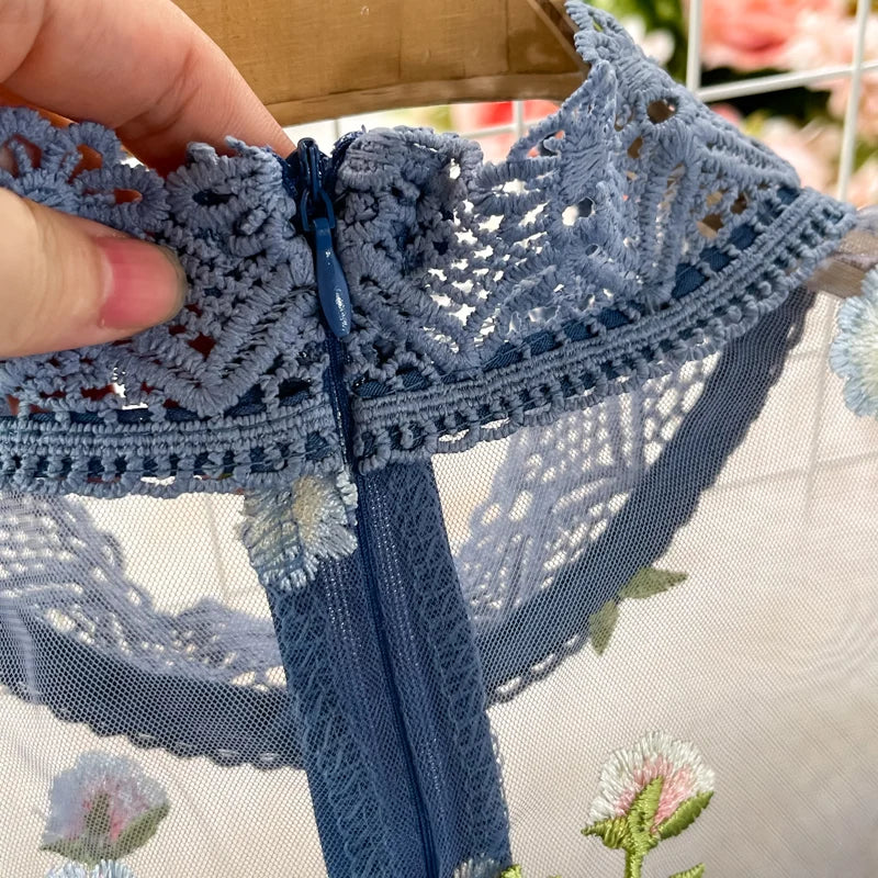 New Fashion Autumn Women O Neck Long Sleeve Mesh Embroidery Hook Flower Slim A-line Dress Elegant Female Party Clothes Vestidos