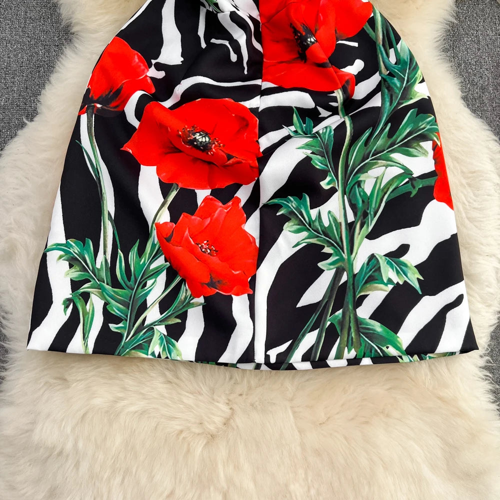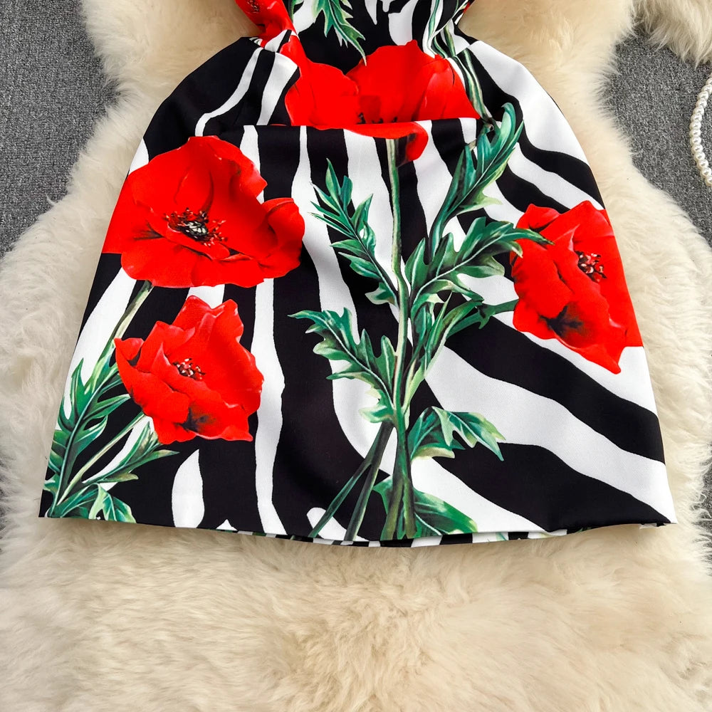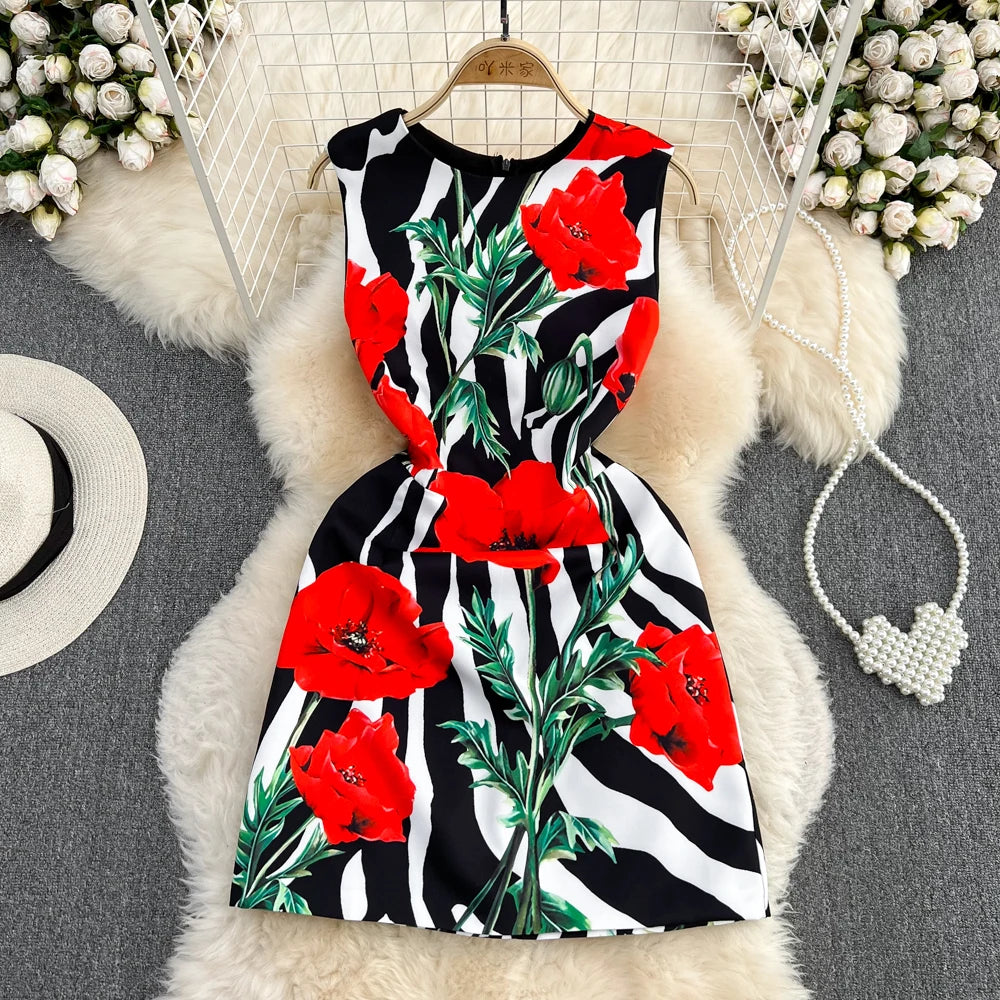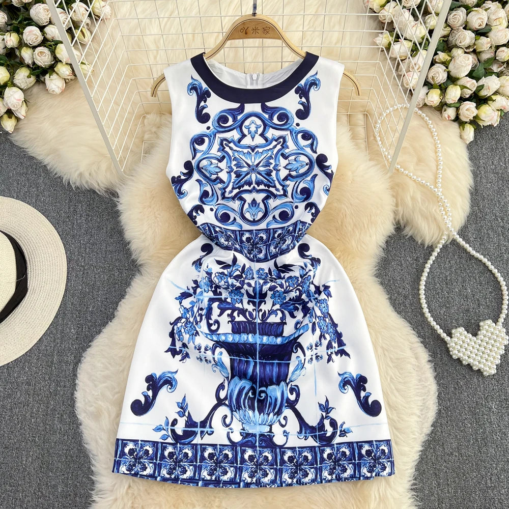 New In Dresses Summer Clothes For Women 2023 Fashion Elegant Vintage Print Party Dress Round Neck Sleeveless A Line Mini Dress