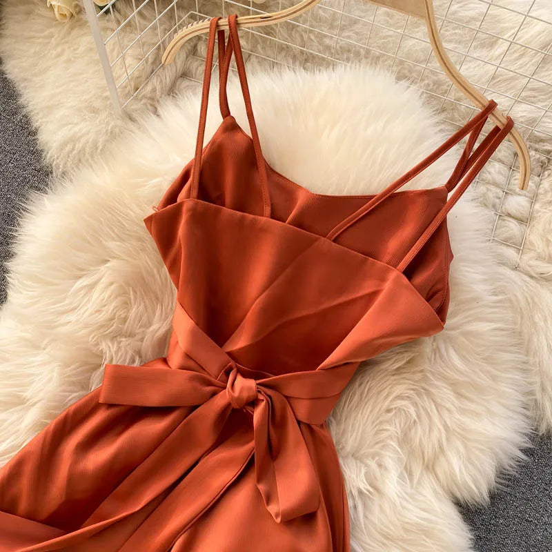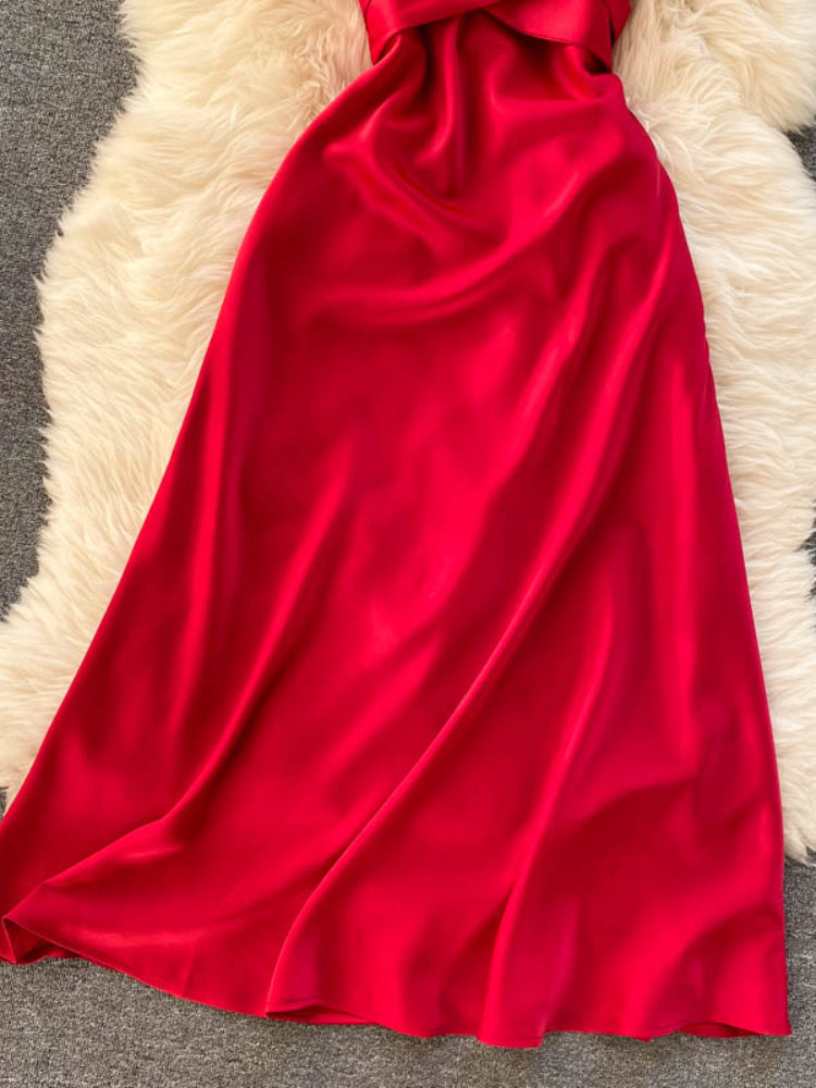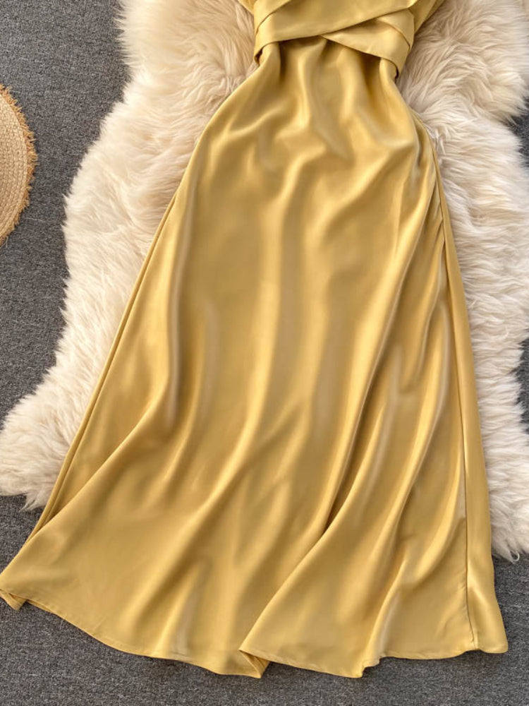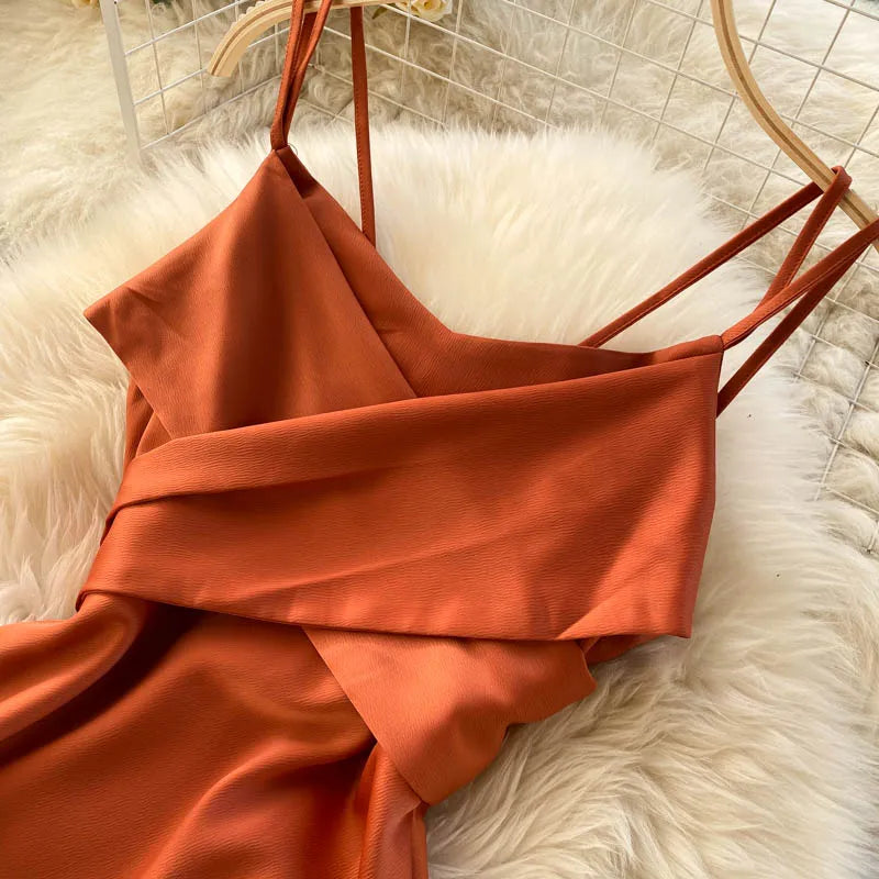 New Women Casual Long Dress Summer Cross V-neck Sexy Off-shoulder Dresses Ladies Sleeveless Slim Satin Long Robe Vestidos