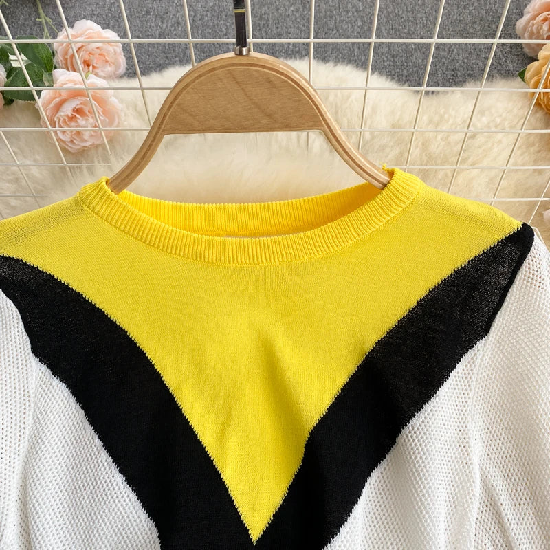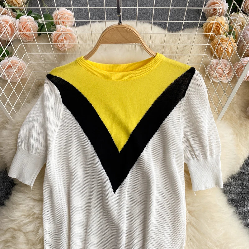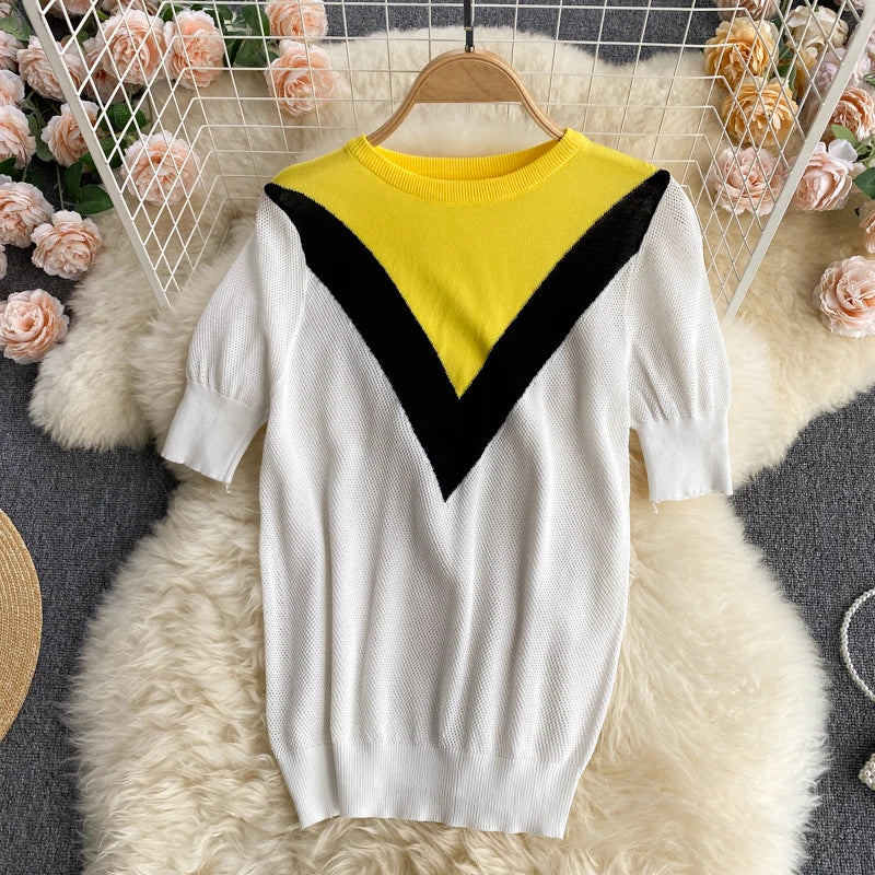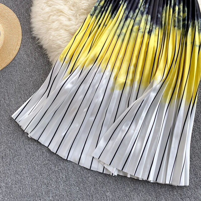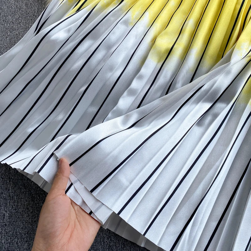 Pinkou Women Elegant Print Blouse Suit Short Sleeve Knitted Shirt Elastic Waist Midi Pleated Skirt Office Summer Chic Set TZ22