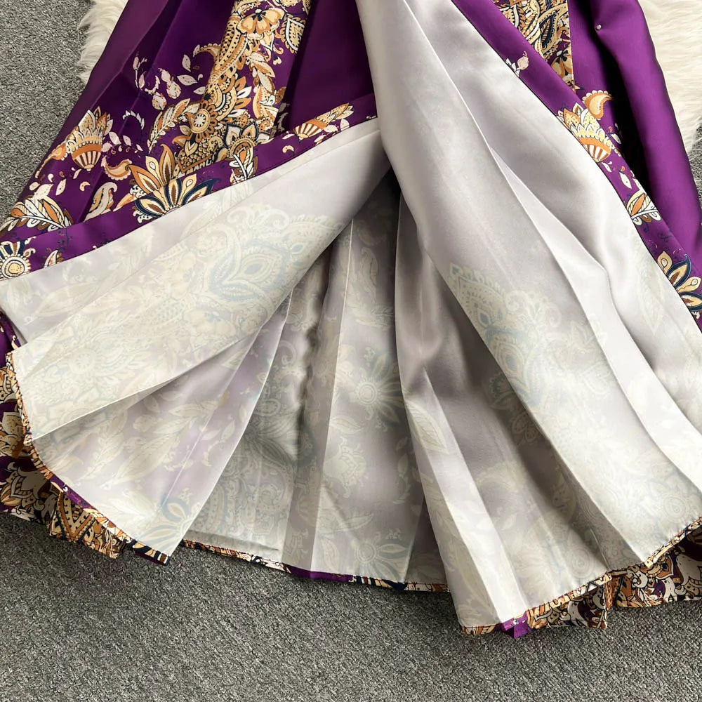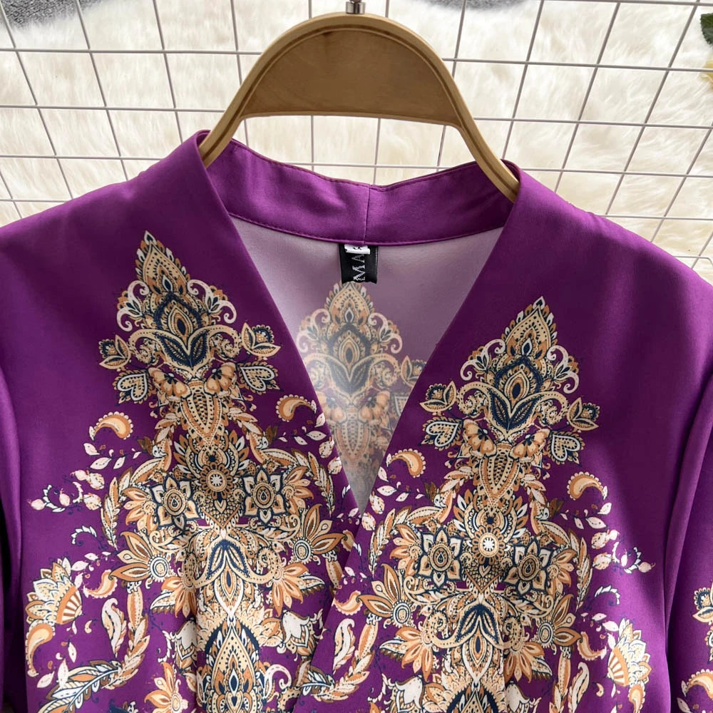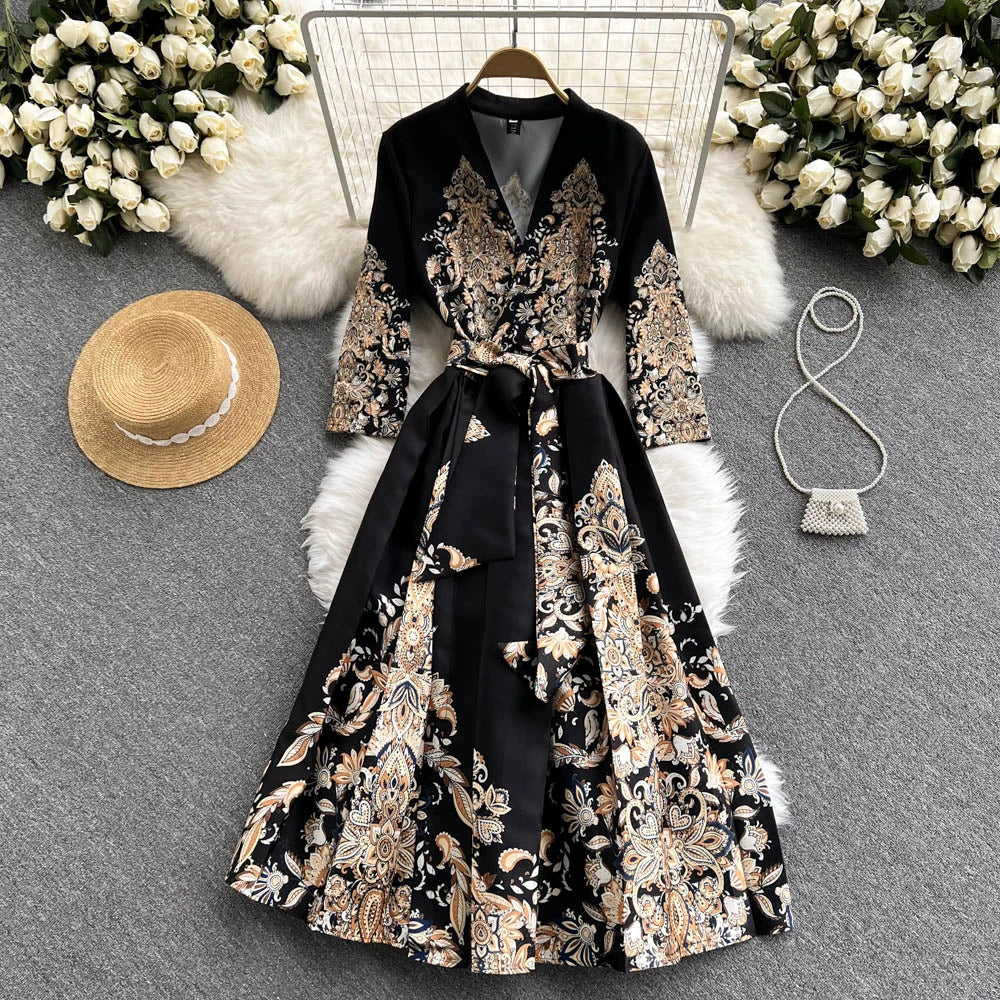 Pinkou Women Elegant Print Maxi Dress Cross V Neck Bow Tie Sashes Three Quarter Sleeve Female Chic Wrap Dresses Vestido QA815
