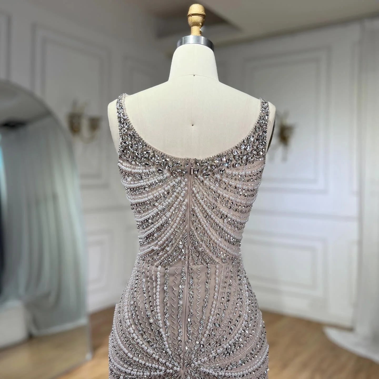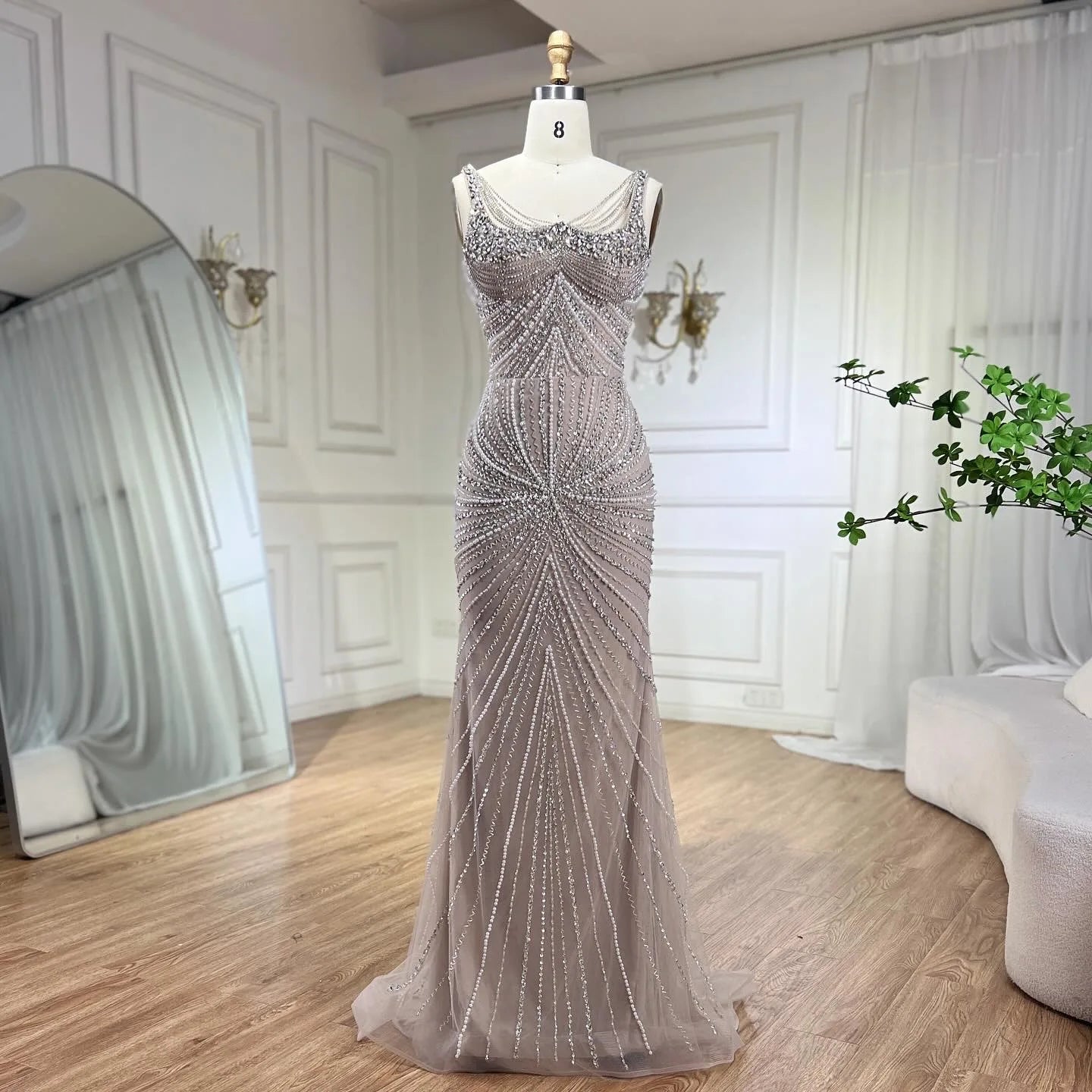 SERENE HILL 2024 Arabic Nude Spaghetti Strap Mermaid Luxury Beaded Evening Dresses Gowns For Women Wedding Party GLA72356