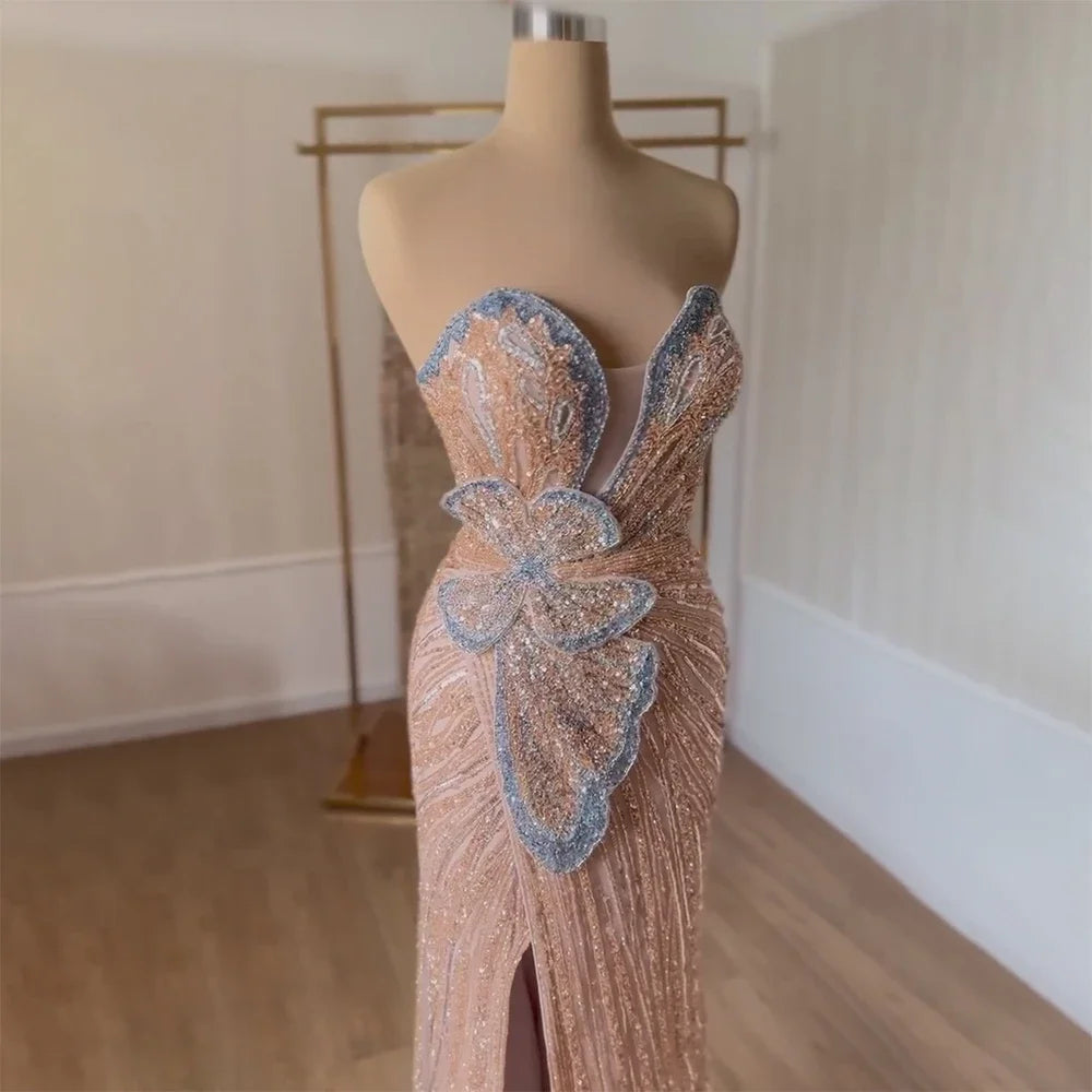 Serene Hill 2024 Saudi Arabic Pink Strapless Mermaid Evening Dress with High Split for Formal Occasion BLA72480