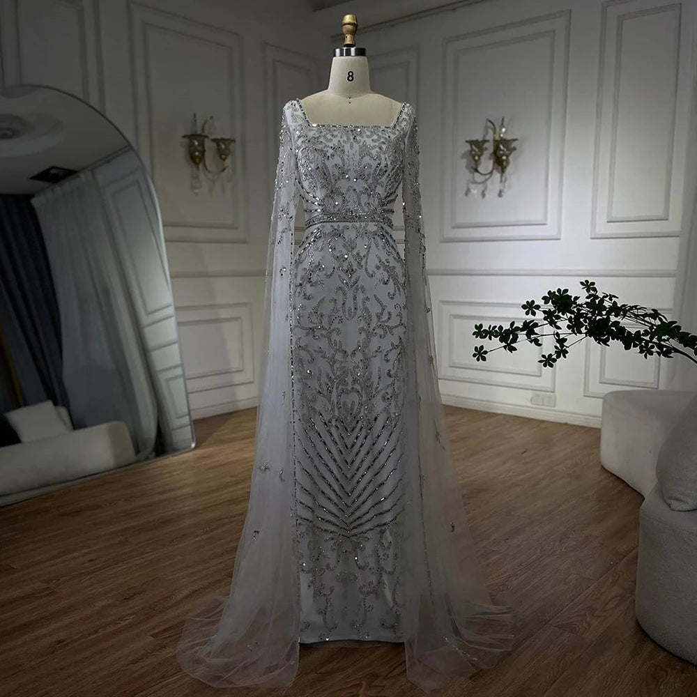 Serene Hill 2024 turquoise with Beaded Cape Sleeves Design Mermaid Long Evening Dresses Gowns for Women's Wedding Party BLA72400