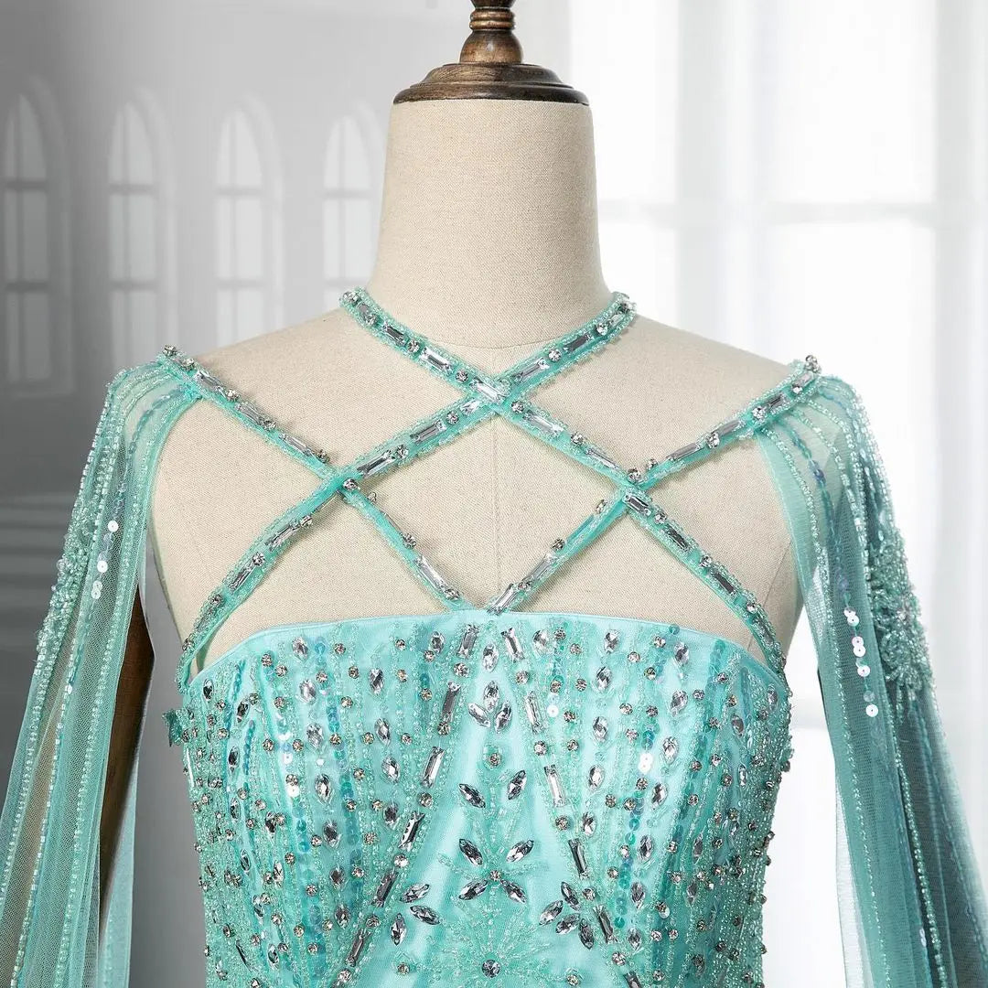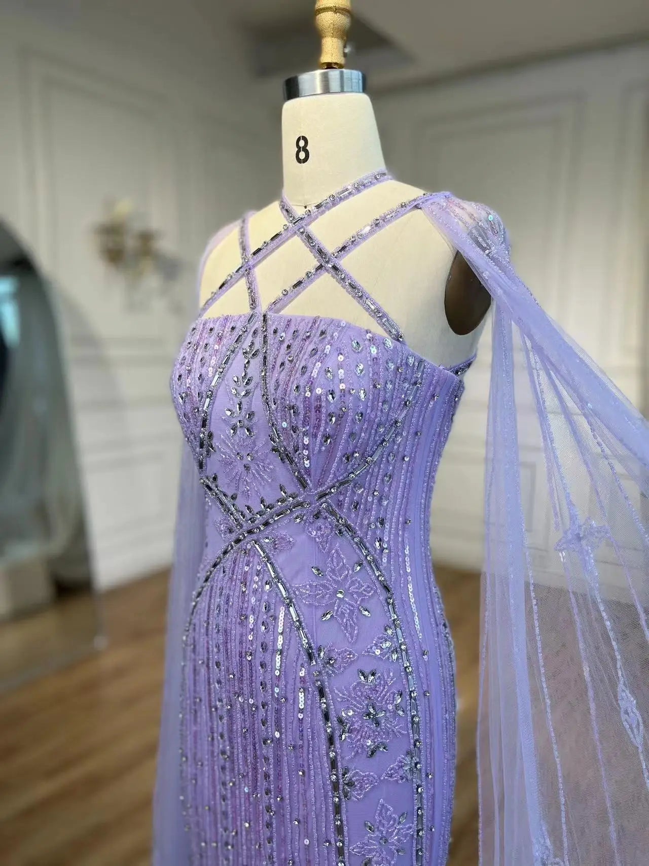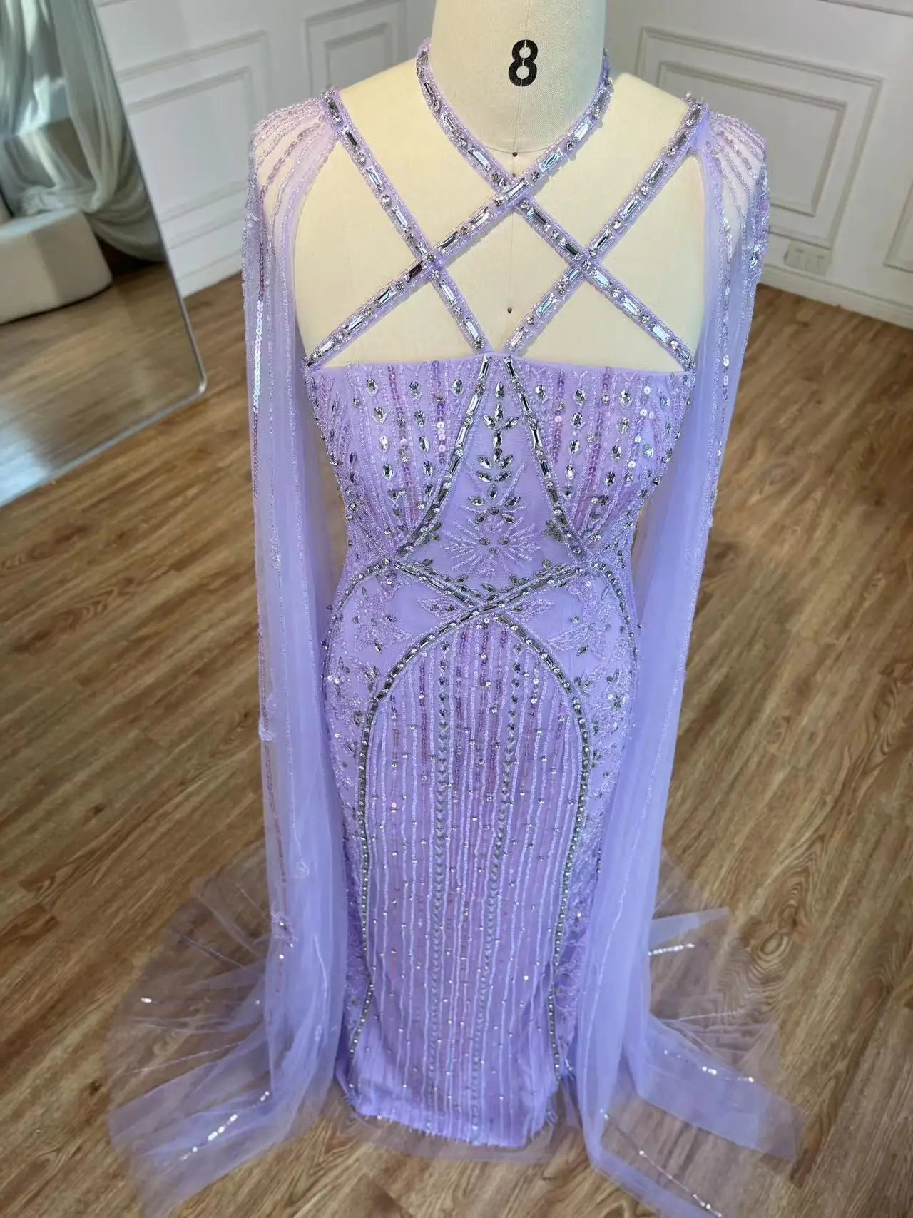 SERENE HILL Arabic Caramel Mermaid Elegant Cape Sleeves Beaded Luxury Evening Dresses 2024 Formal Gown For Women Party GLA71905A