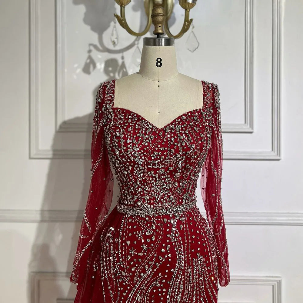 Serene Hill Arabic Pink Elegant Mermaid Overskirt Luxury Beaded Long Evening Dresses Gowns For Formal Occasion 2024 LA72441