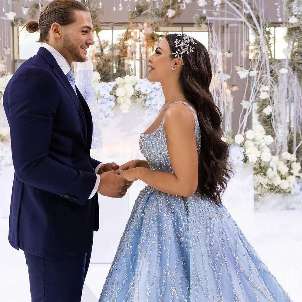 Serene Hill Blue Luxury High end Wedding Dresses 2024 Beaded Sleeveless Lace Up Bridal Dress HM67331 Custom Made