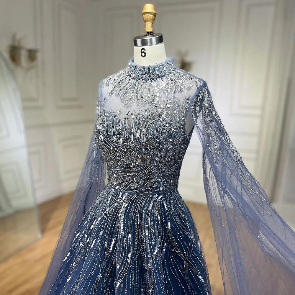 Serene Hill Caramel Luxury Evening Dresses with Cape Sleeves A-Line Beaded Lace Gown For Women's Wedding Party 2024 LA72386