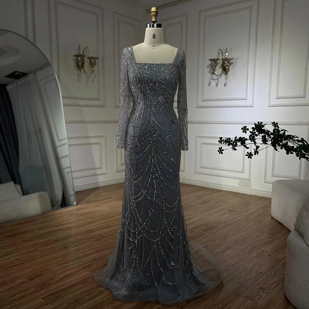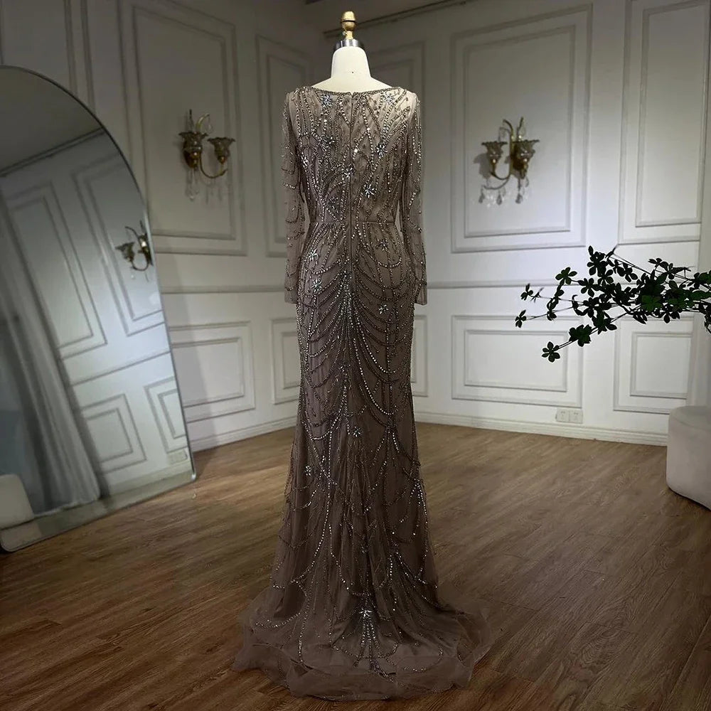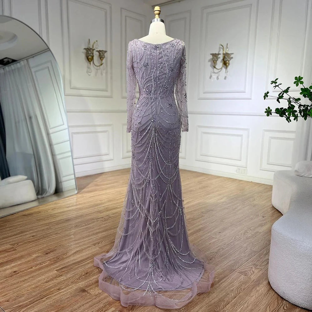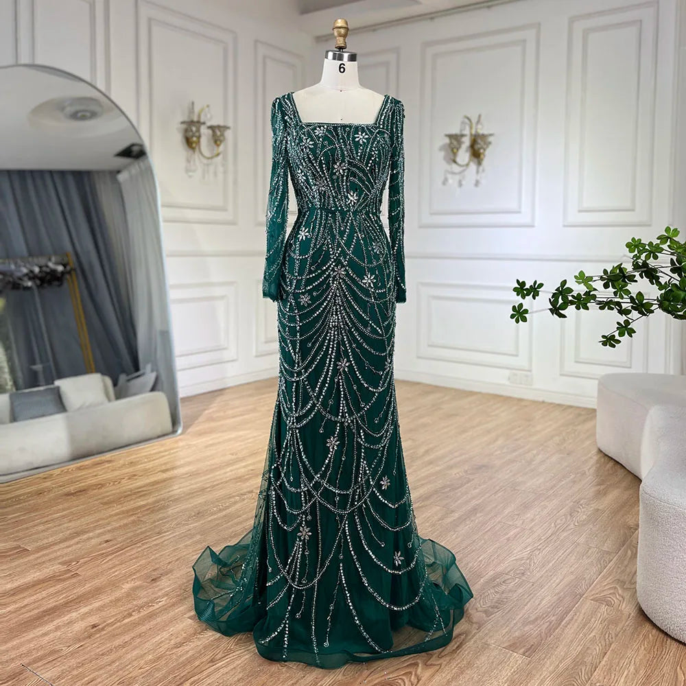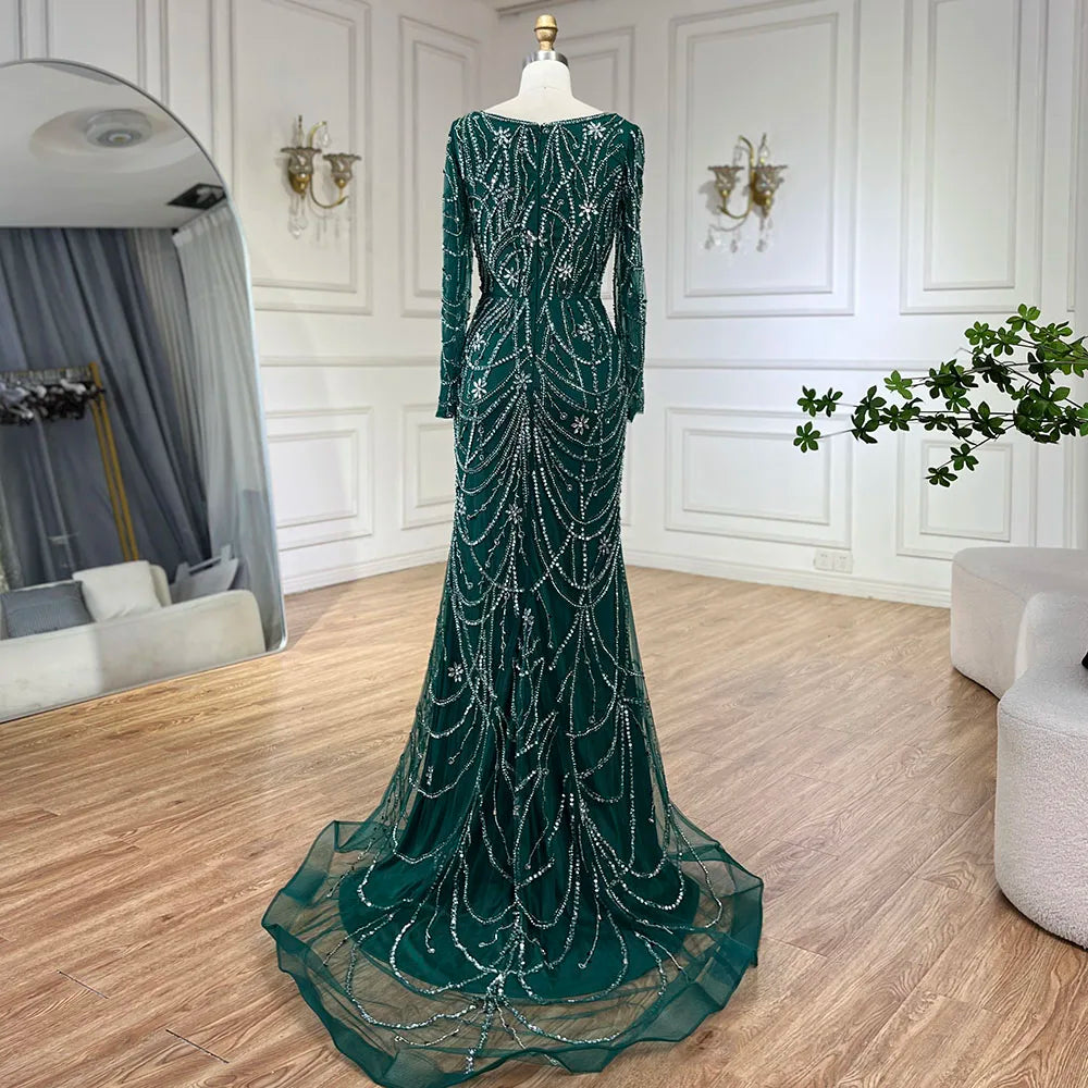 Serene Hill Luxury Dubai Green Mermaid Elegant Crystal Beaded Arabic Evening Dresses Gowns For Women Wedding Party 2023 BLA72242