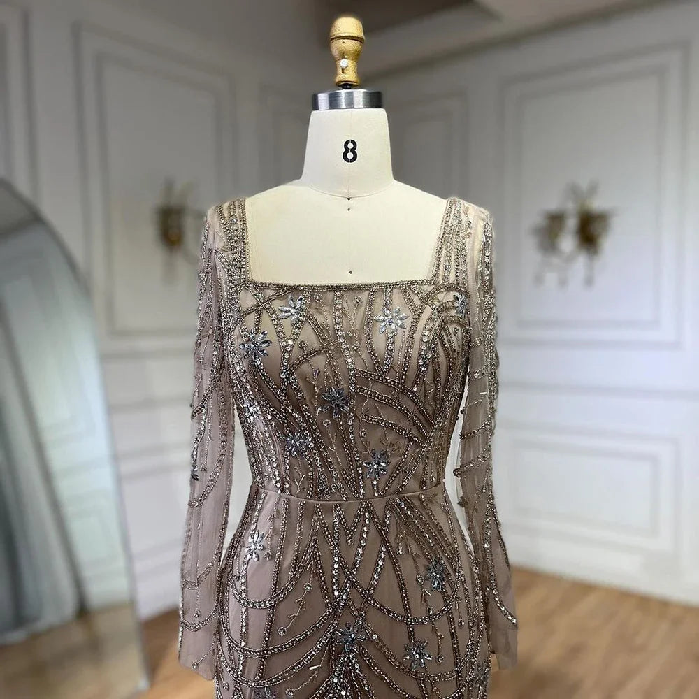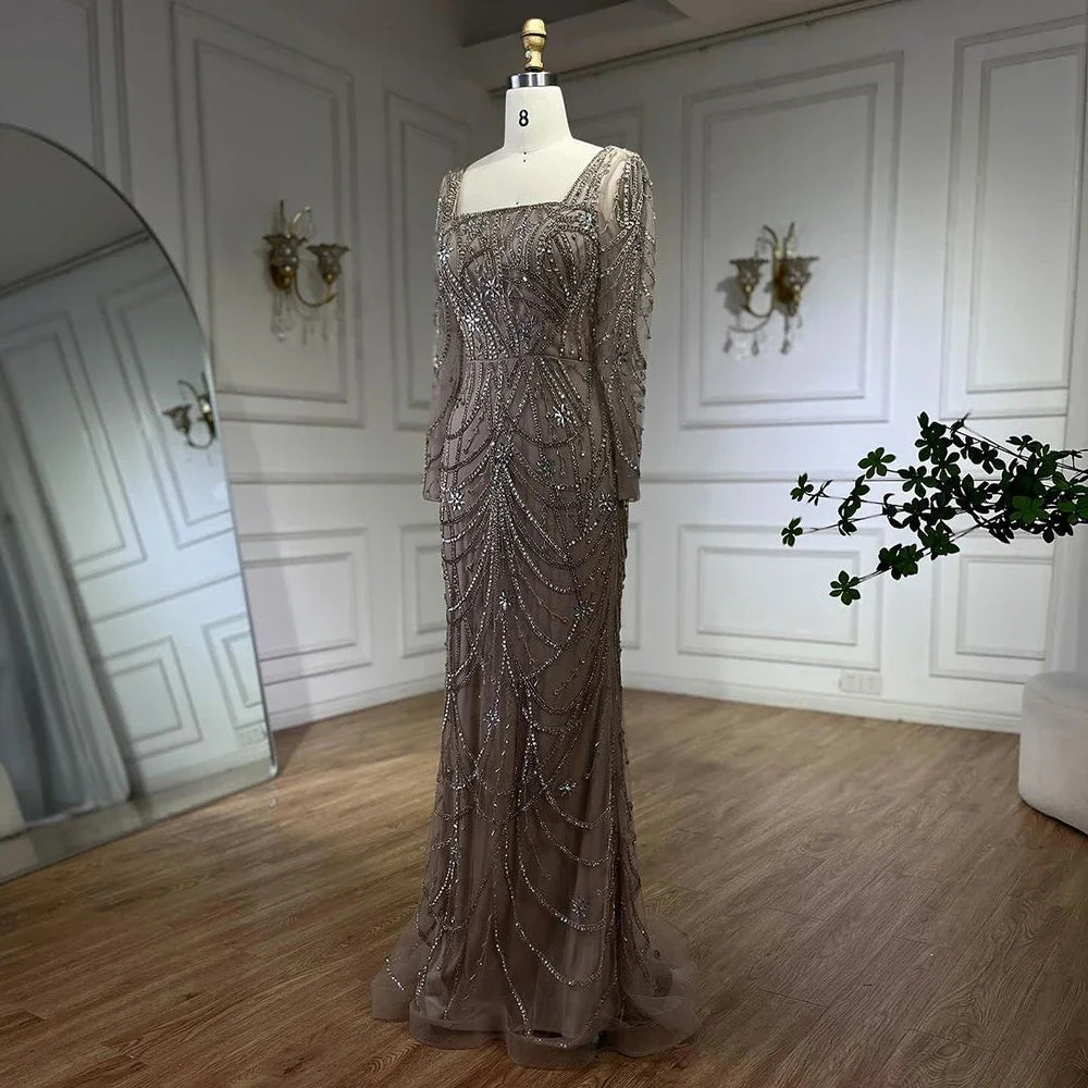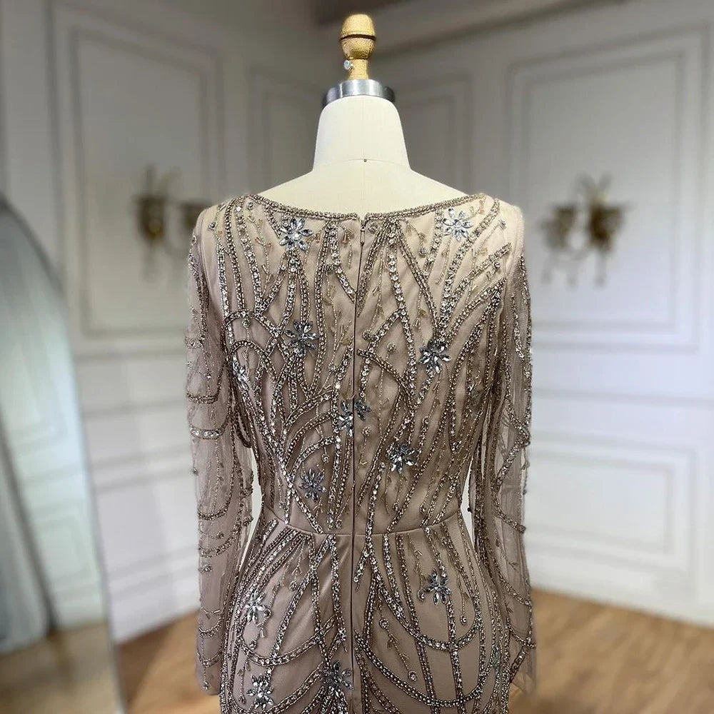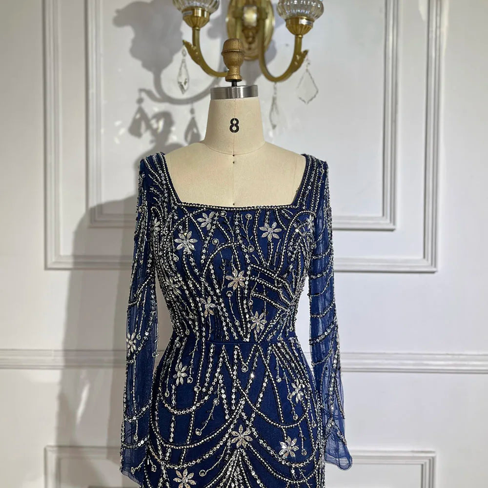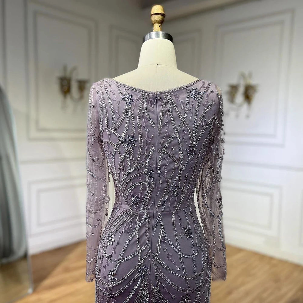 Serene Hill Luxury Dubai Green Mermaid Elegant Crystal Beaded Arabic Evening Dresses Gowns For Women Wedding Party 2023 BLA72242