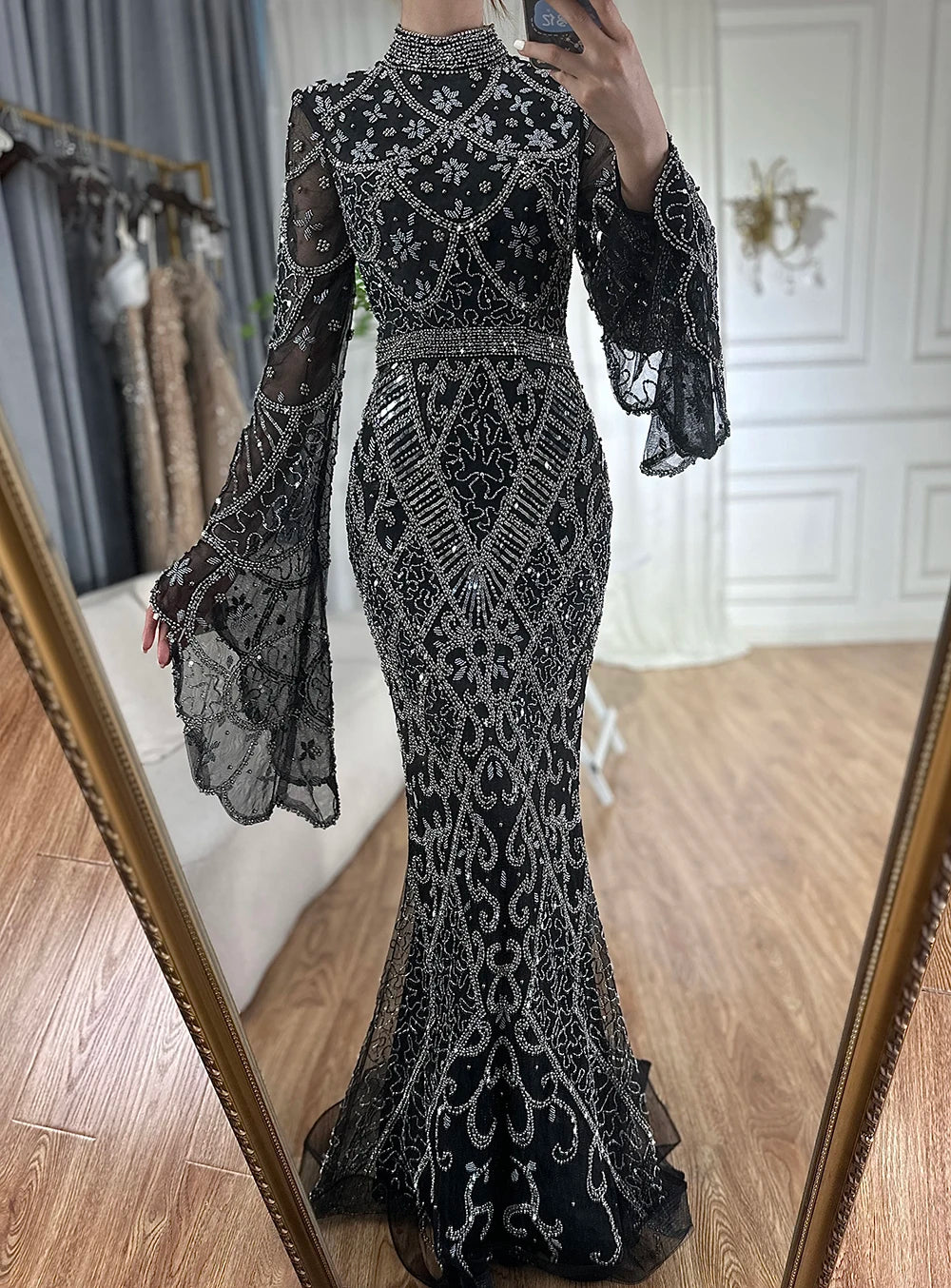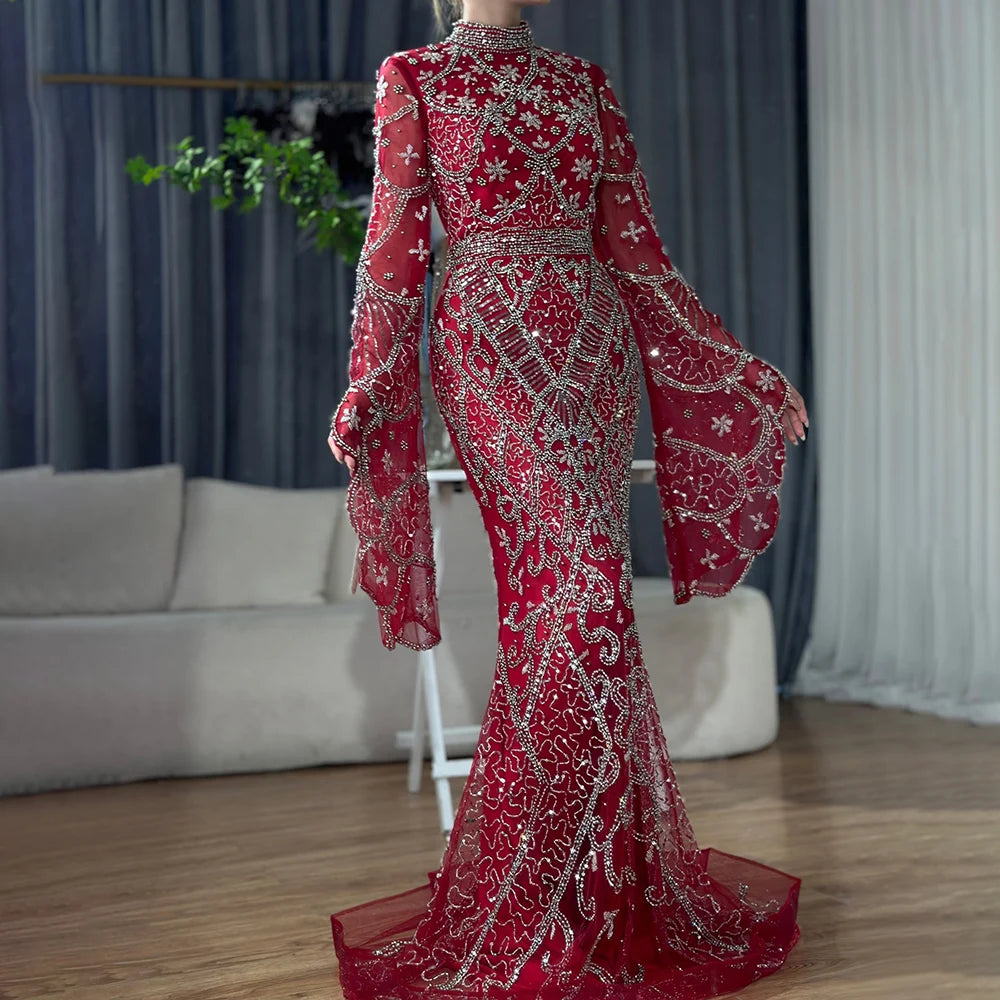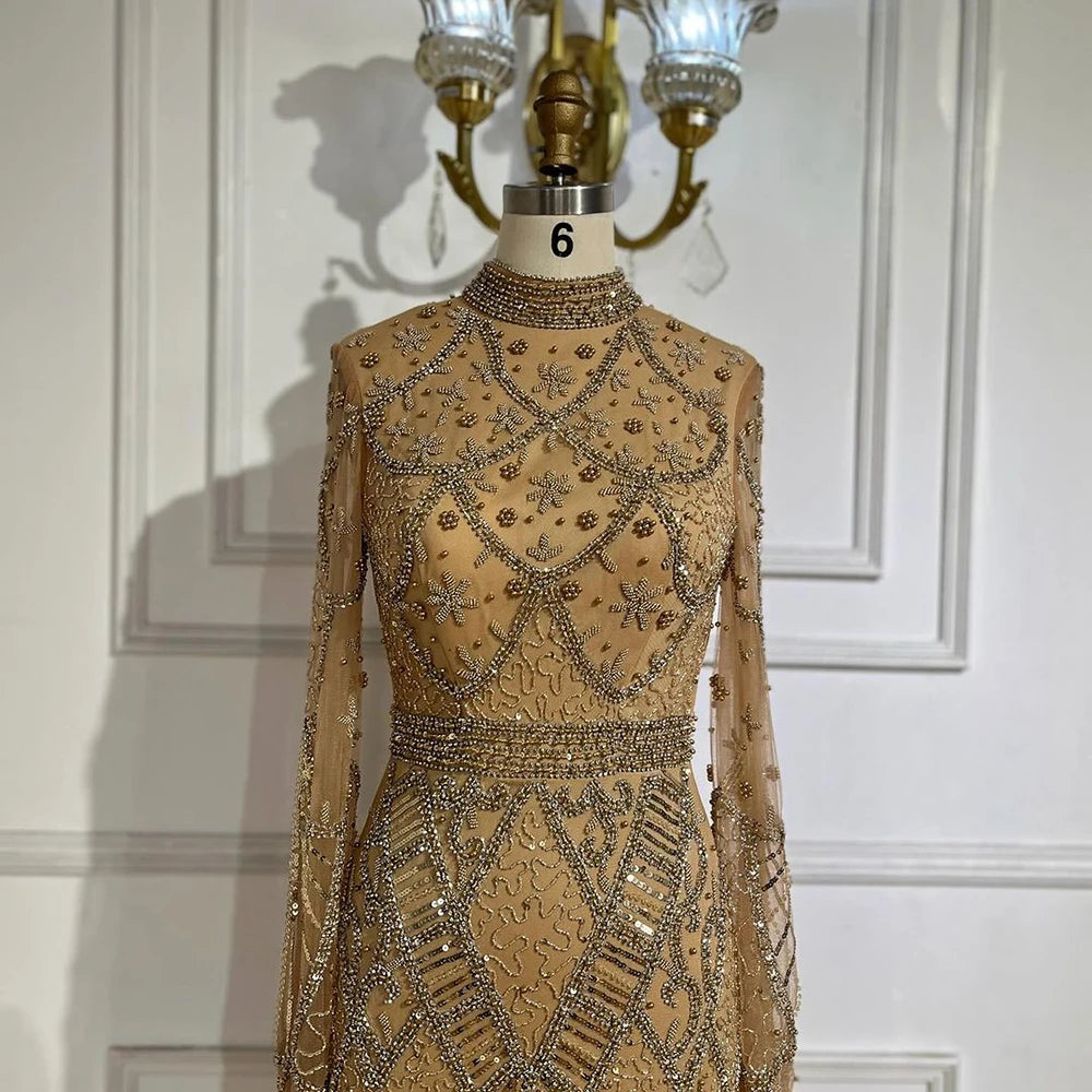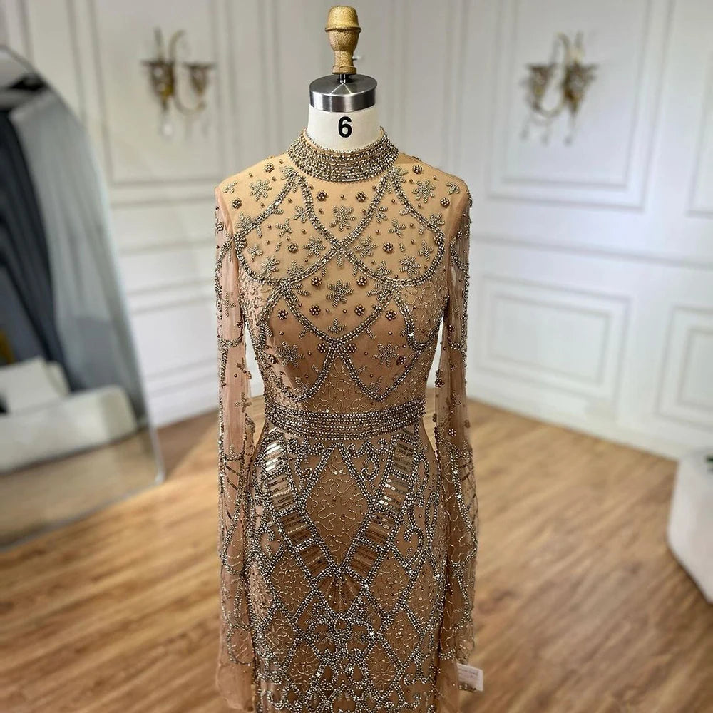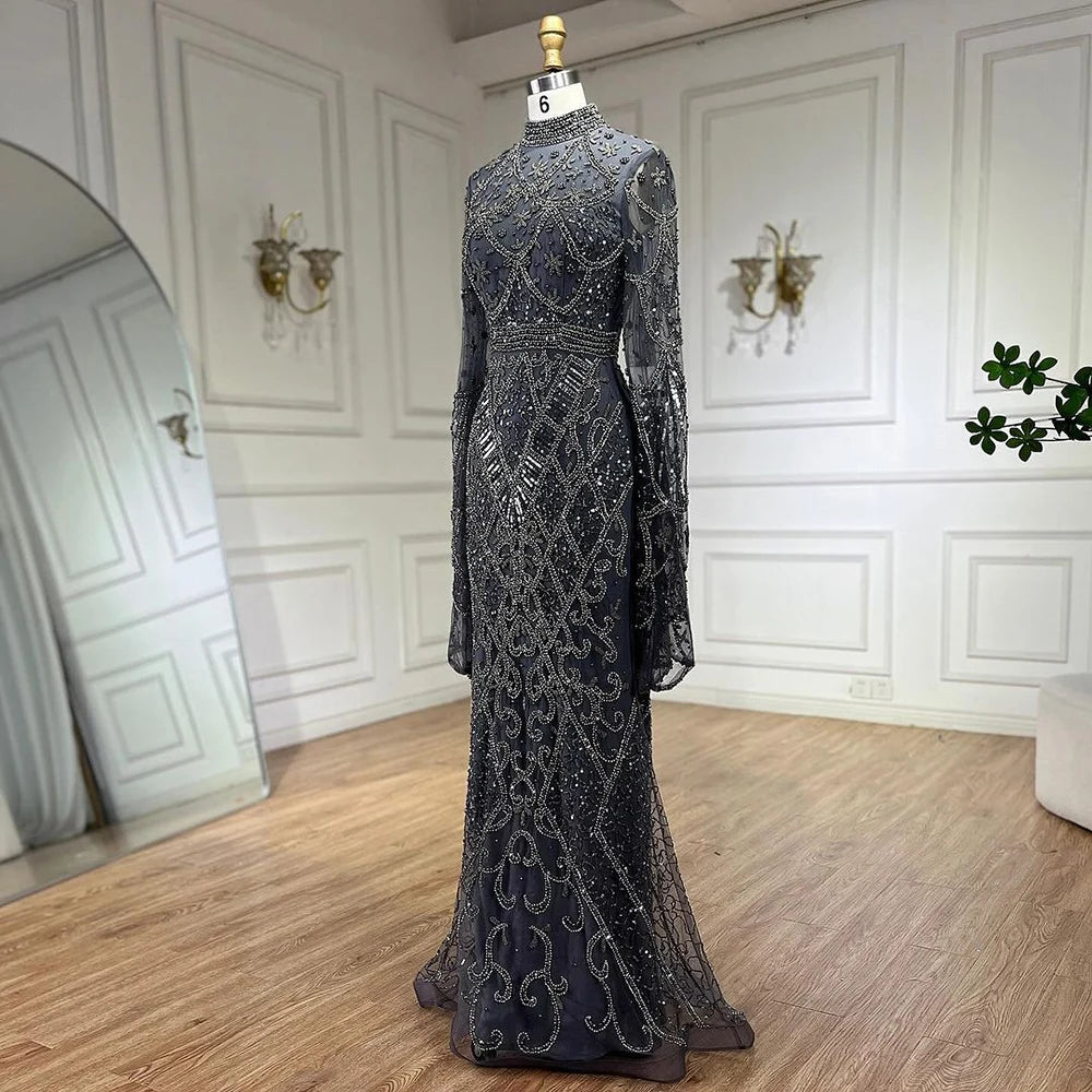 Serene Hill Muslim Grey Mermaid Elegant Nude Cape Sleeve Beaded Luxury Dubai Long Evening Dress 2024 Women's Party LA72316