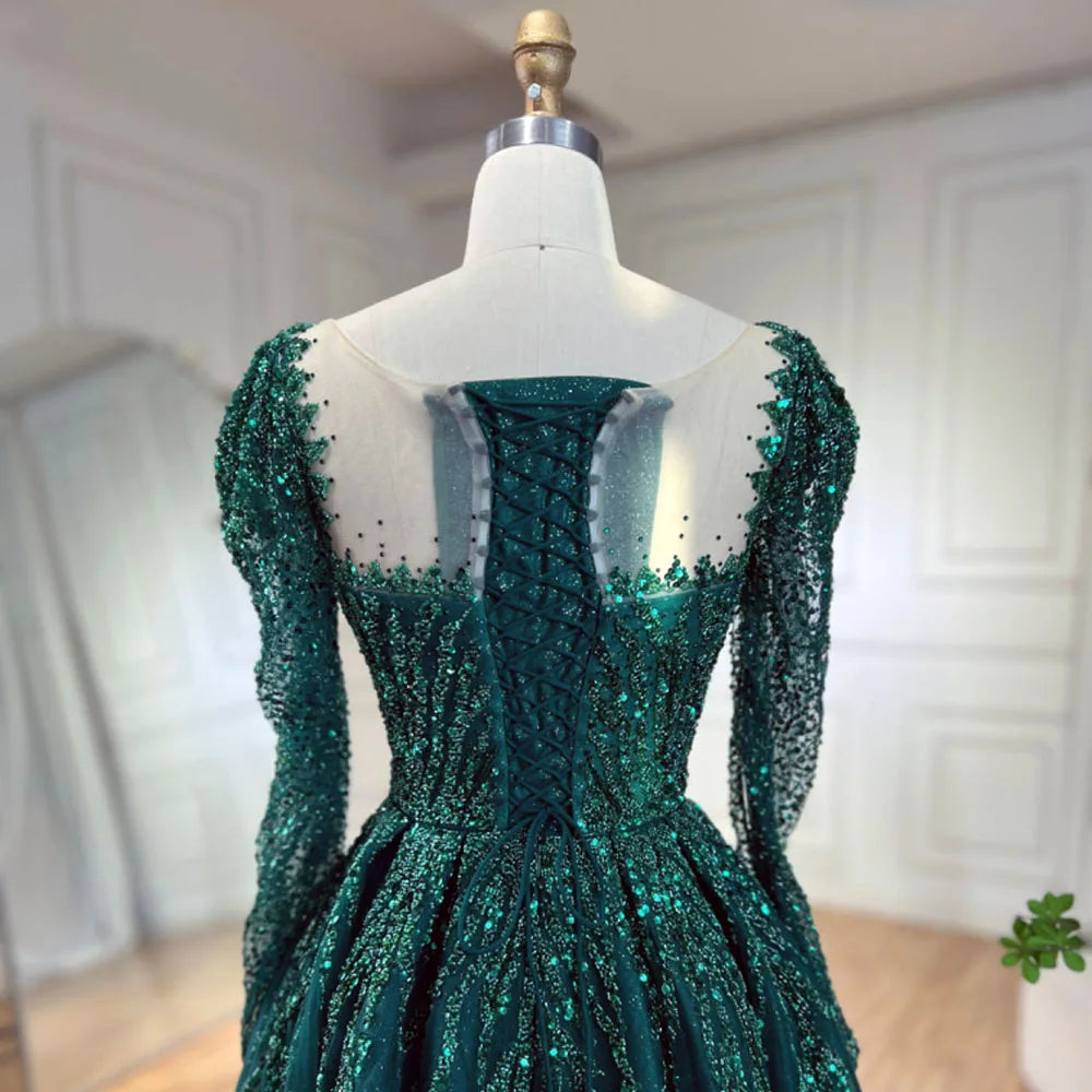 Serene Hill Muslim Pink A Line Beaded Luxury Dubai Long Evening Dresses Gowns 2024 For Woman Wedding Party LA71915