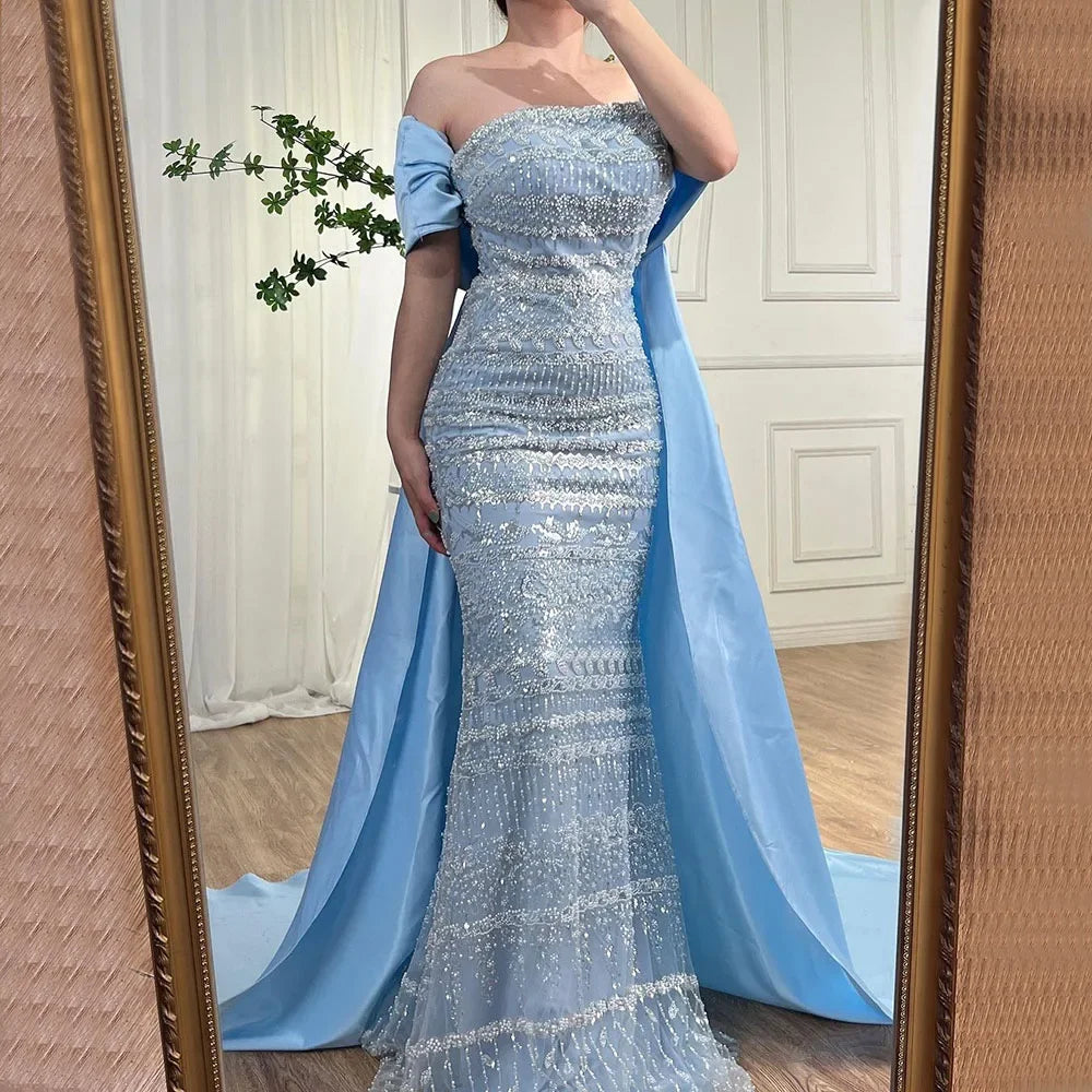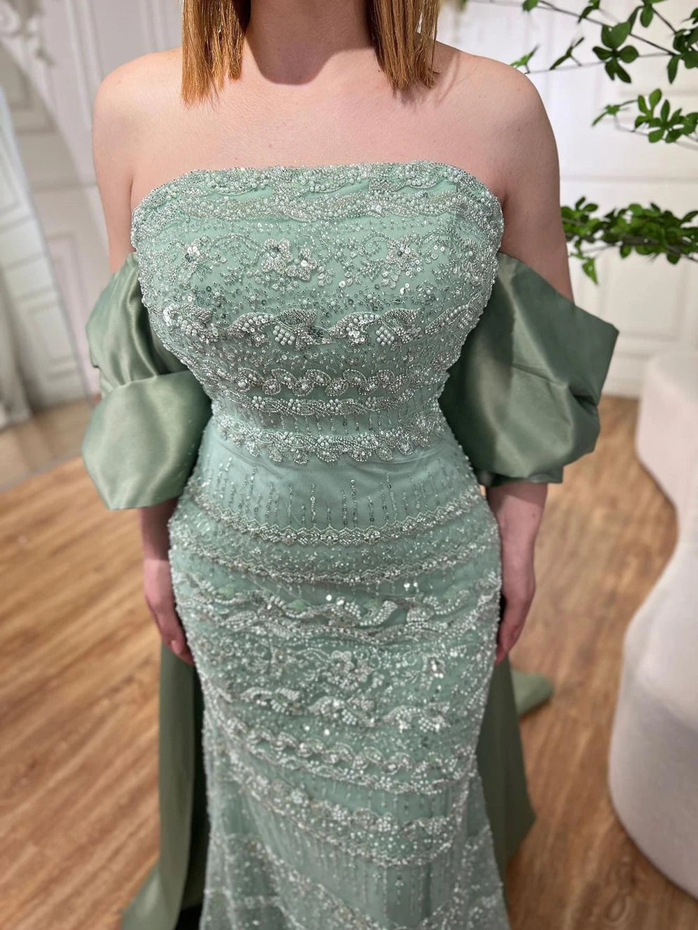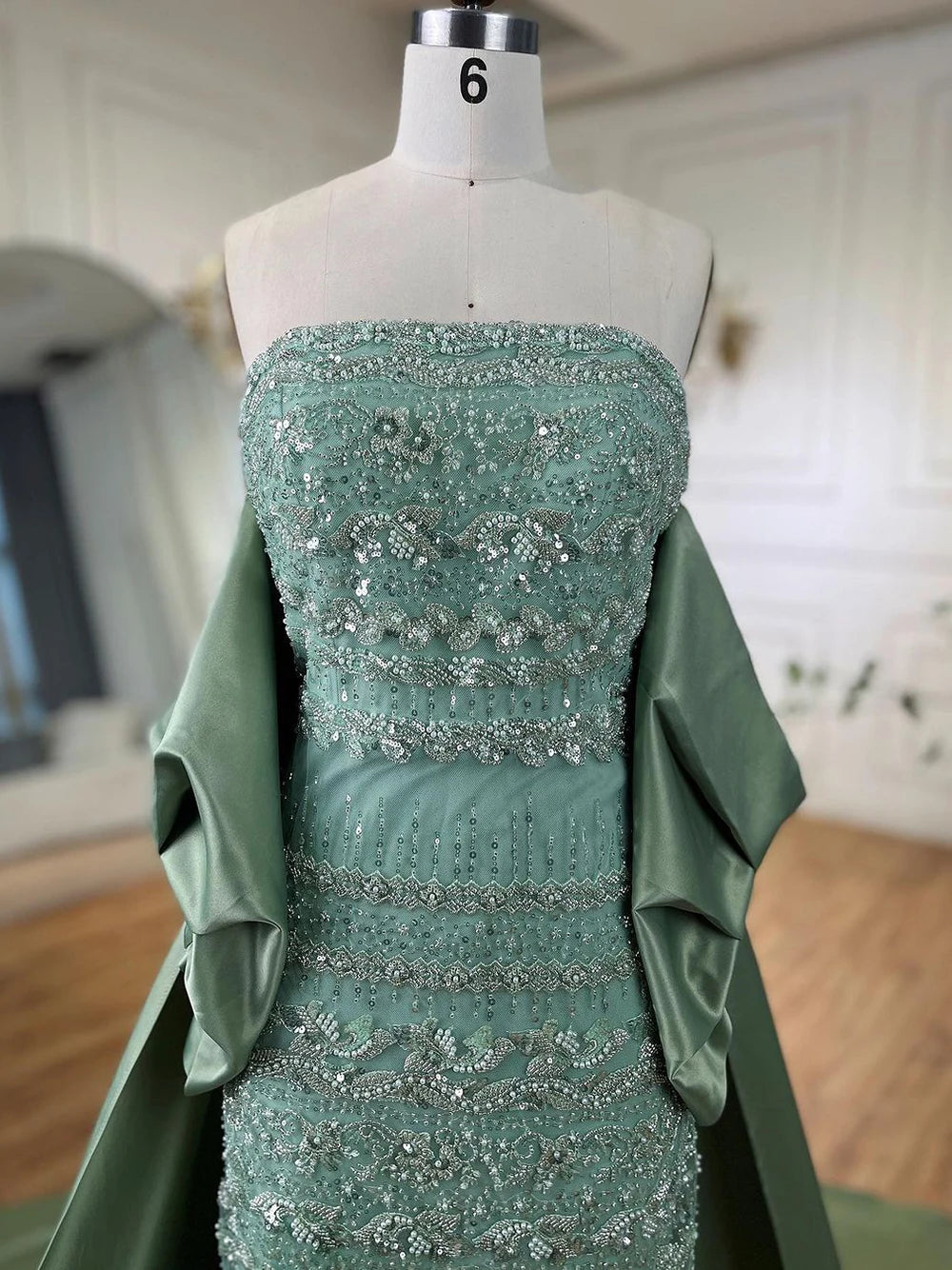 Serene Hill-Sage Green Mermaid Evening Dresses for Women, Strapless, Elegant, Sexy, Beaded, Wedding Party, 2023, BLA72126