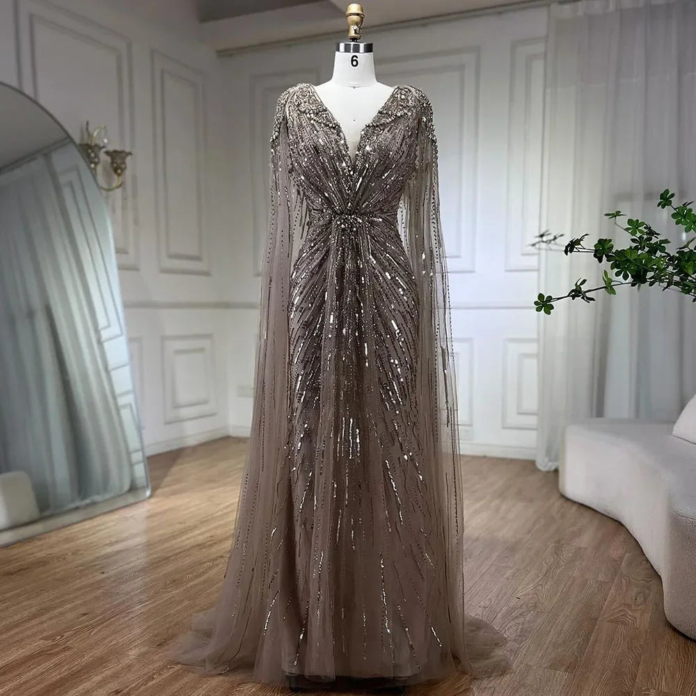 Serene Hill Turquoise Mermaid Evening Dresses Gowns 2024 with Beaded Cape Sleeves Design for Women's Wedding Party BLA72168A