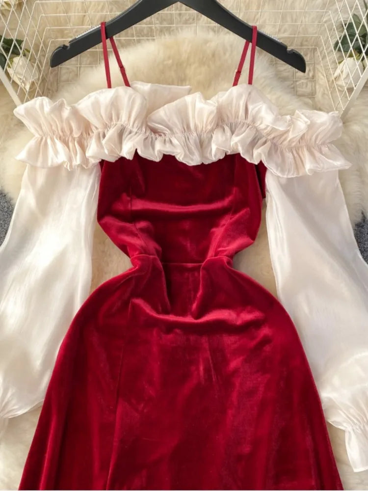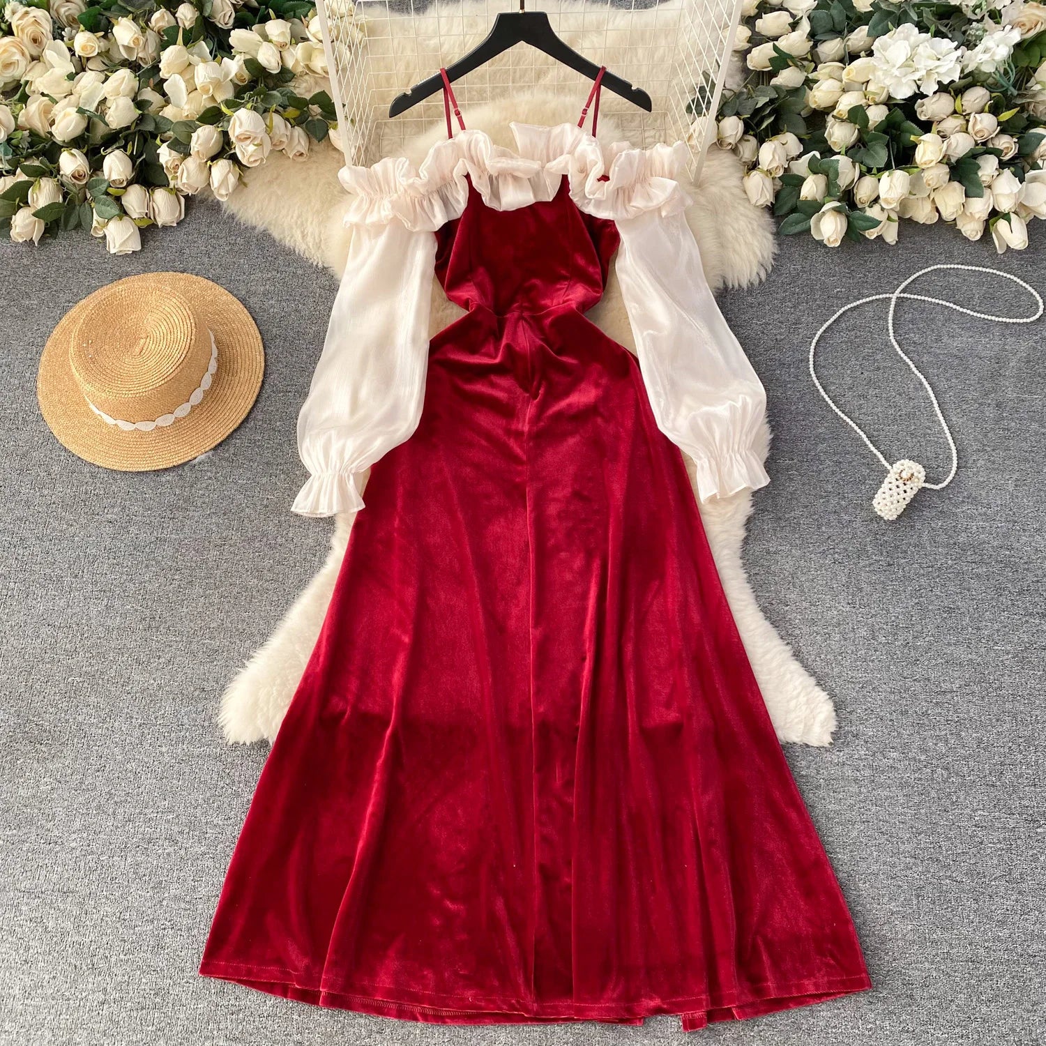 Sexy Bodycon Off Shoulder Party Dress Women Ruffles Velvet Patchwork Elegant Lady Fashion Prom Robe A-Line Vestidos Mujers New