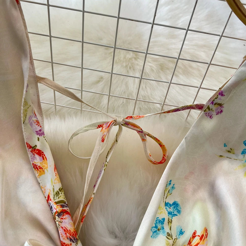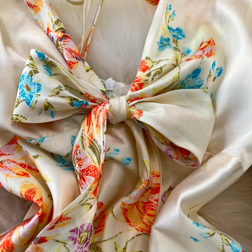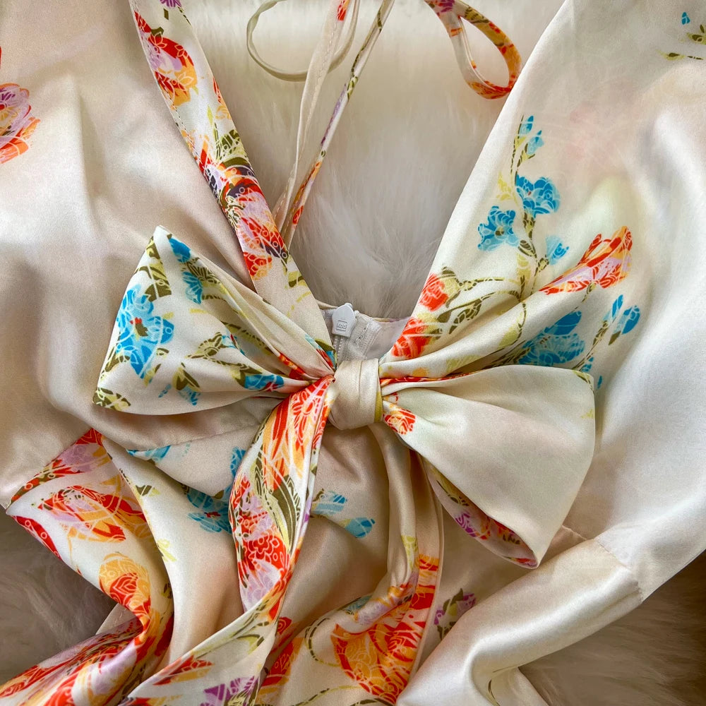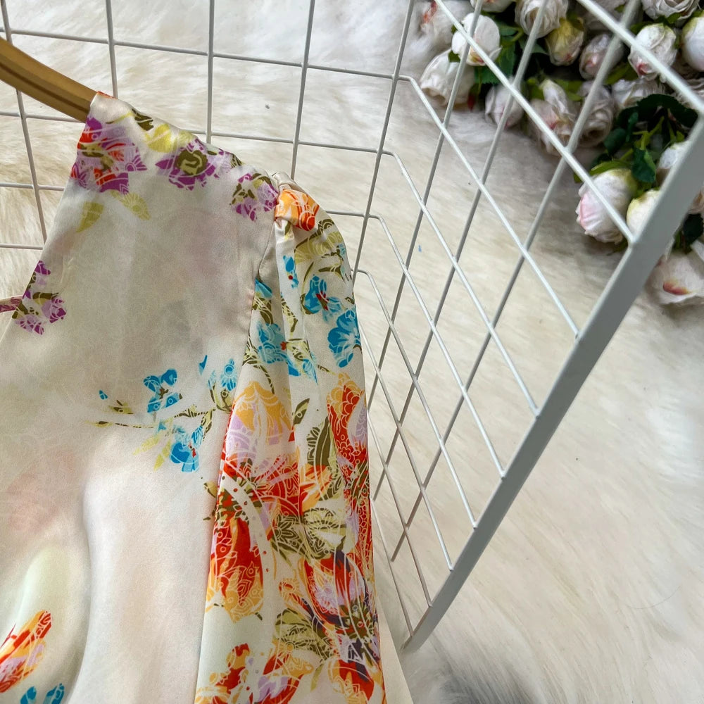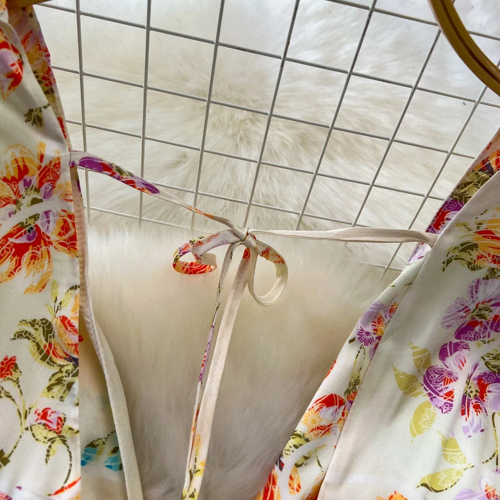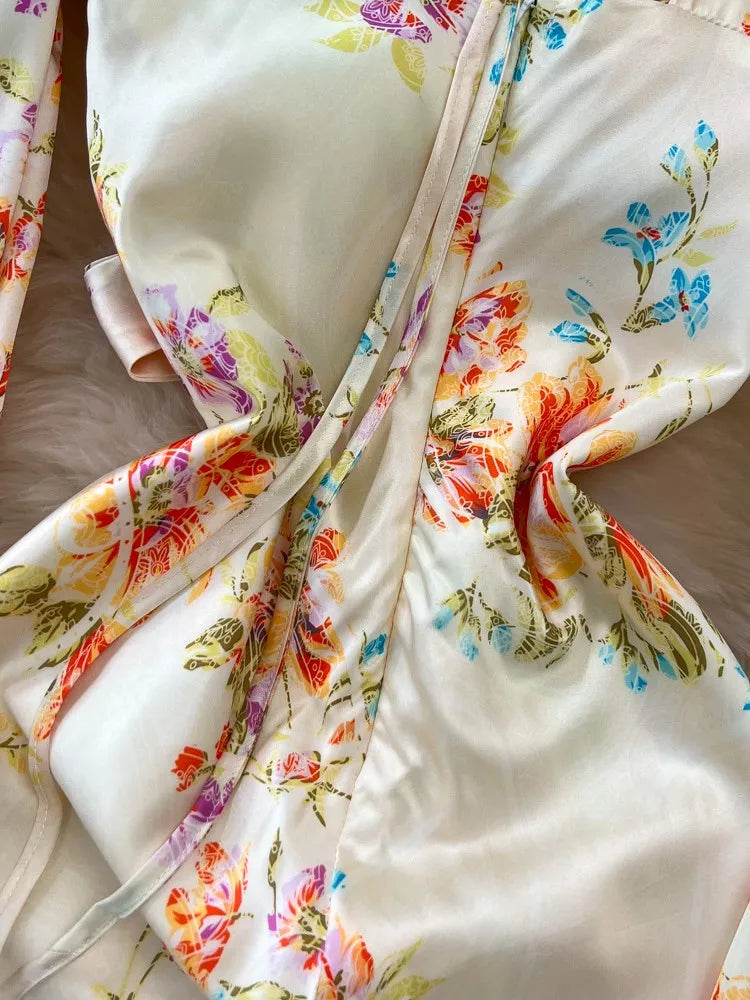 Sexy Bodycon Satin Floral Long Dresses for Women Lantern Sleeve V-Neck Slim Mermaid Evening Party Dress Prom Robe New Vestidos