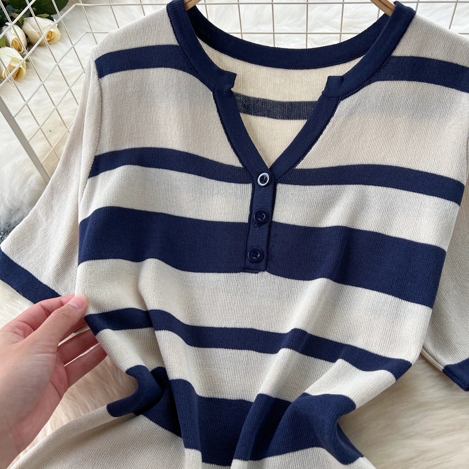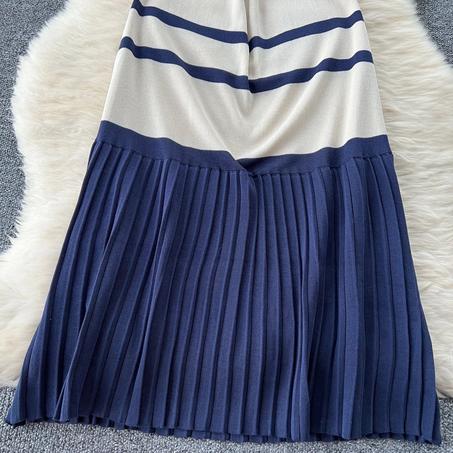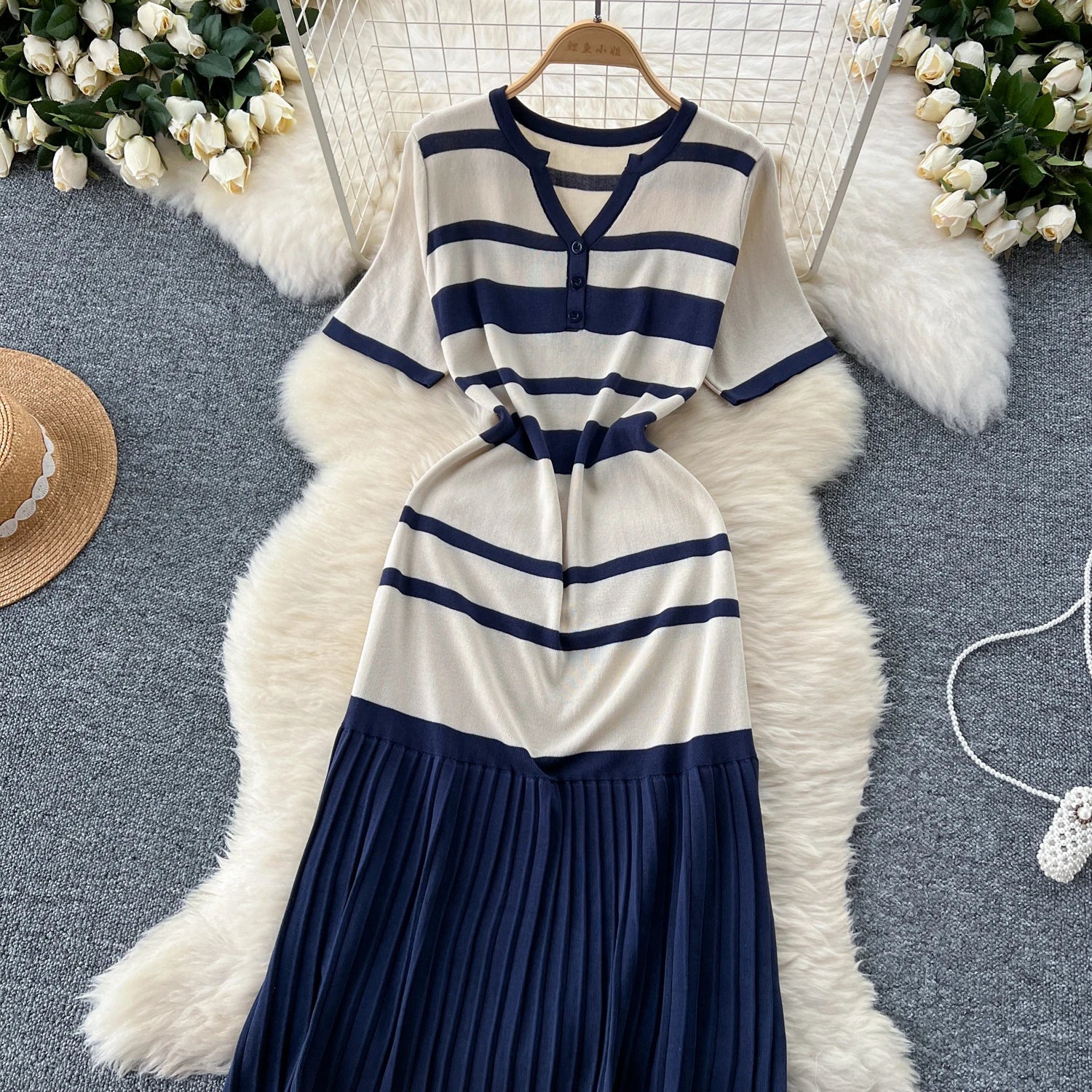 Sexy Chic short sleeve PATCHWORK v-Neck Striped Knit Dress Elegant Fashion Party Slim Summer A-line sweet dresses