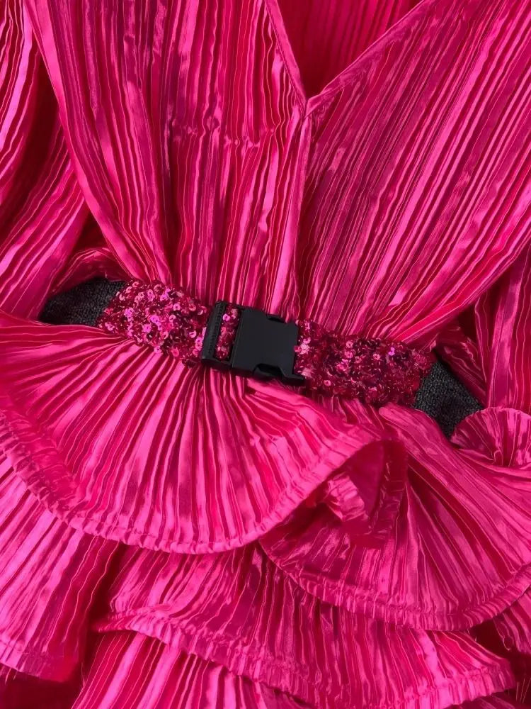 Sexy Club Luxury Sequined 2 Pieces Set Women V Neck Lantern Sleeve Belt Ruffles Shirt Top + Elastic Waist Bodycon Skirt Suit